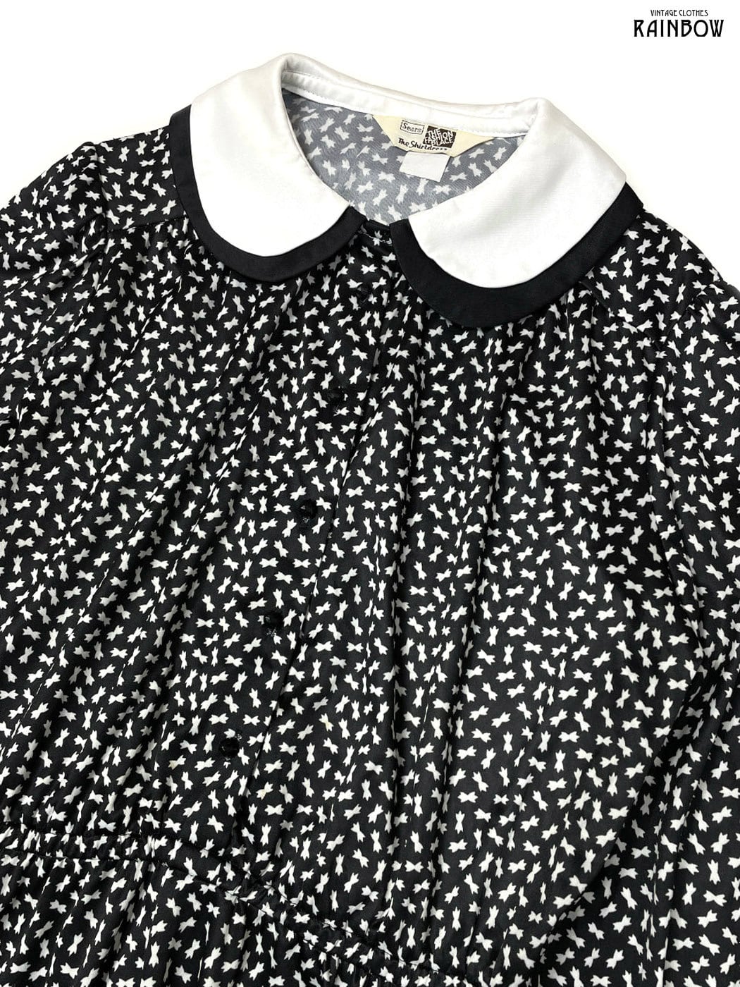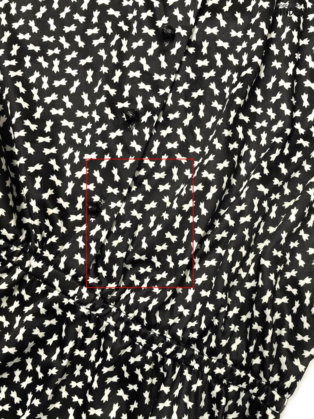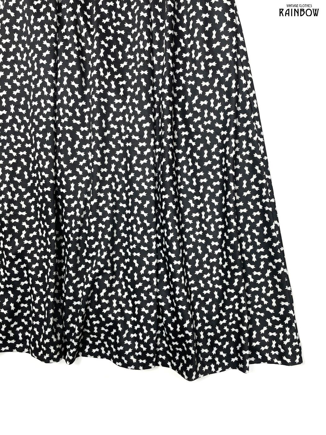 #ワンピース #ロングスリーブ #ロング丈 #フレア #ゴムウエスト #ウエスト切り替え #黒 #白 #総柄 #襟付き #クラシック #ヴィンテージ #長袖総柄ワンピース