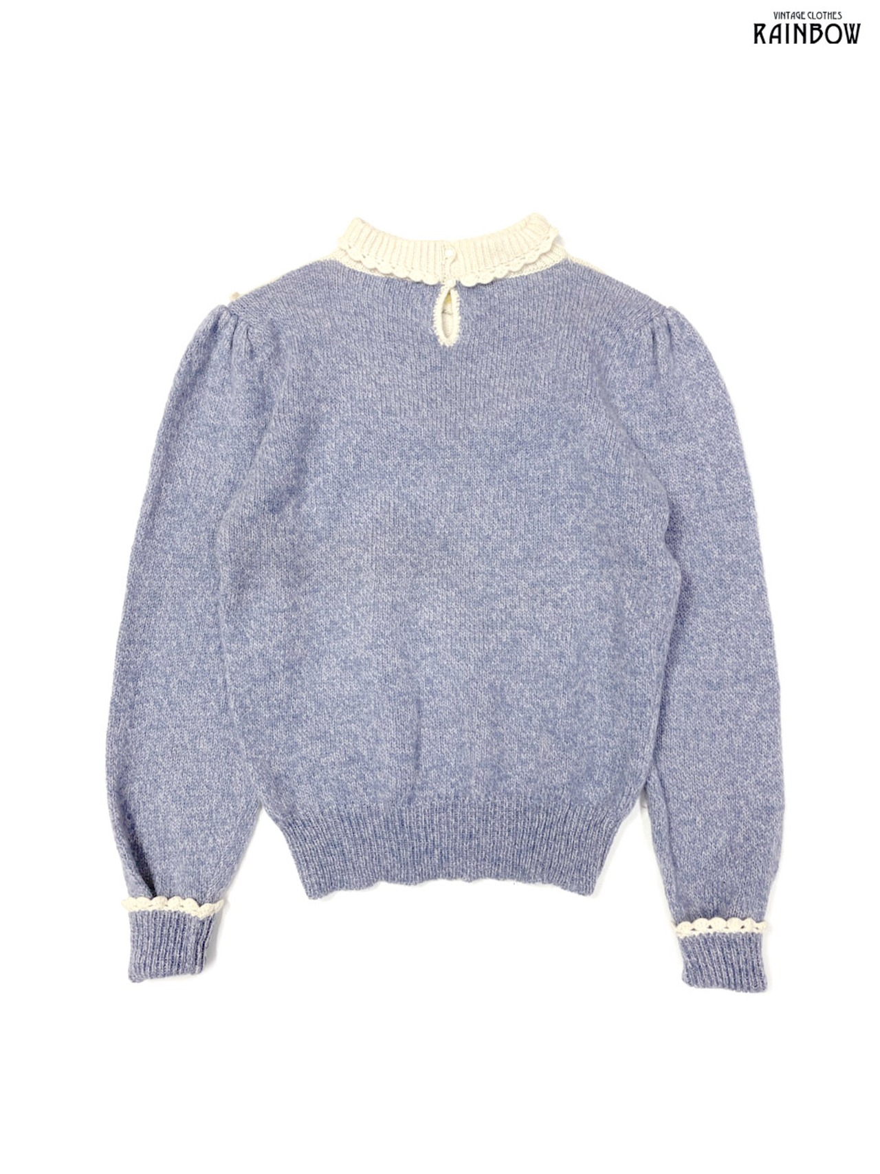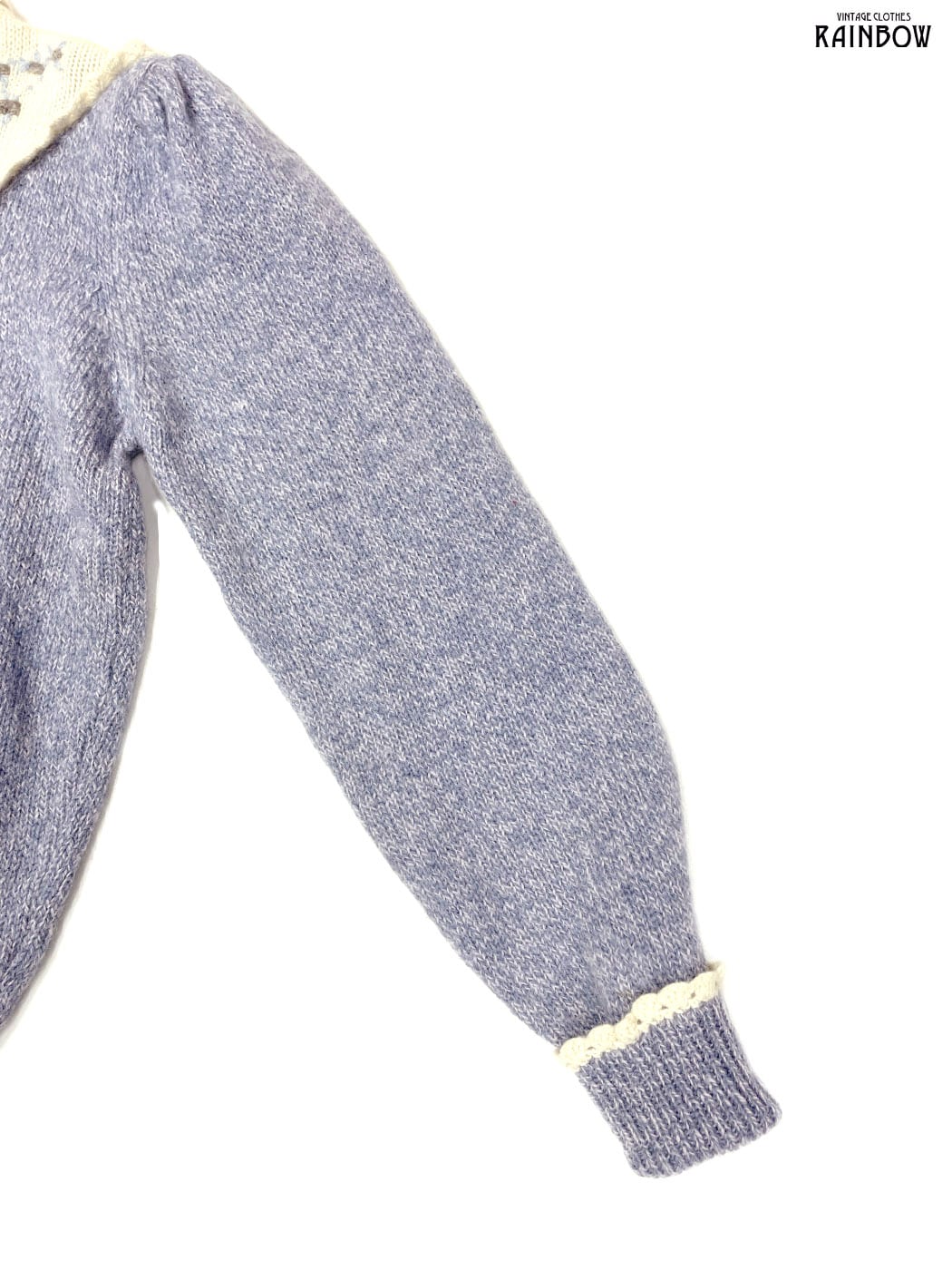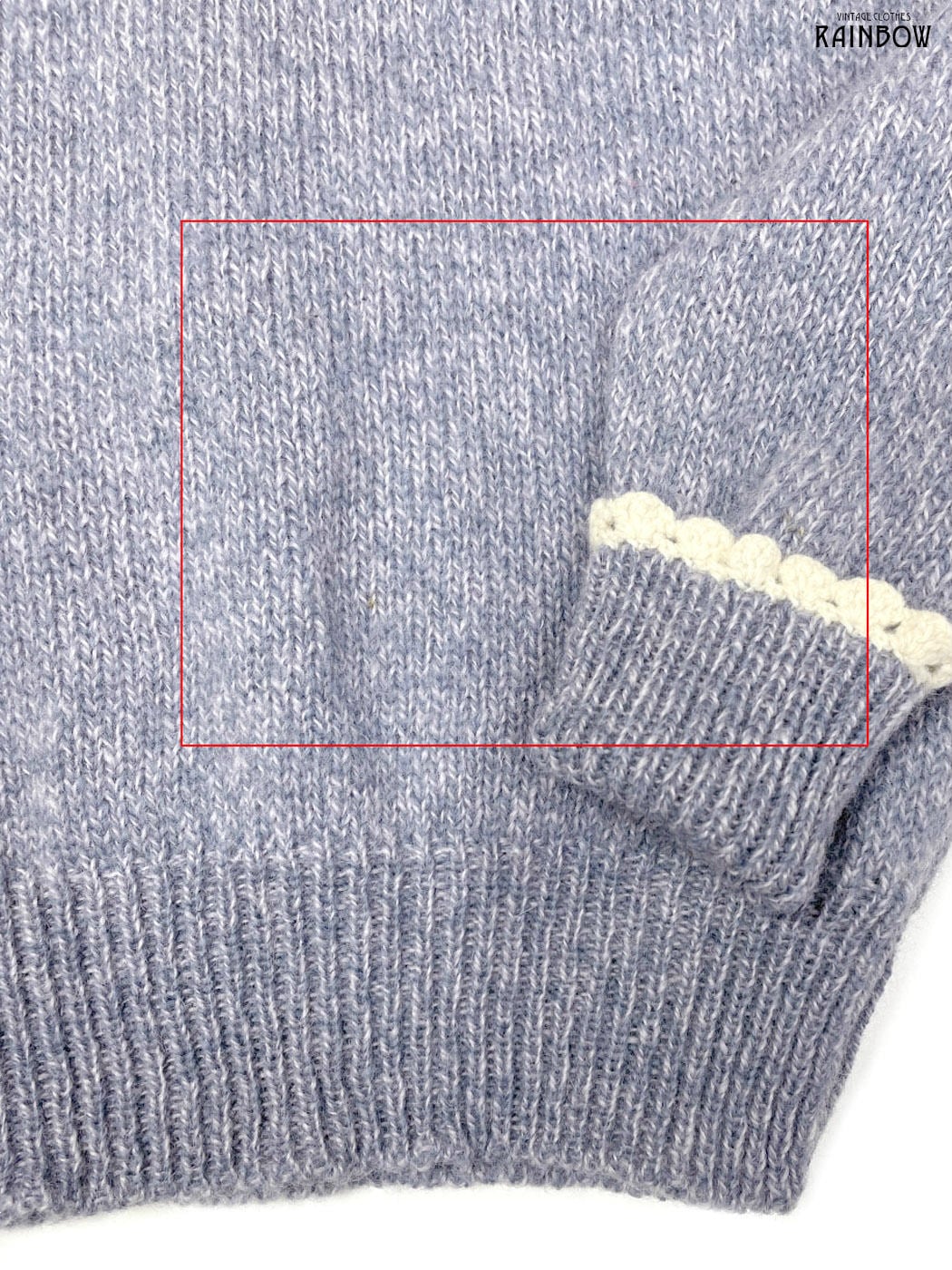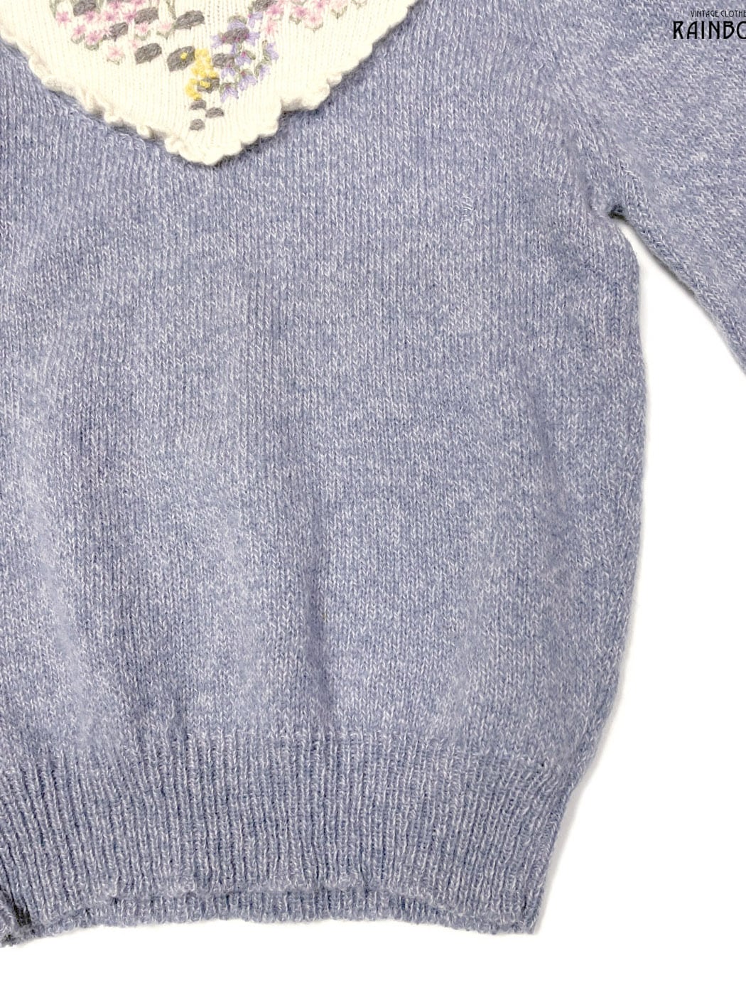 #ニット #セーター #ロングスリーブ #ベージュ #水色 #花柄 #フリル #刺繍 #ハイネック #ガーリー #ヴィンテージ #ウール #刺繍ニット