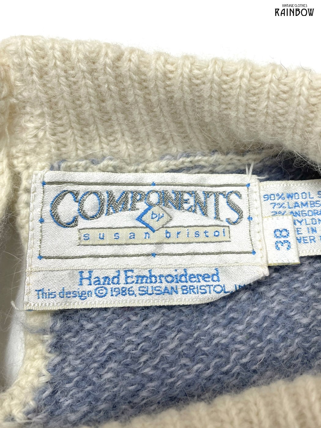 古着 COMPONENTS フリル 花柄 刺繍 ハイネック ウール 長袖 ニット セーター 水色 ベージュ (ttu2601191)