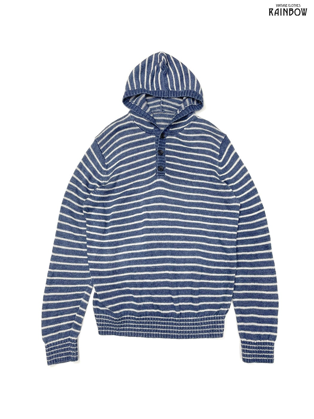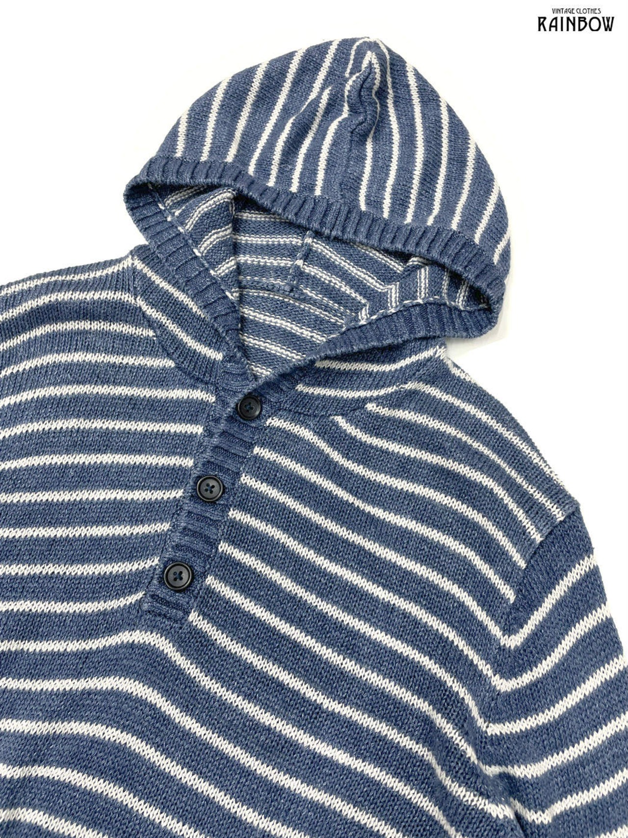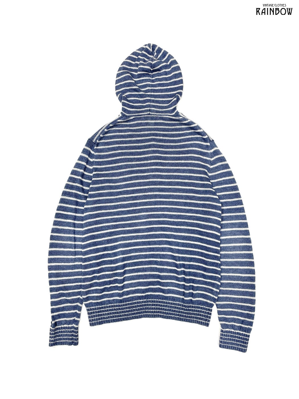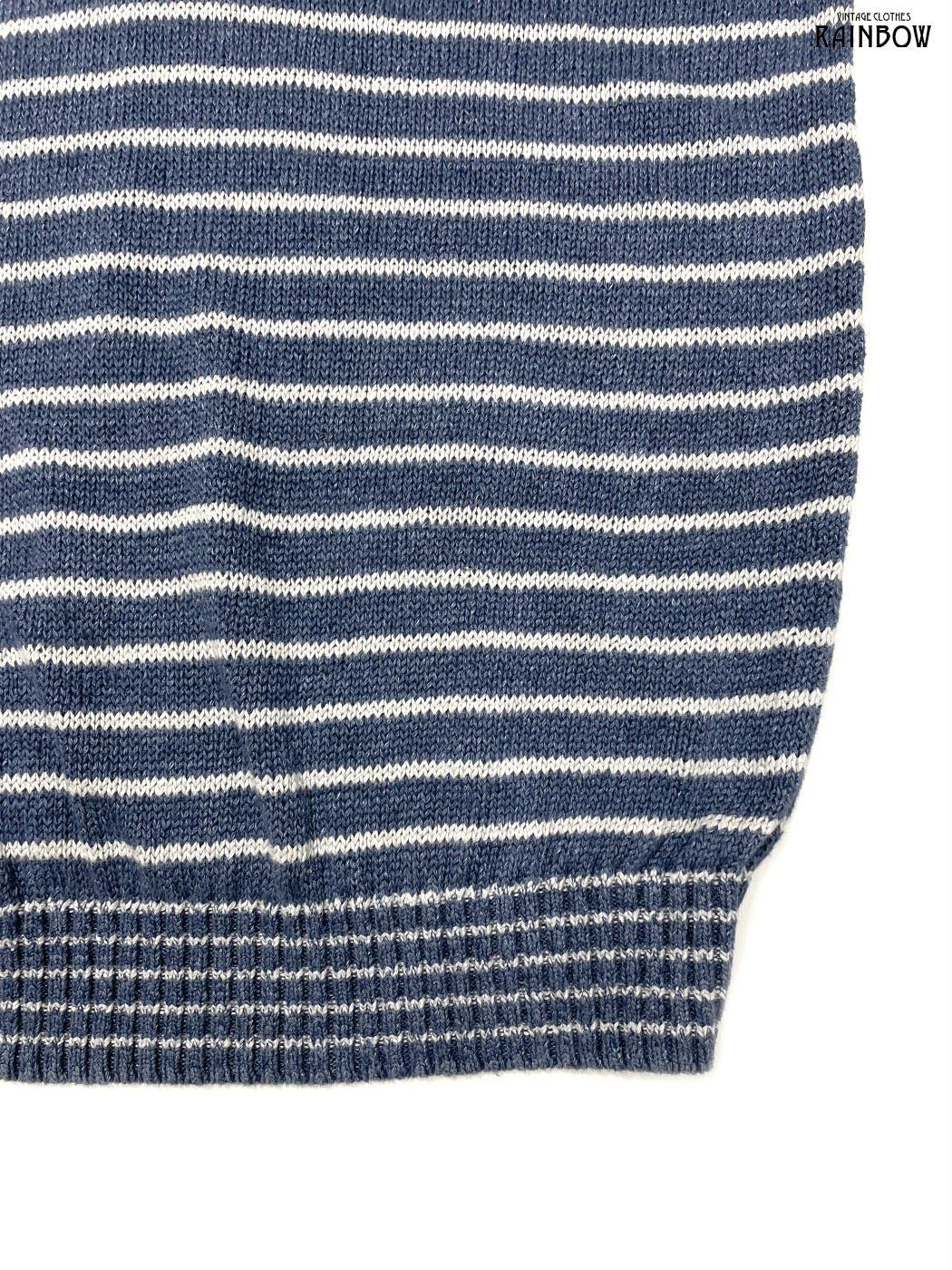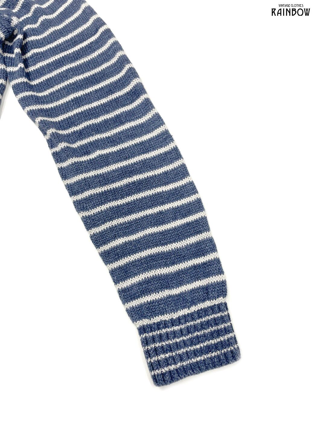 #ニット #セーター #ロングスリーブ #白 #青 #ボーダー柄 #フード付 #ヴィンテージ #ニット地 #柄セーター