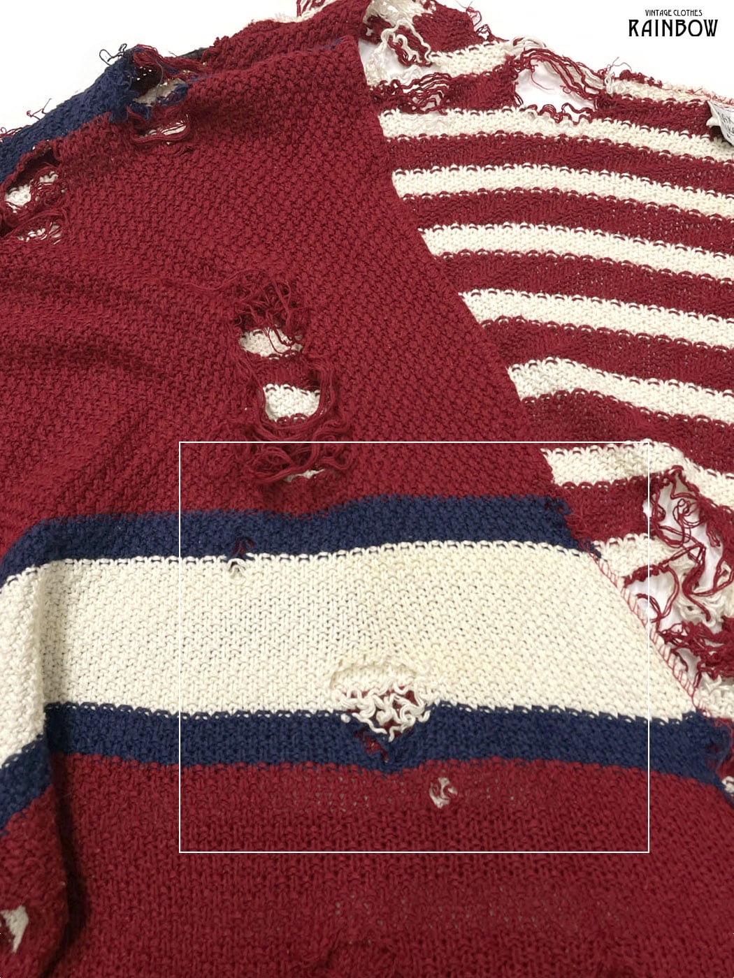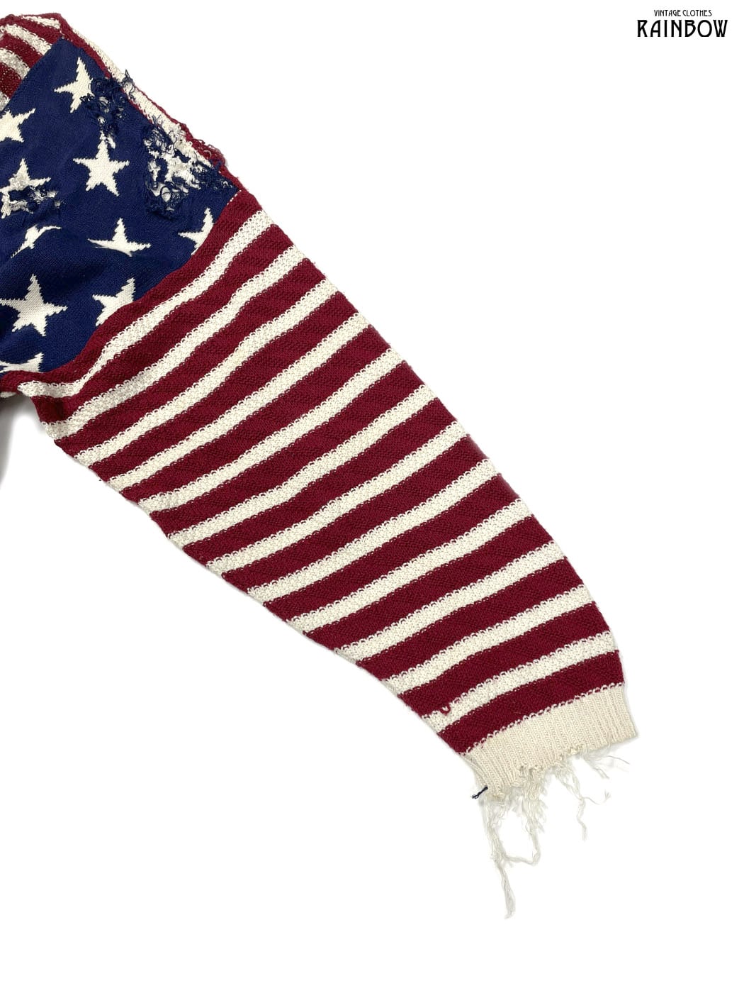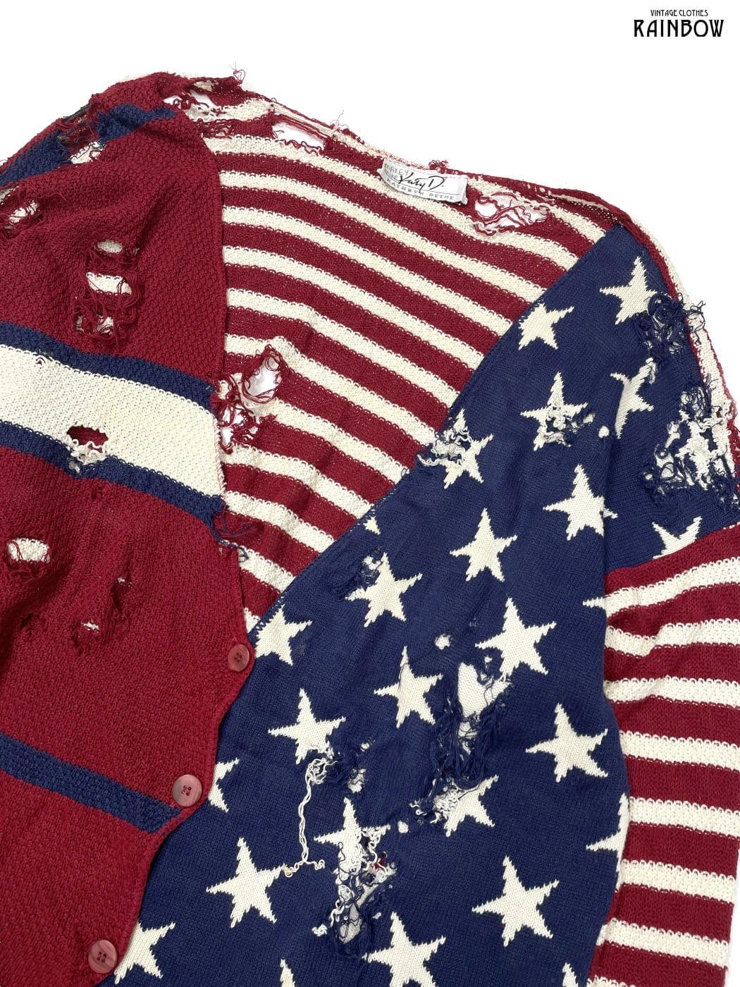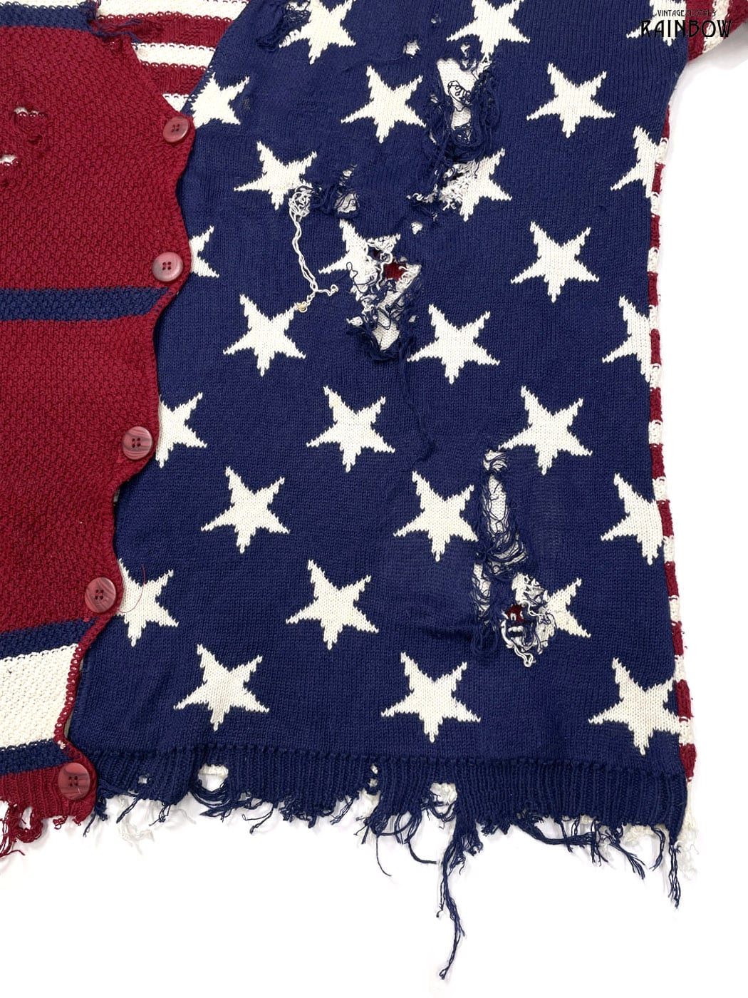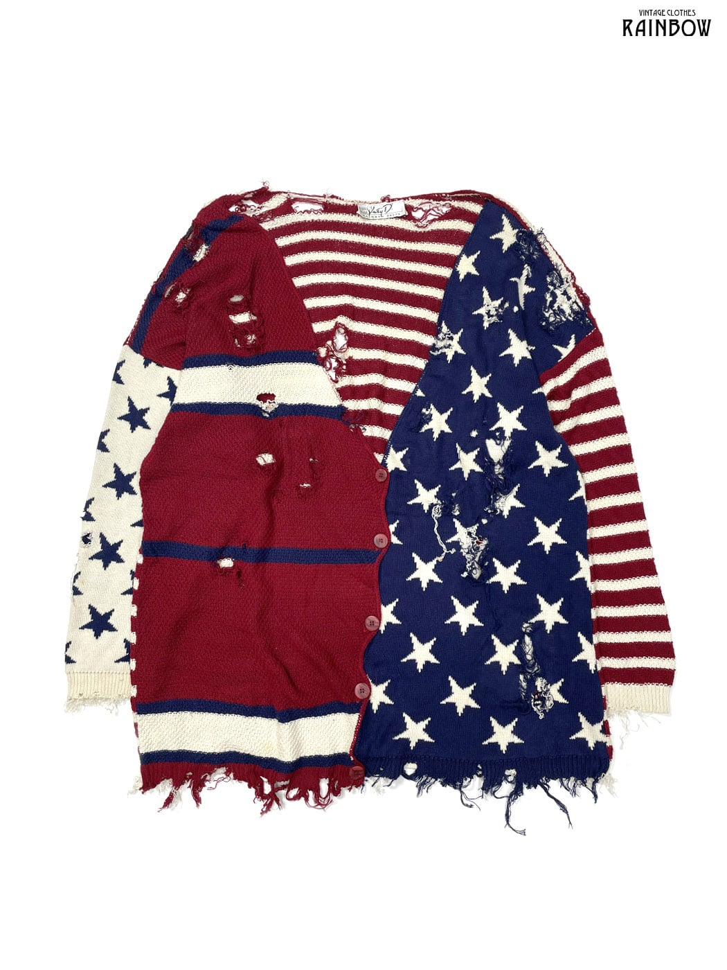 #ニット #ニットアウター #ロングスリーブ #赤 #紺 #総柄 #国旗 #アメリカ #ダメージ #ビッグシルエット #オーバーサイズ #前開き #ヴィンテージ #ニット地 #ニットアウター