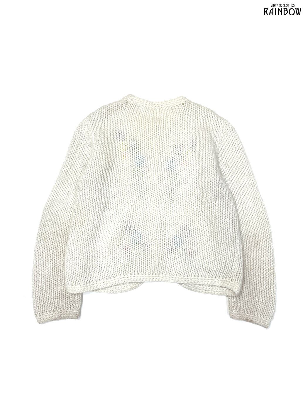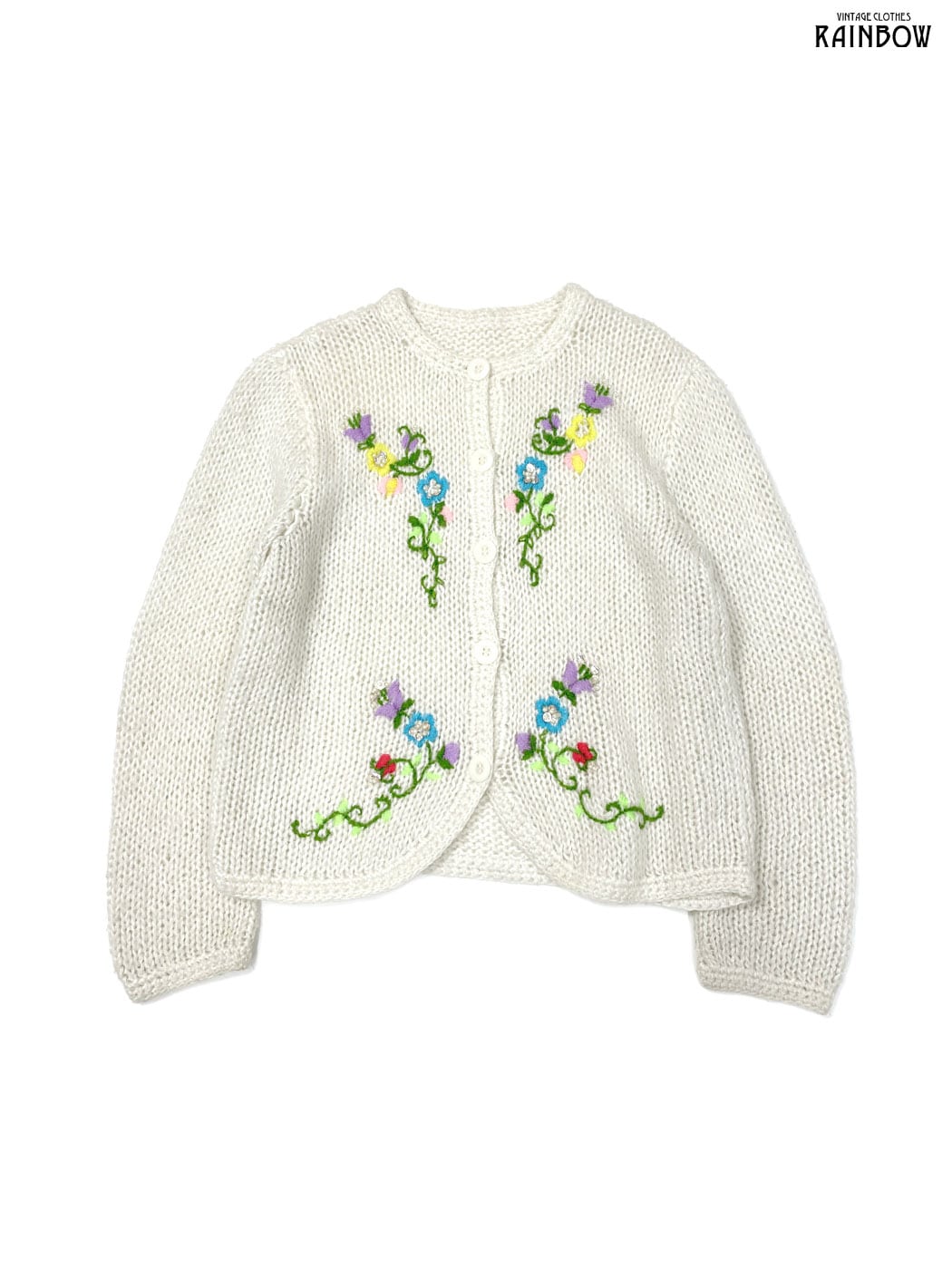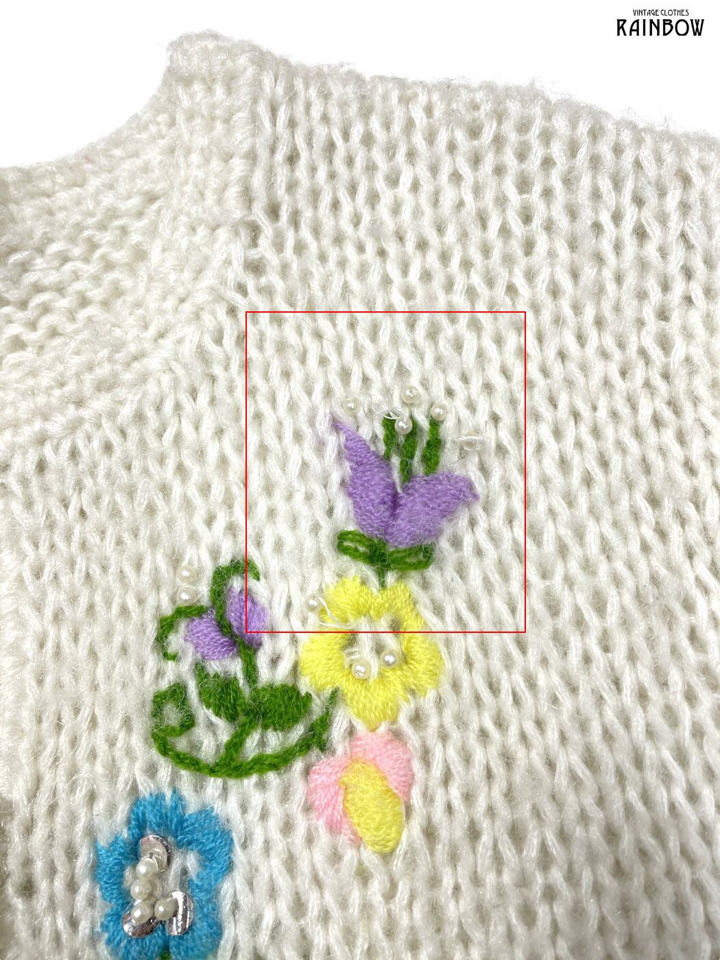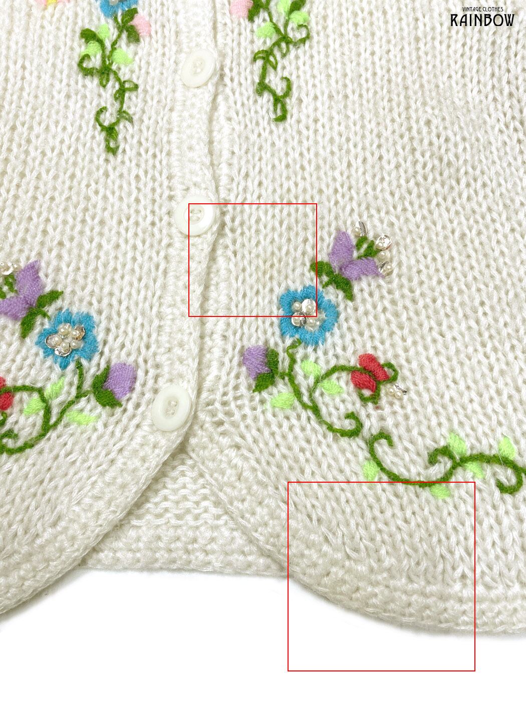 #ニット #カーディガン #ロングスリーブ #白 #花柄 #パール #スパンコール #刺繍 #ビジュー #前開き #ガーリー #ニット地 #柄カーディガン