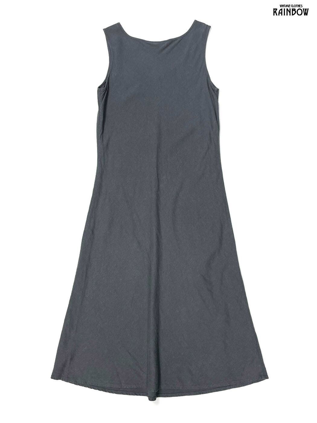 #ワンピース #ノースリーブ #ロング丈 #グレー #無地 #シンプル #リネン #リネンワンピース