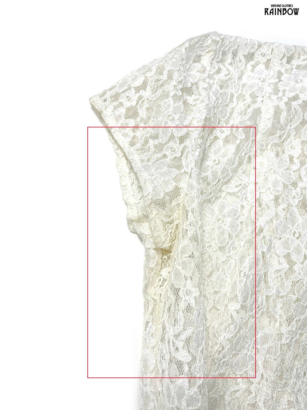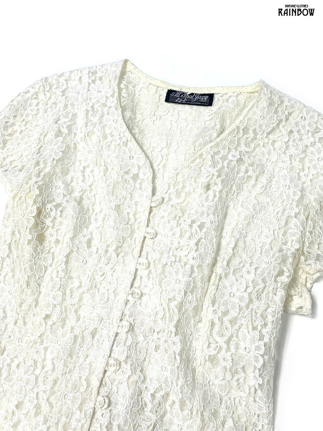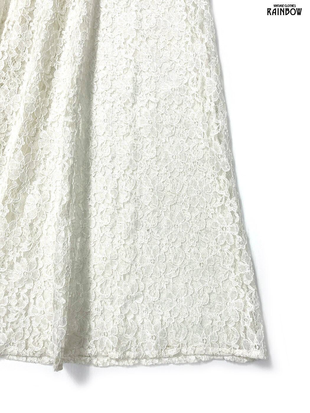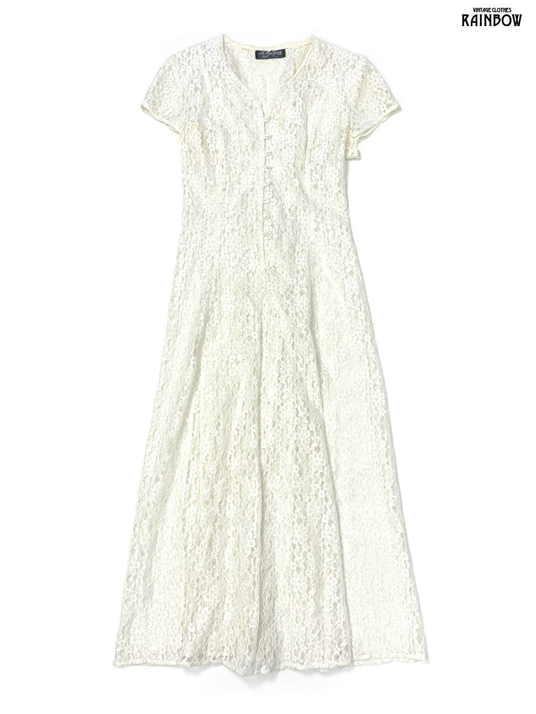 #ワンピース #ハーフスリーブ #ロング丈 #白 #生成り #無地 #リボン #ヴィンテージ #総レース #総レースワンピース
