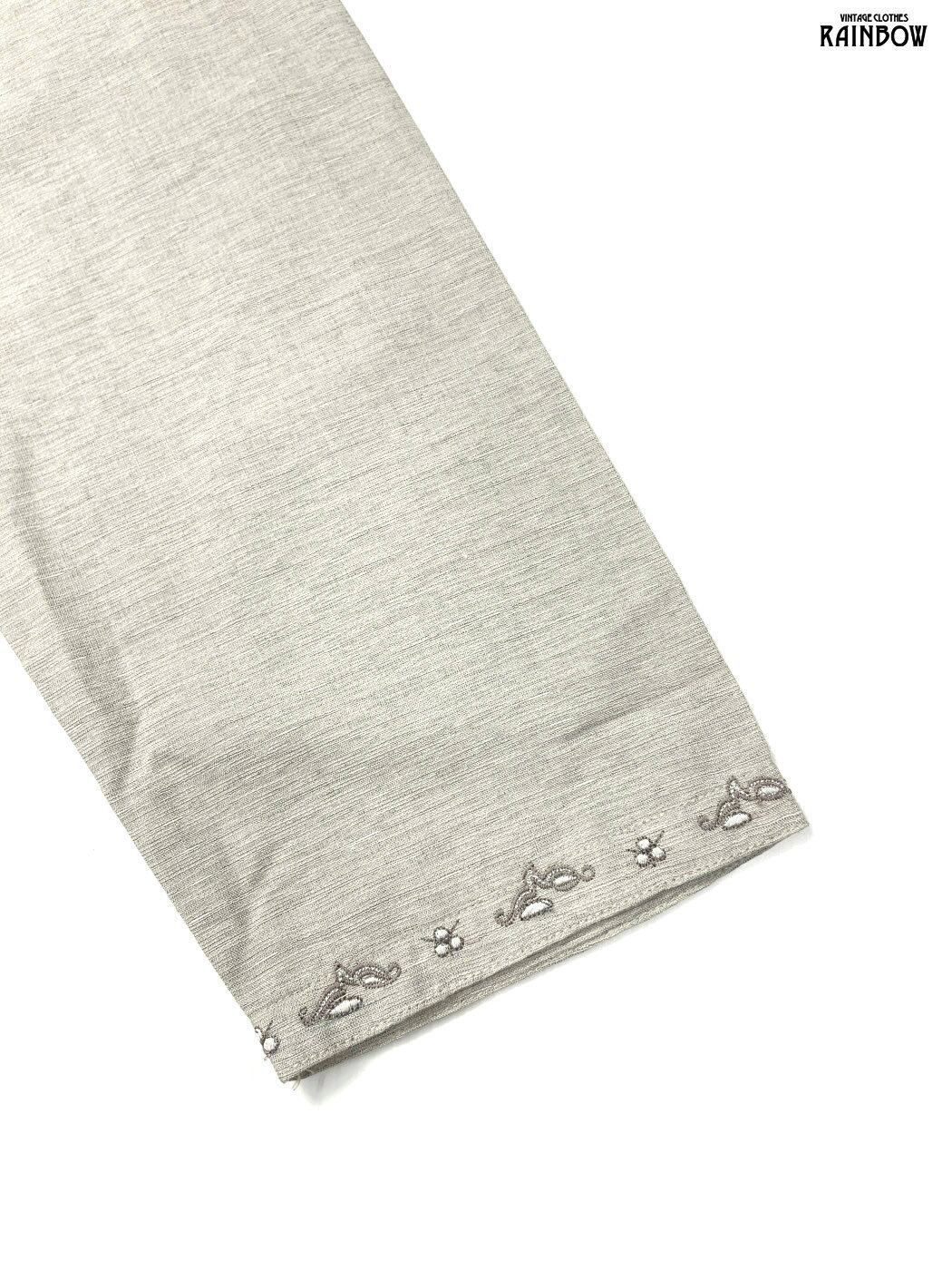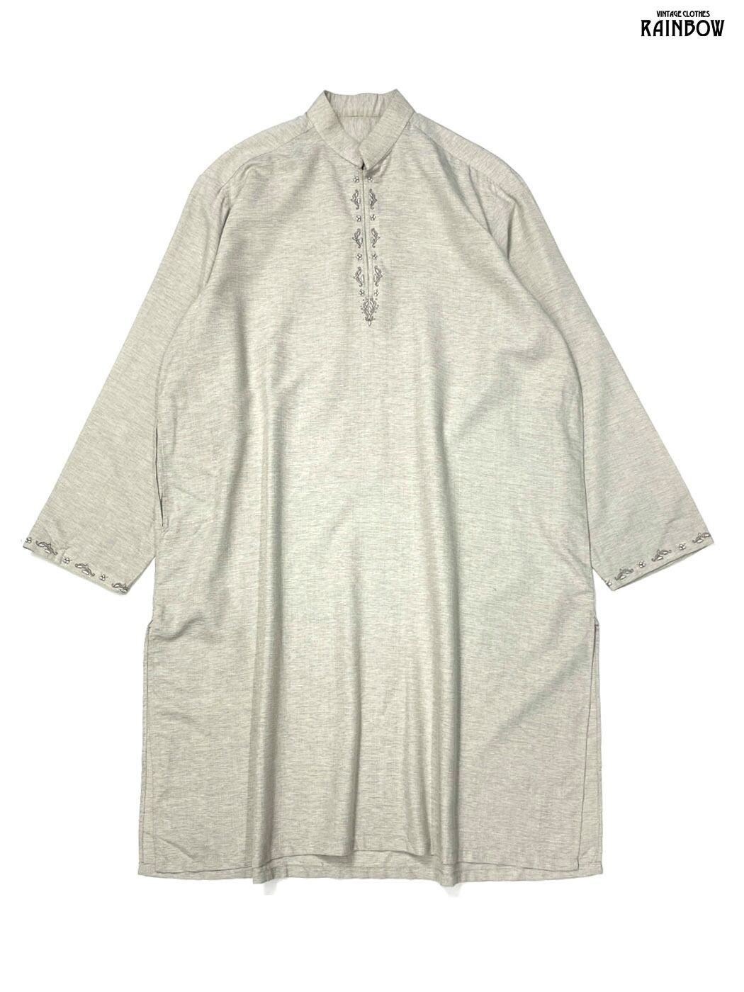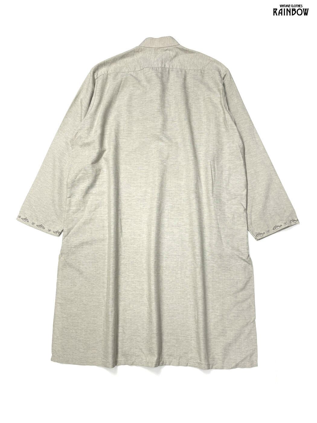 古着 刺繍 スリット 無地 コットン ロング丈 長袖 ワンピース ベージュ (otu2601120)