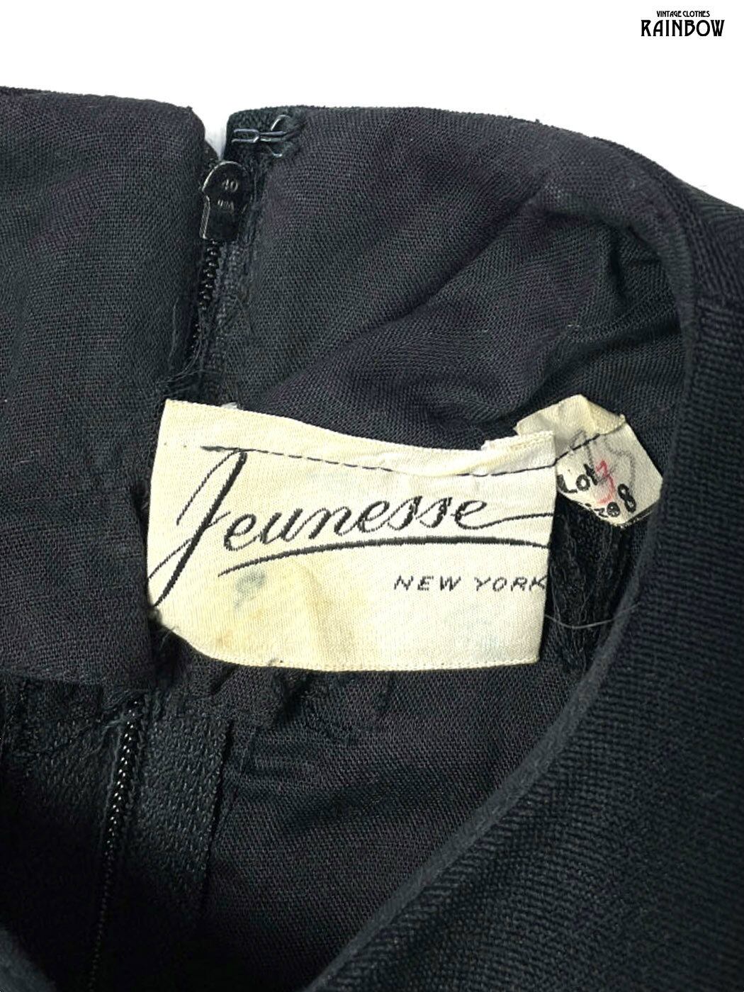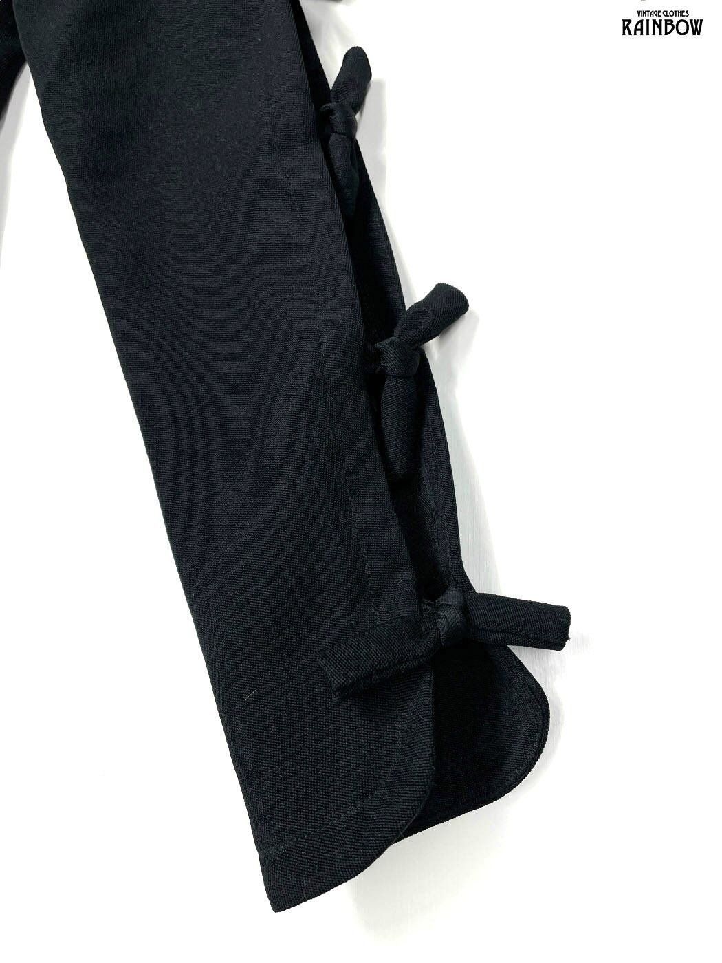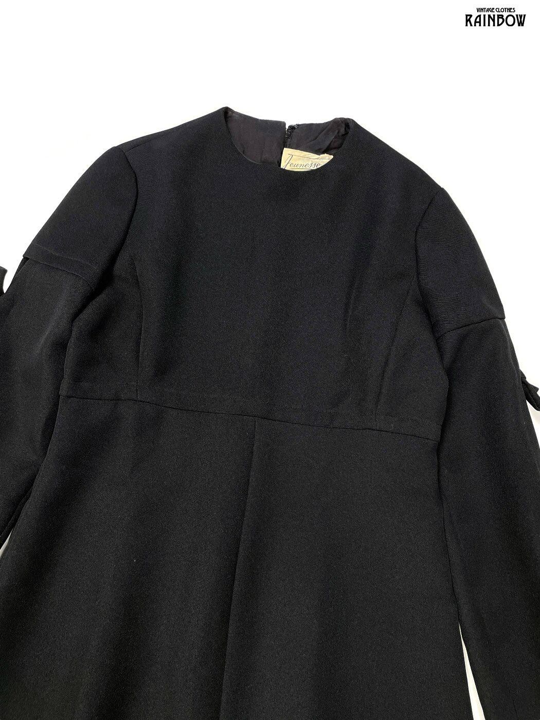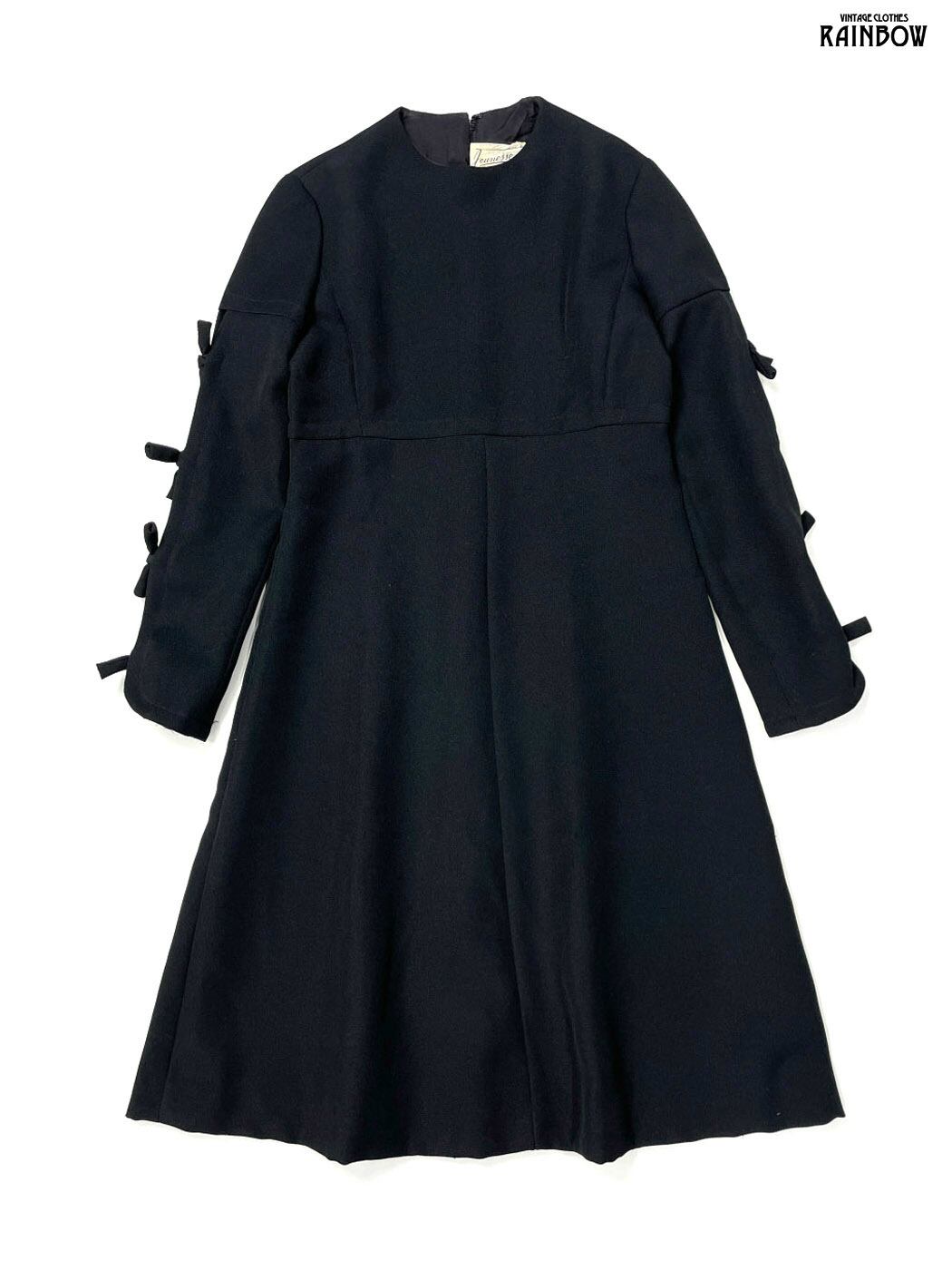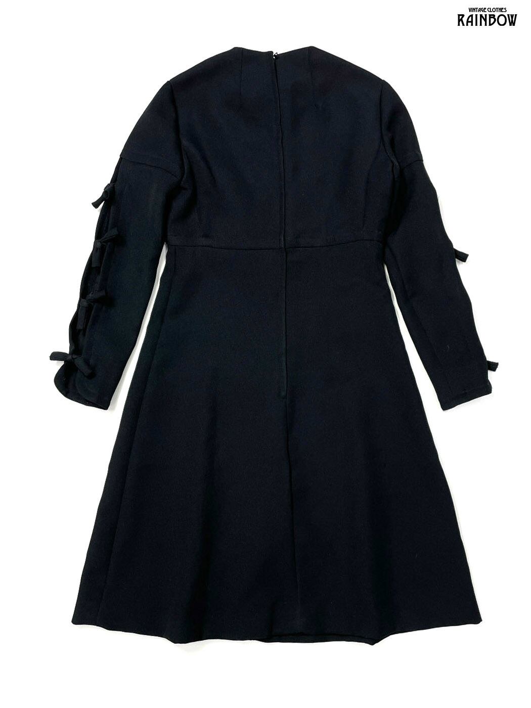 古着 リボン 無地 膝丈 長袖 ワンピース 黒 (otu2601121)