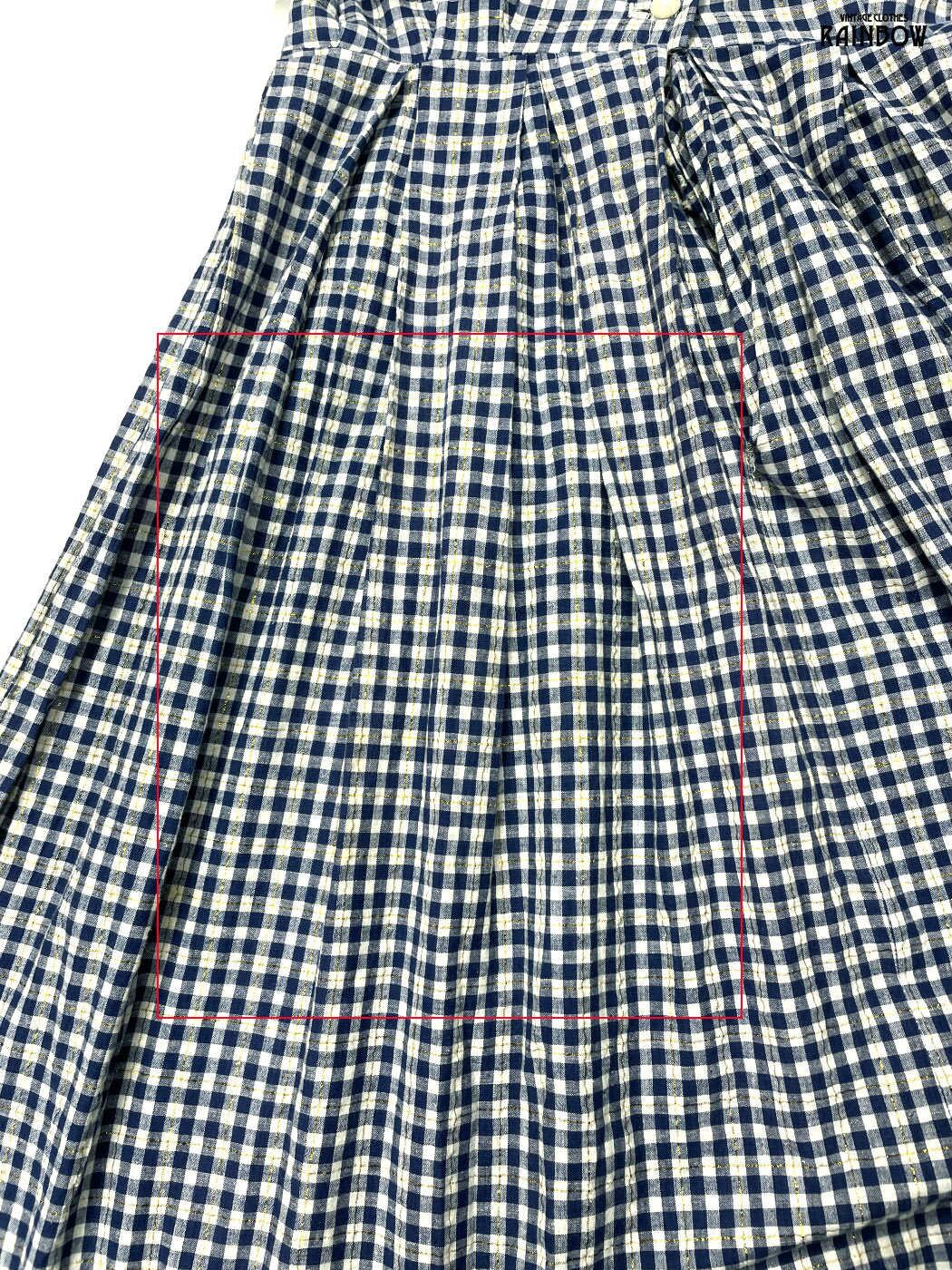 #ワンピース #ロングスリーブ #ロング丈 #ウエスト切り替え #青 #紺 #チェック柄 #コットン #長袖チェック柄ワンピース