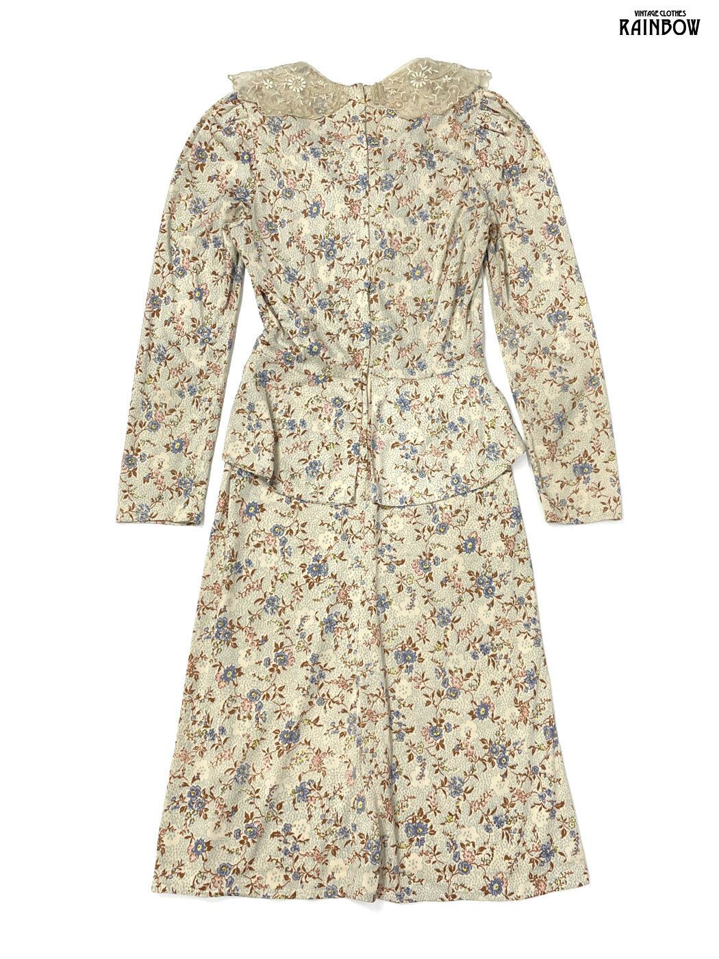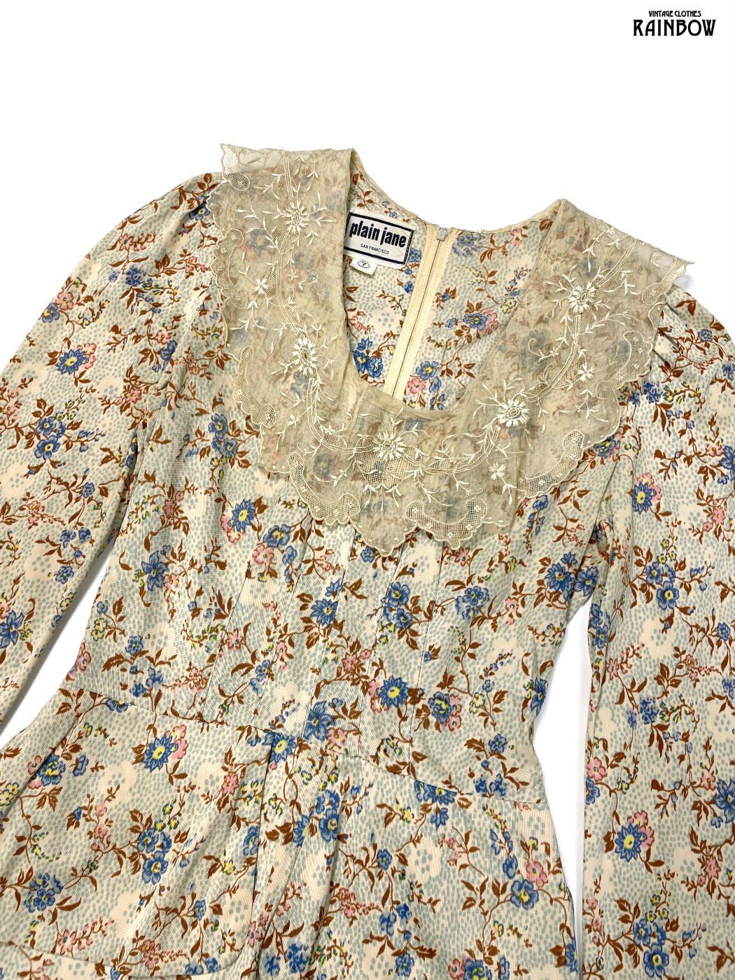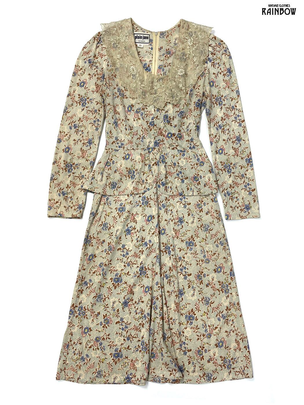 古着 Plain Jane レース 花柄 ロング丈 長袖 ワンピース ベージュ (otu2601122)
