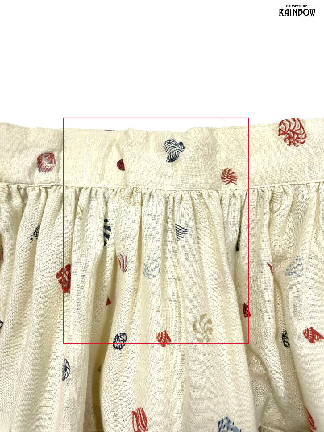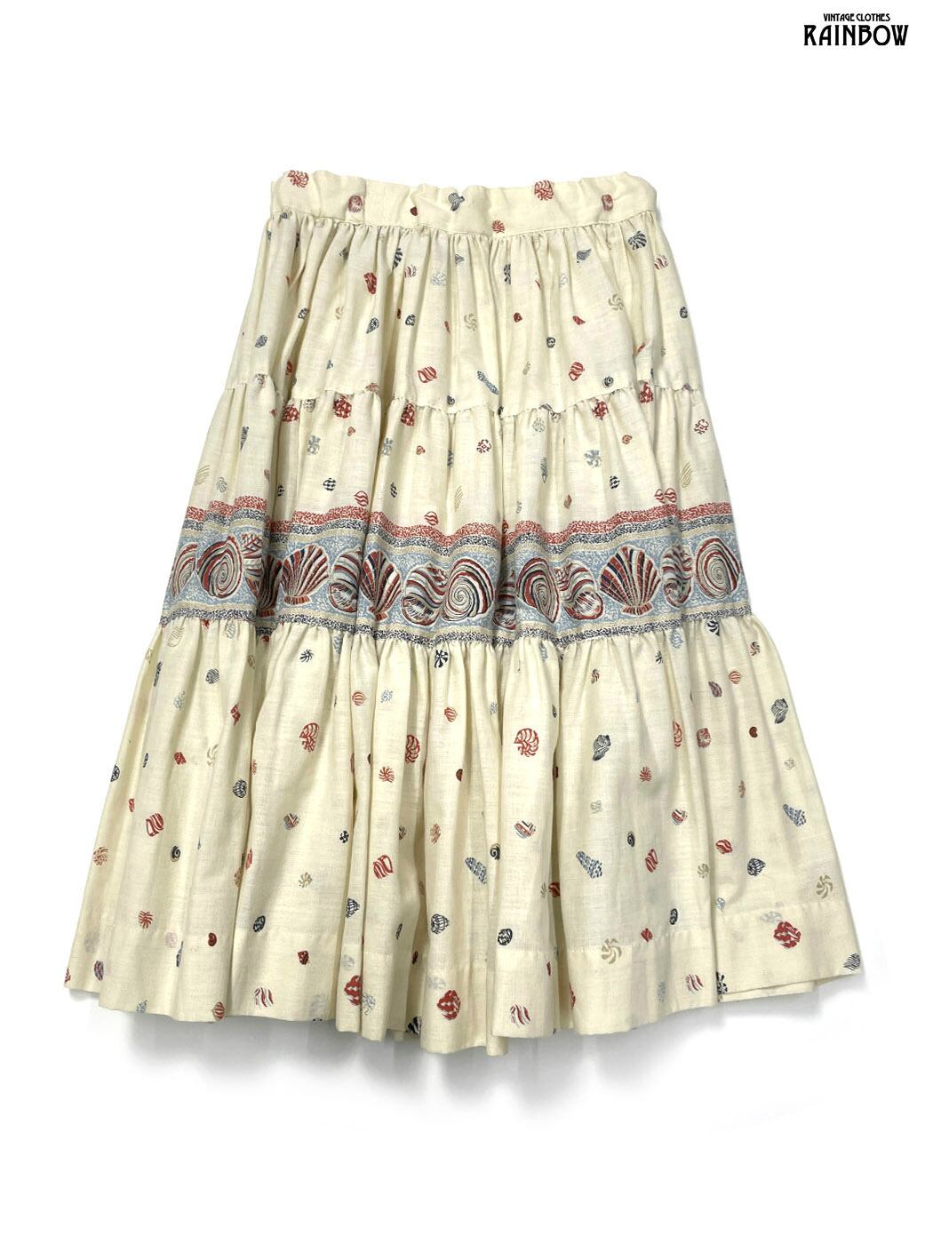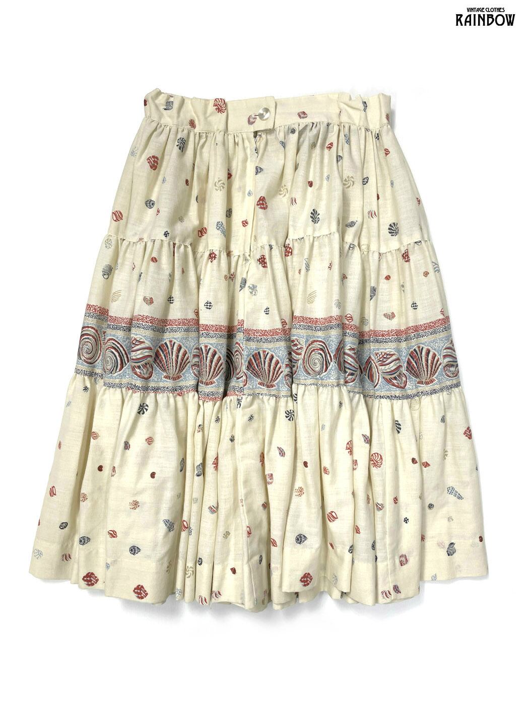 古着 ROCK MOUNT ロックマウント 貝殻 TALONジップ 総柄 コットン 膝丈 サーキュラー ティアード スカート ベージュ (btu2601098)