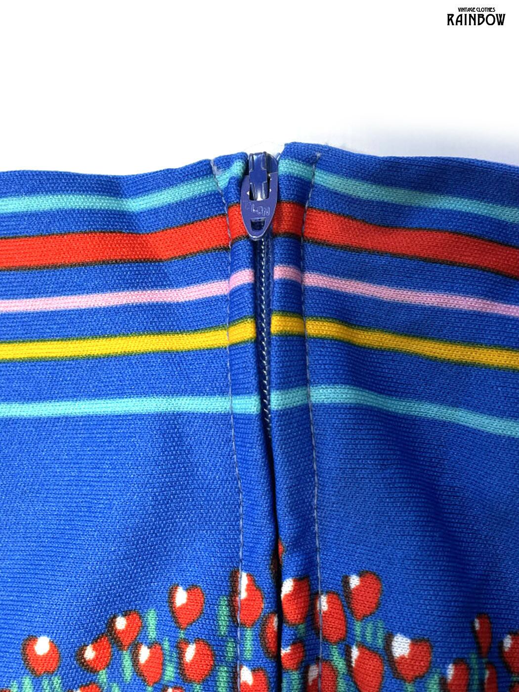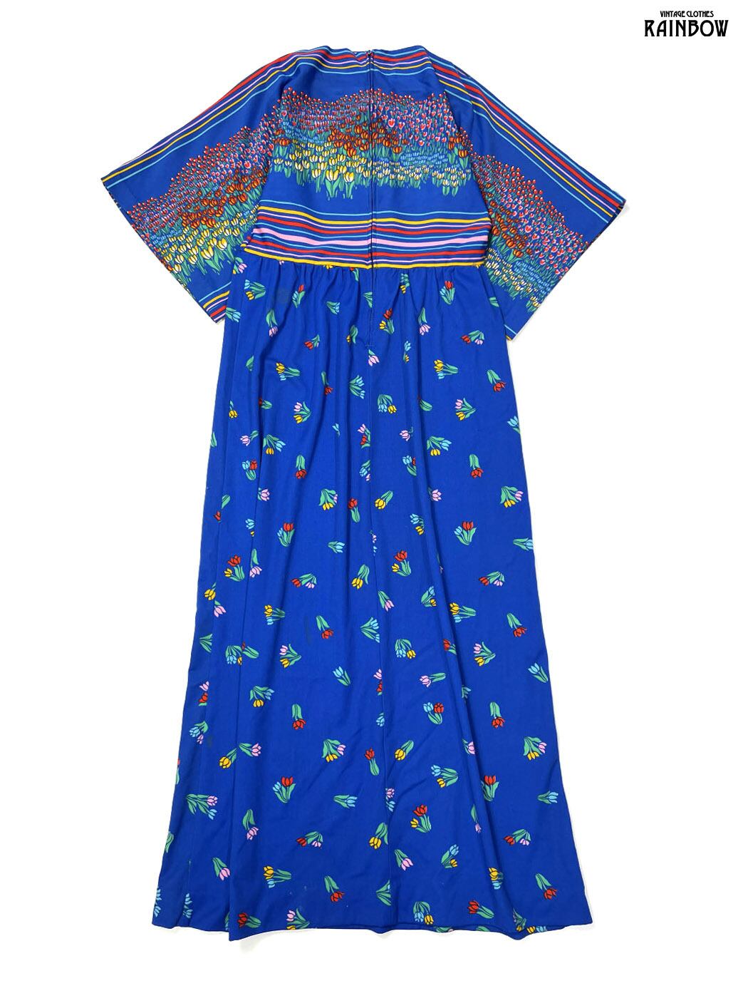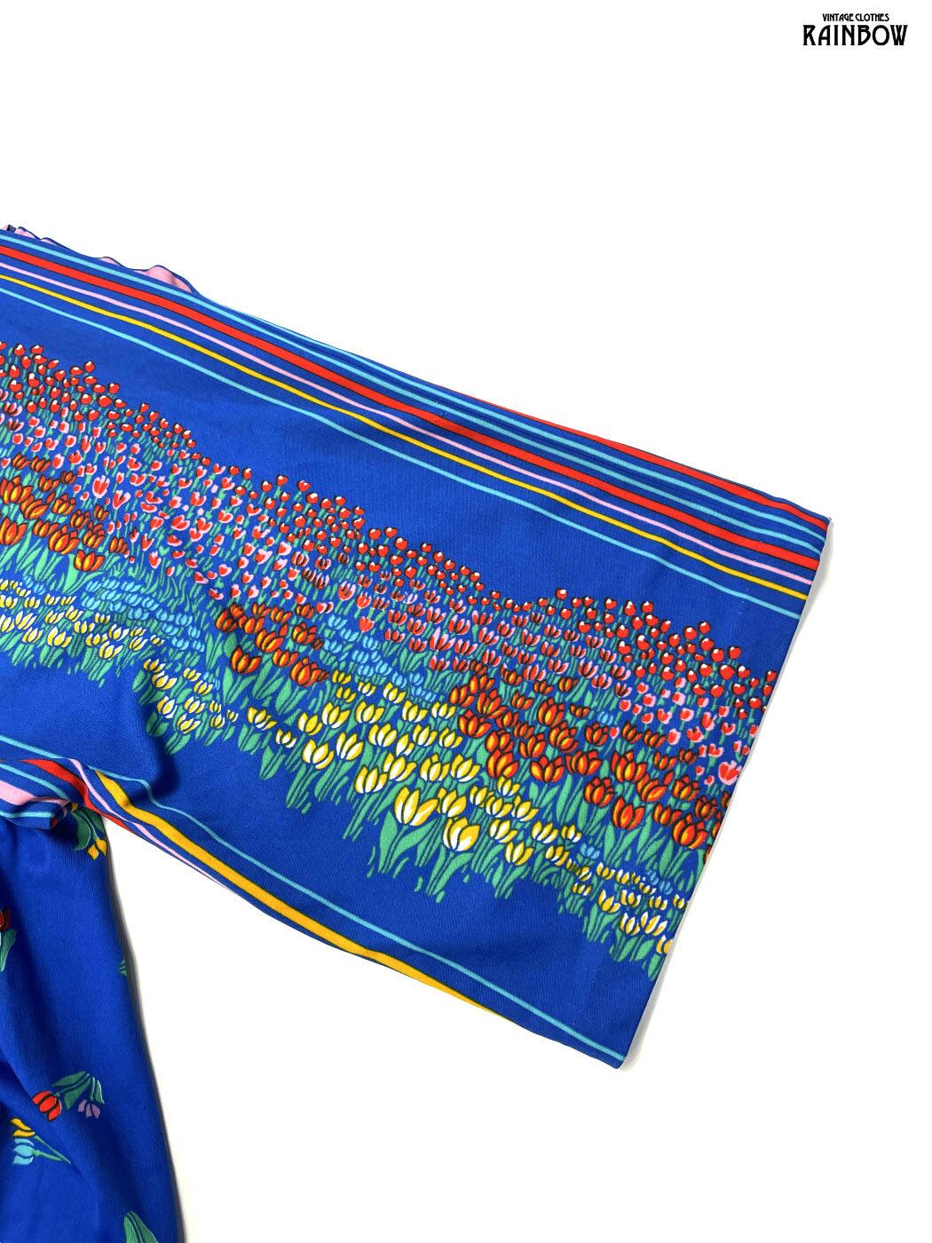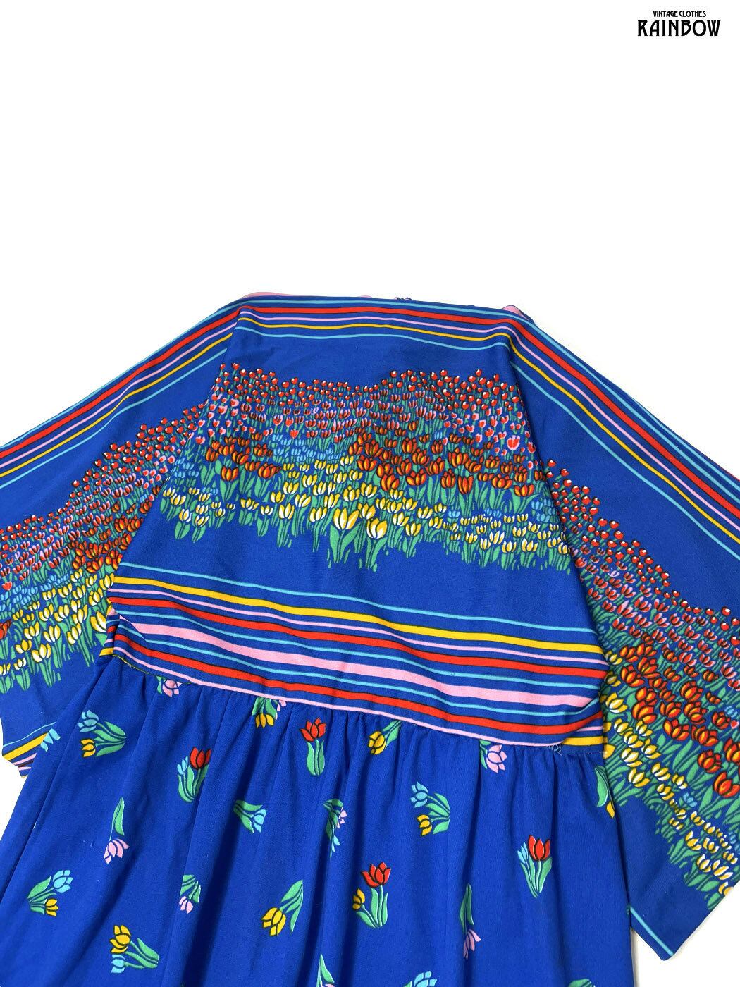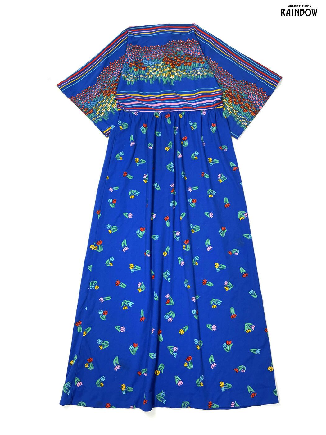 古着 TALONジップ チューリップ 花柄 ロング丈 長袖 ワンピース 青 (otu2601127)