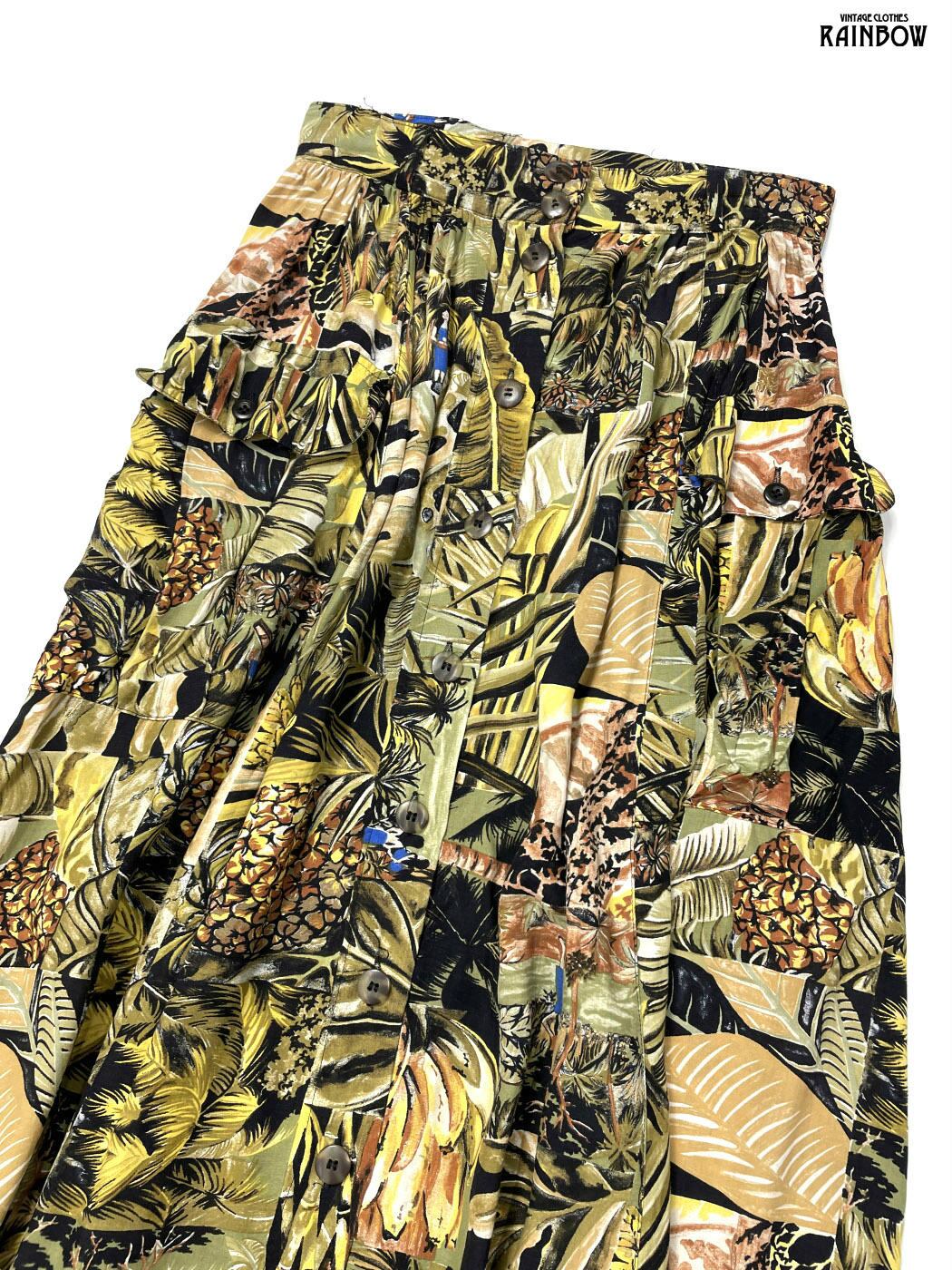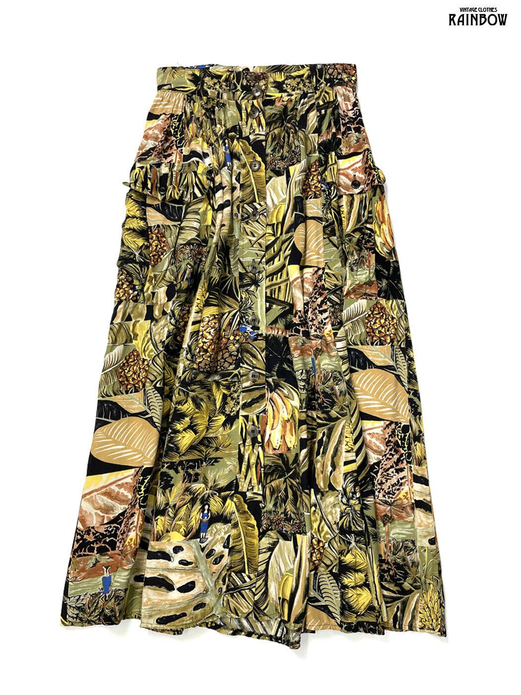 古着 総柄 ボタニカル柄 ロング丈 スカート 緑 (btu2601099)