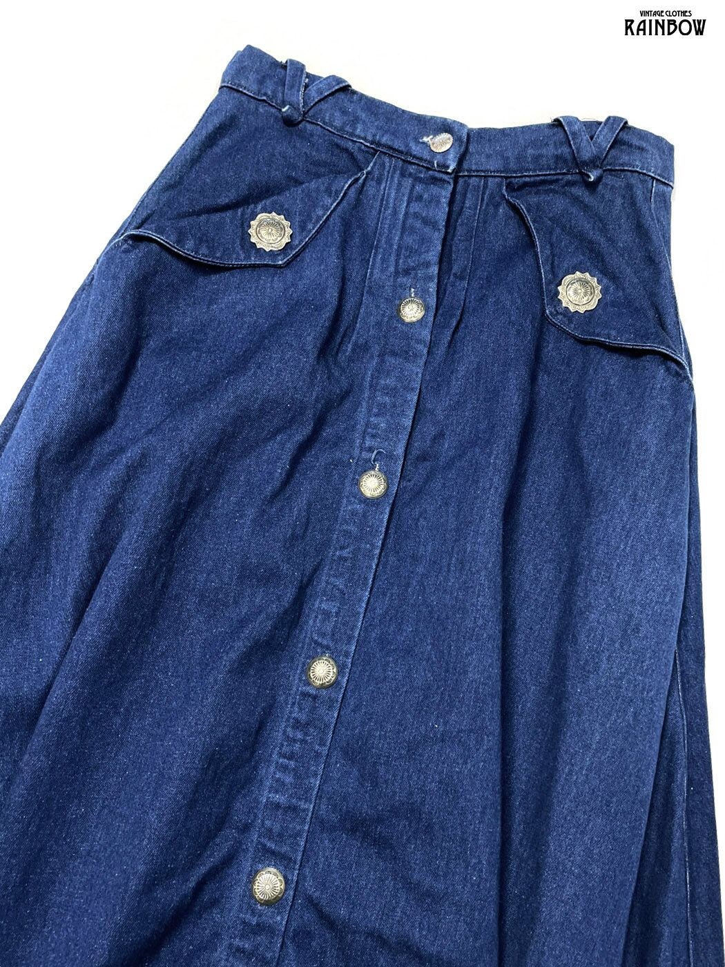 古着 LONGHORN ロングホーン アメリカ製 前開き 無地 デニム ロング丈 スカート 紺 (btu2601102)