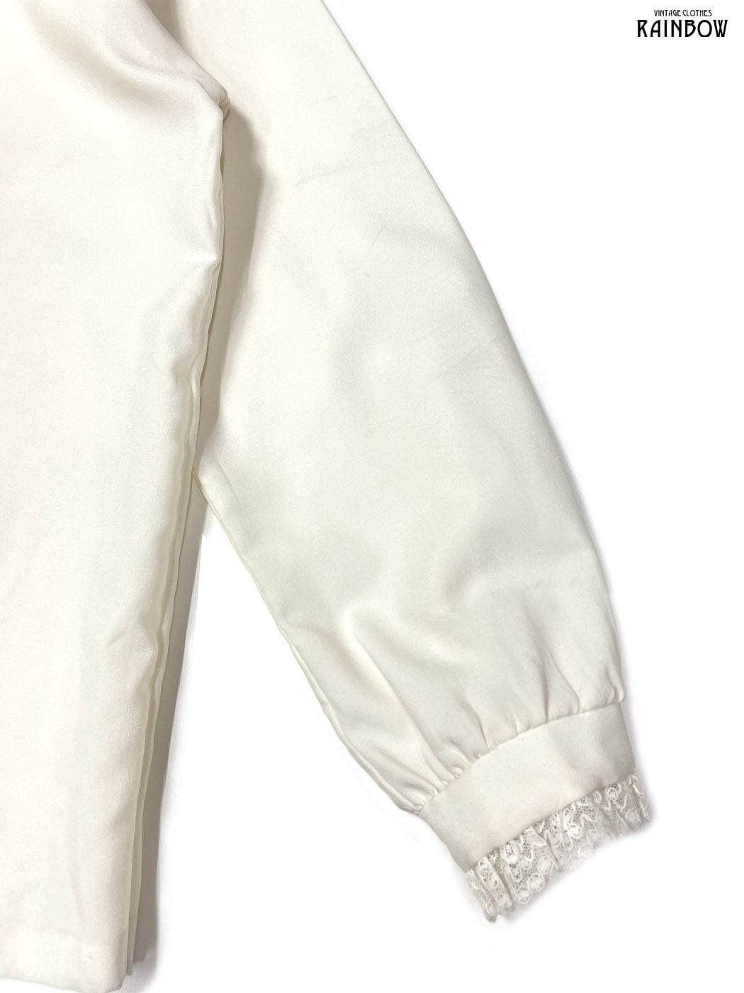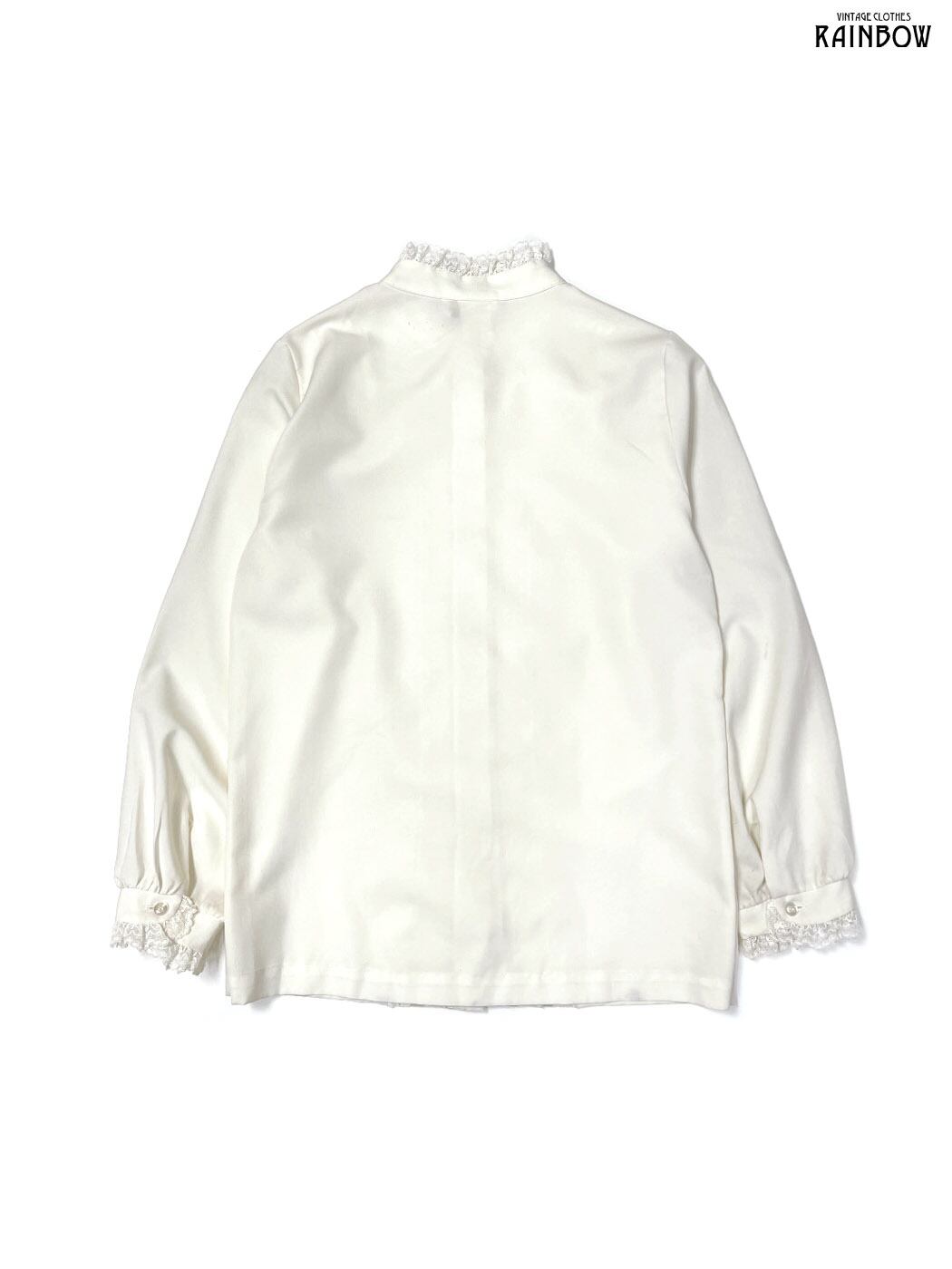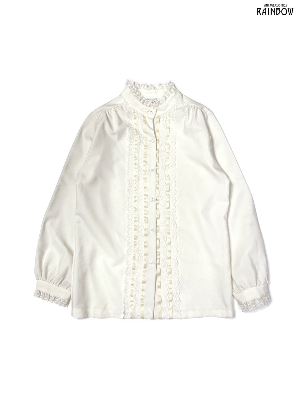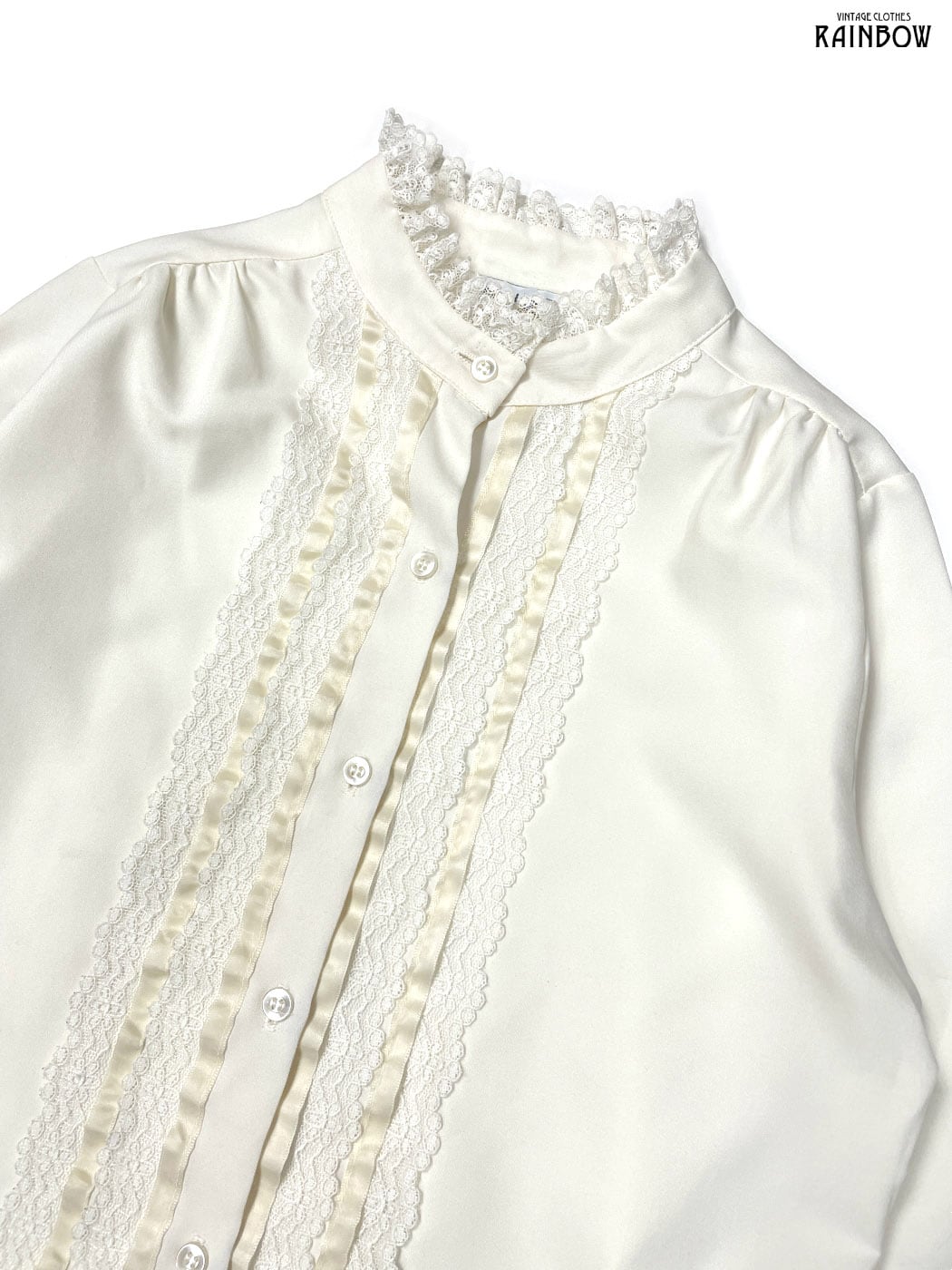 #ブラウス #bブラウス #ロングスリーブ #白 #生成り #無地 #フリル #レース #ハイネック #ガーリー #ヴィンテージ #レースシャツ