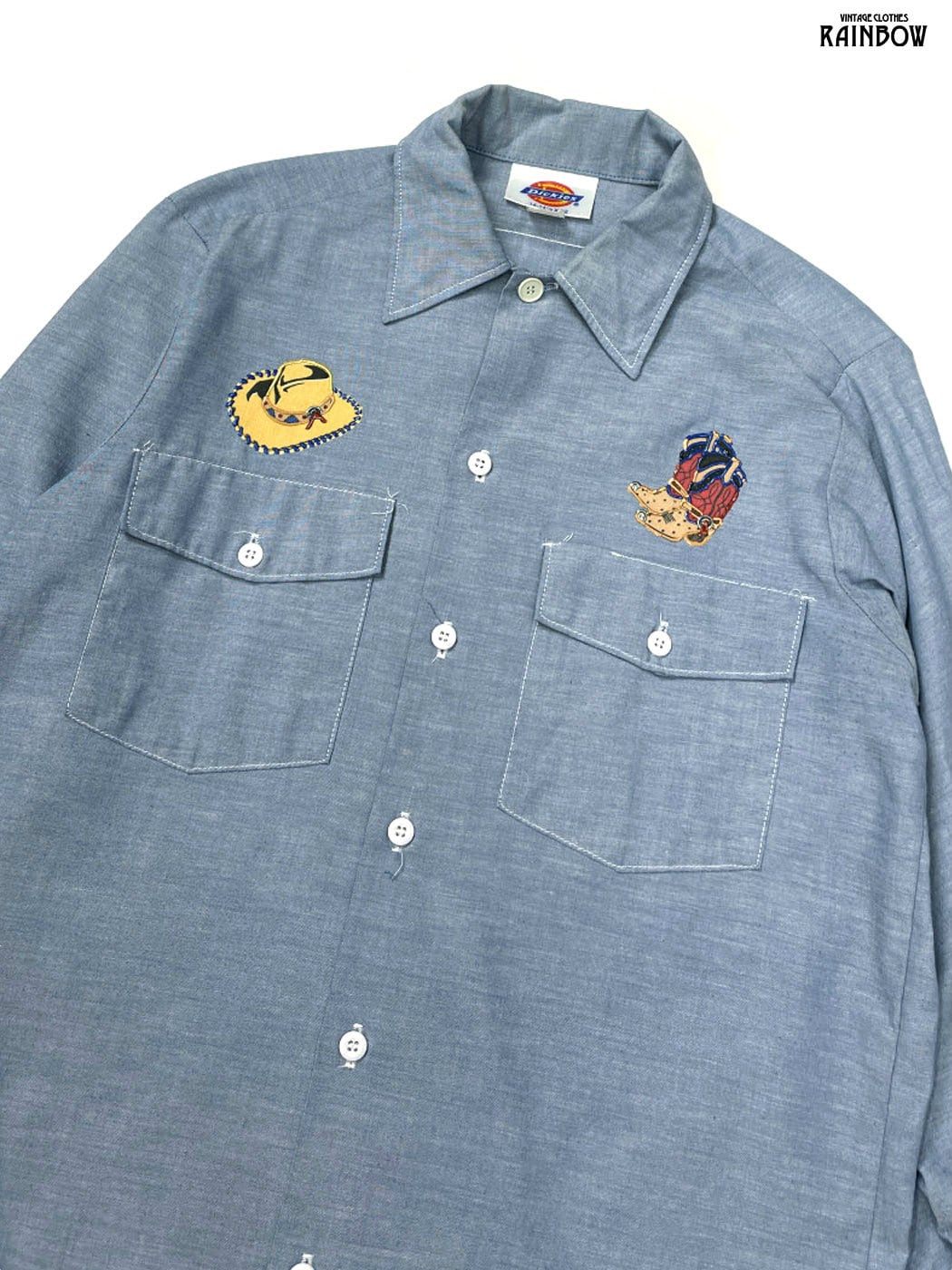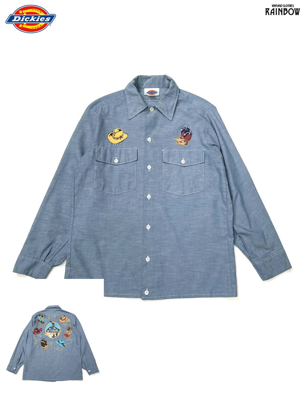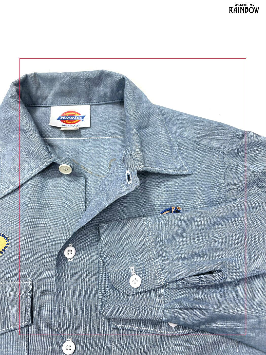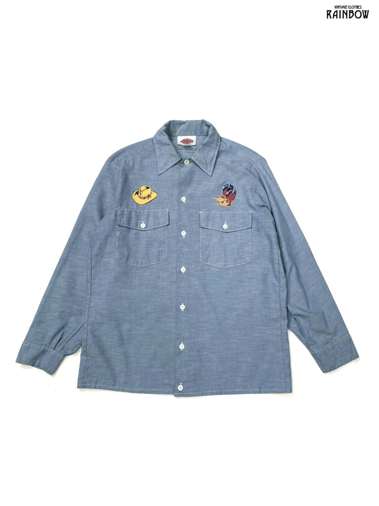 古着 Dickies ディッキーズ カウボーイ アップリケ アメリカ製 総柄 プリント コットン 長袖 シャツ 青 (ttu2601205)