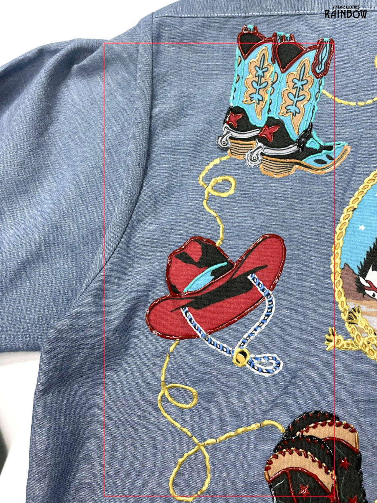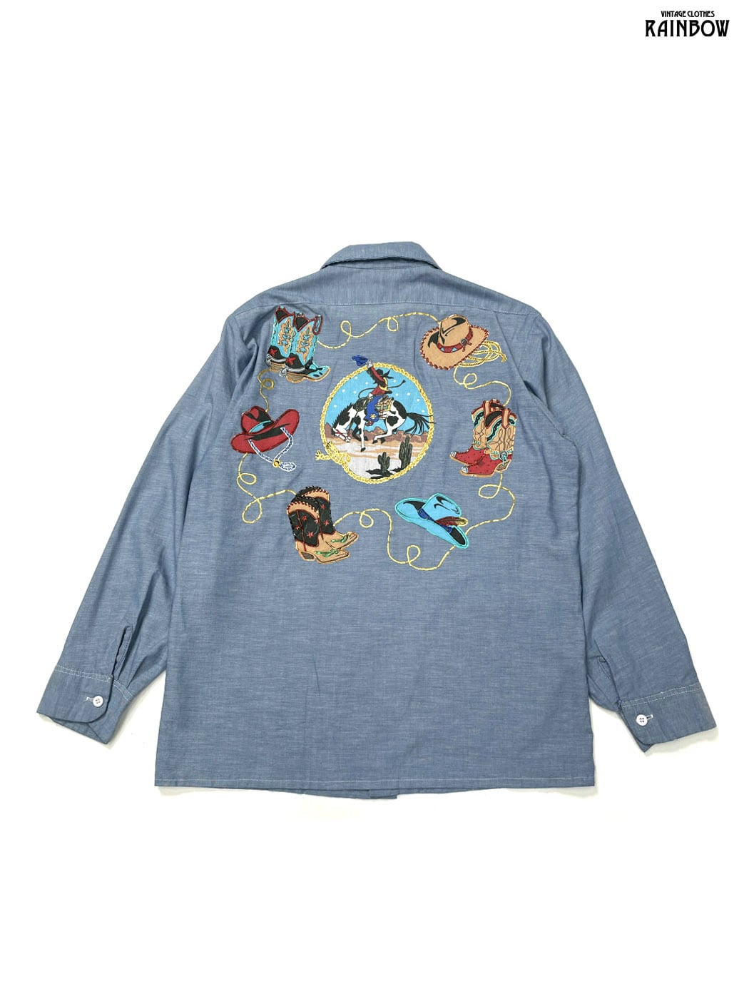 #ブラウス #シャツ #ロングスリーブ #青 #総柄 #プリントデザイン #カウボーイ #アメリカ製 #アップリケ #コットン #カジュアルシャツ