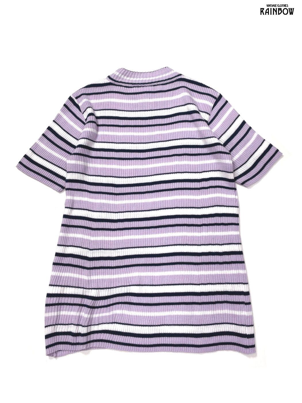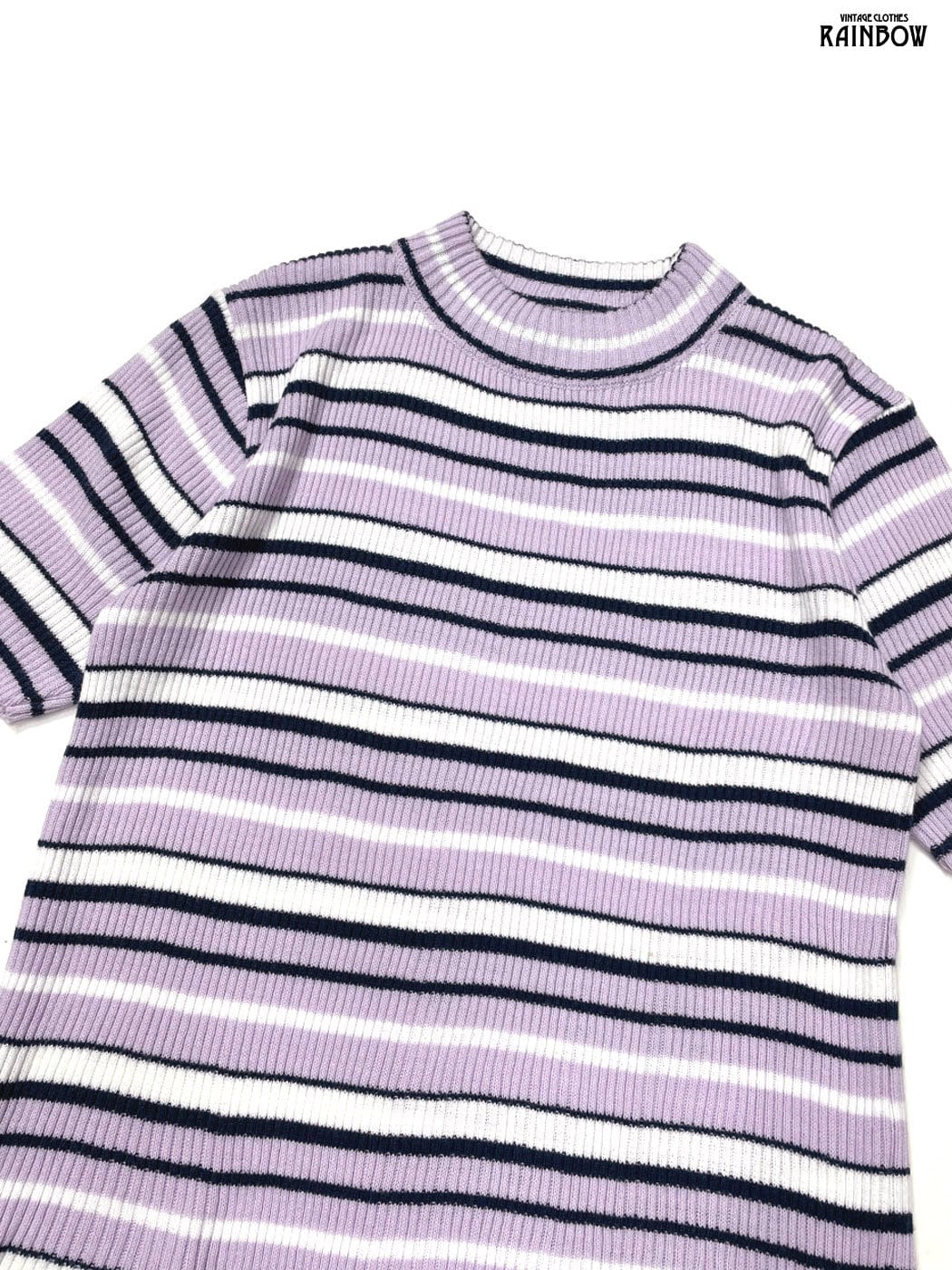 #ニット #半袖ニット #ハーフスリーブ #ピンク #ボーダー柄 #ガーリー #ニット地 #半袖ニット