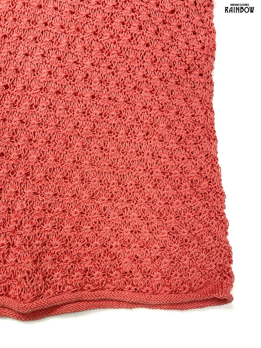古着 カギ編み 無地 半袖 ニット 赤 オレンジ (ttu2601216)