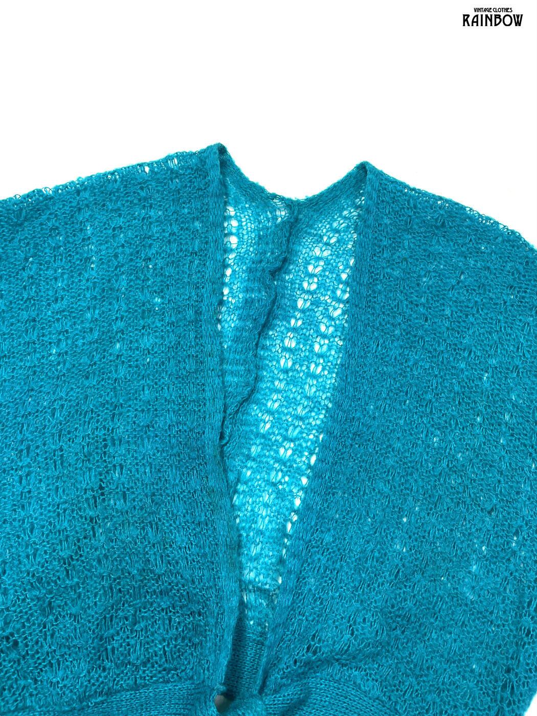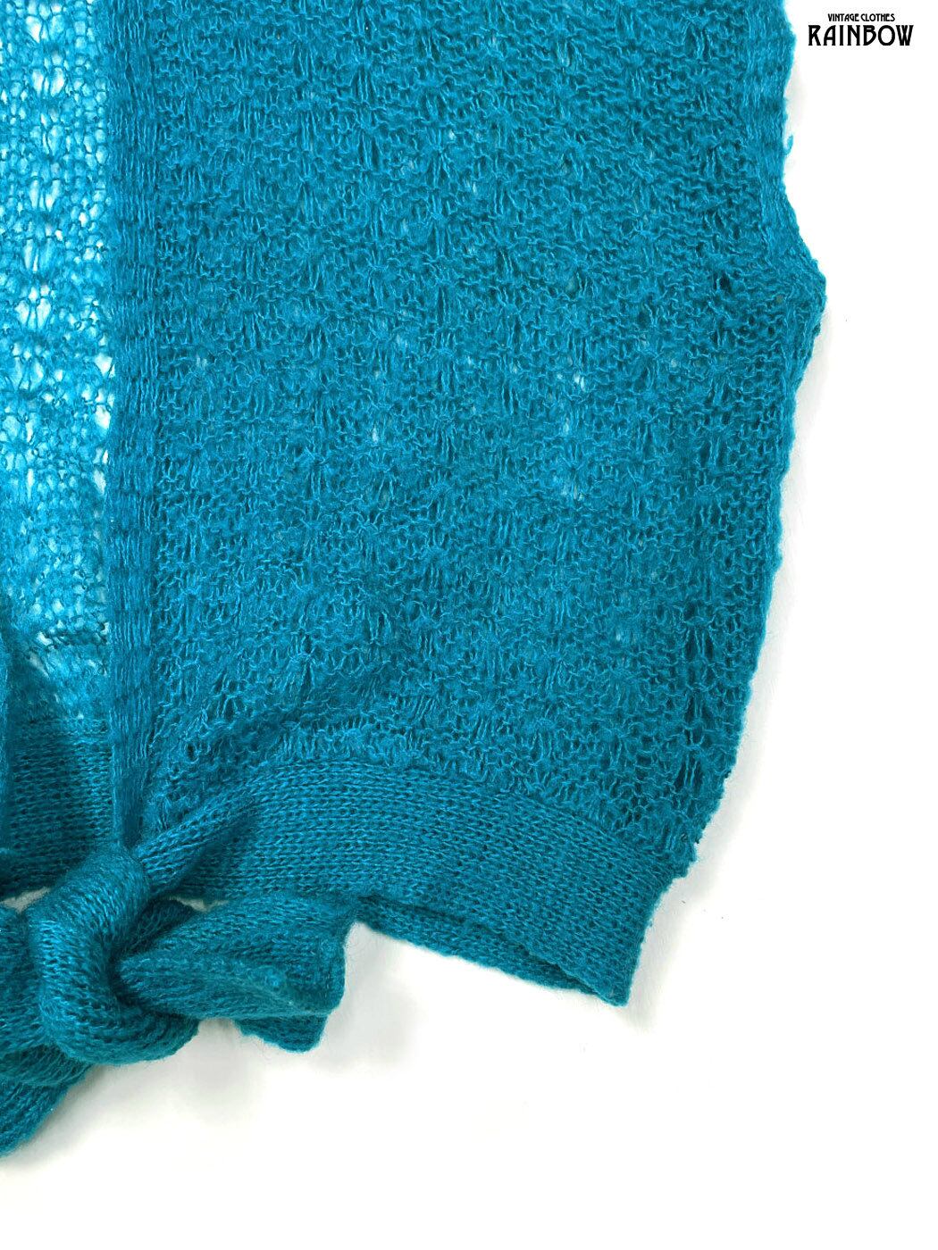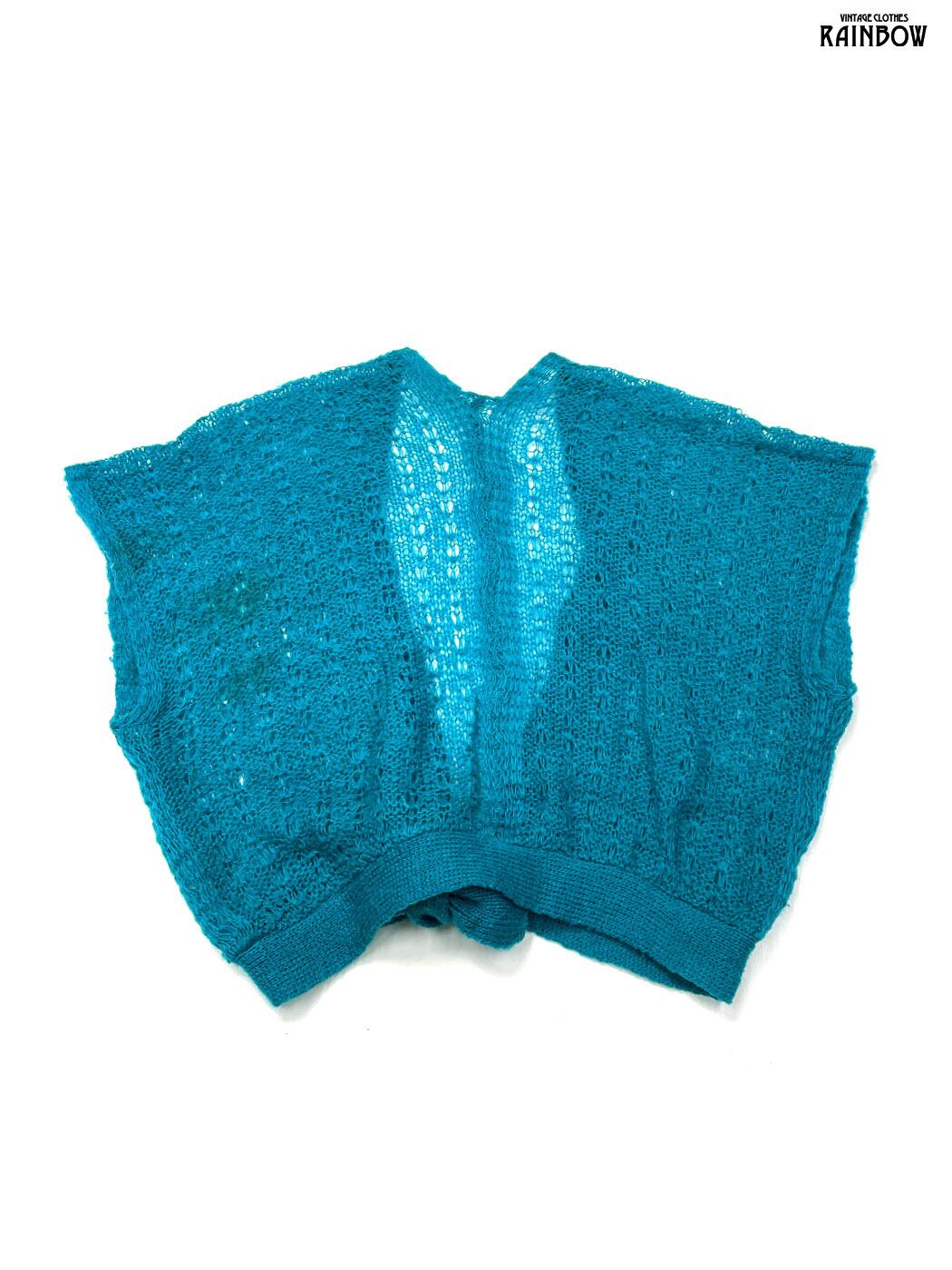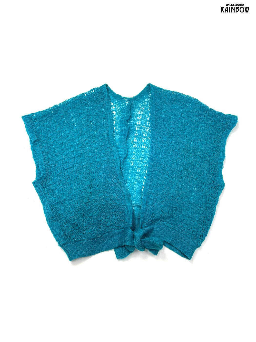 古着 リボン 無地 半袖 ニット 青 (ttu2601217)