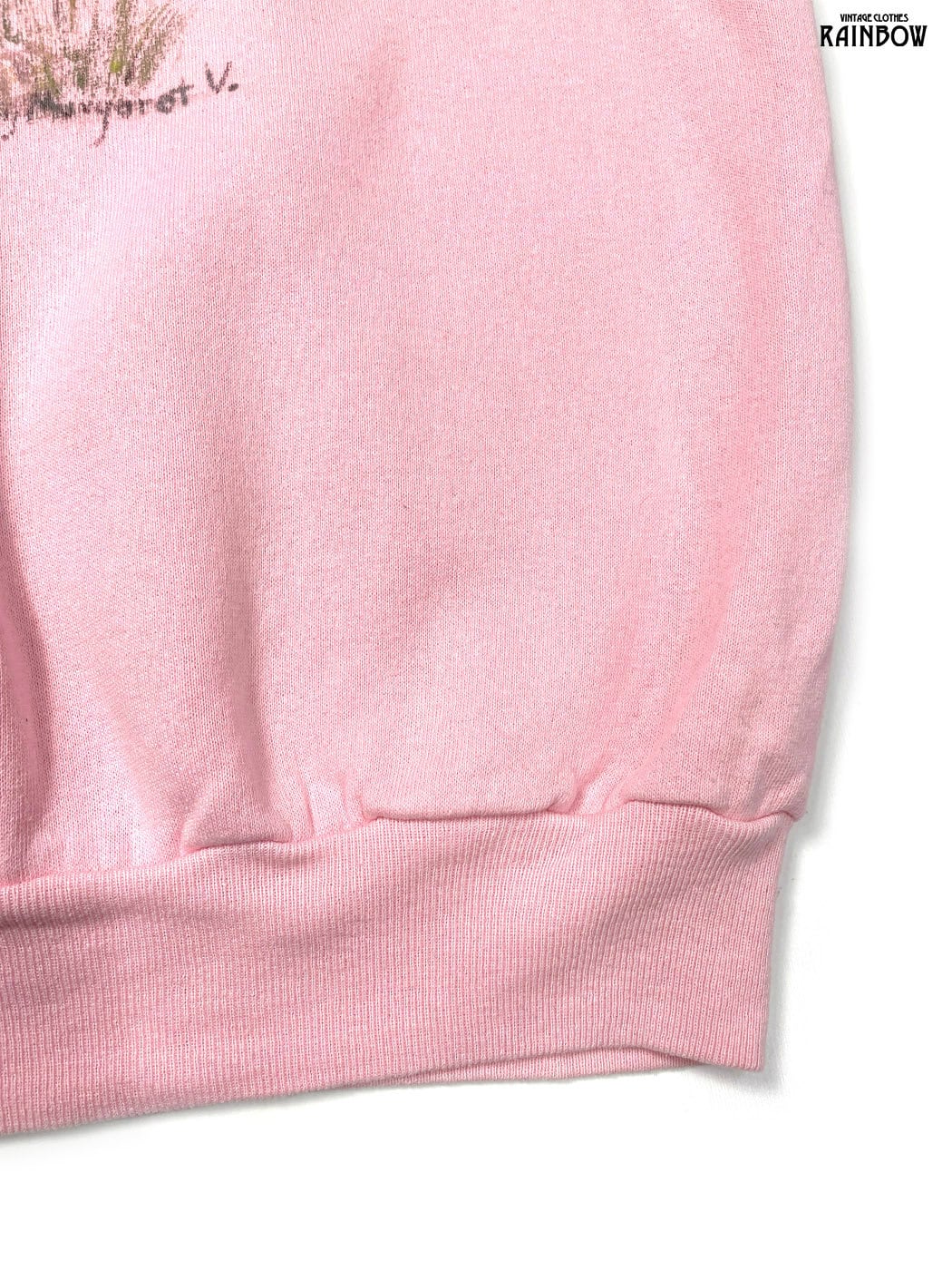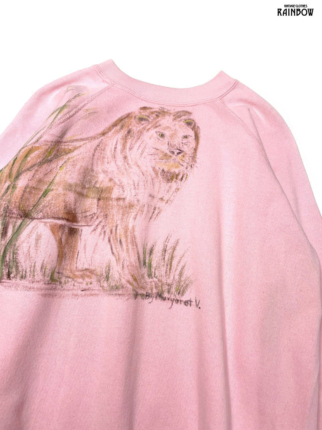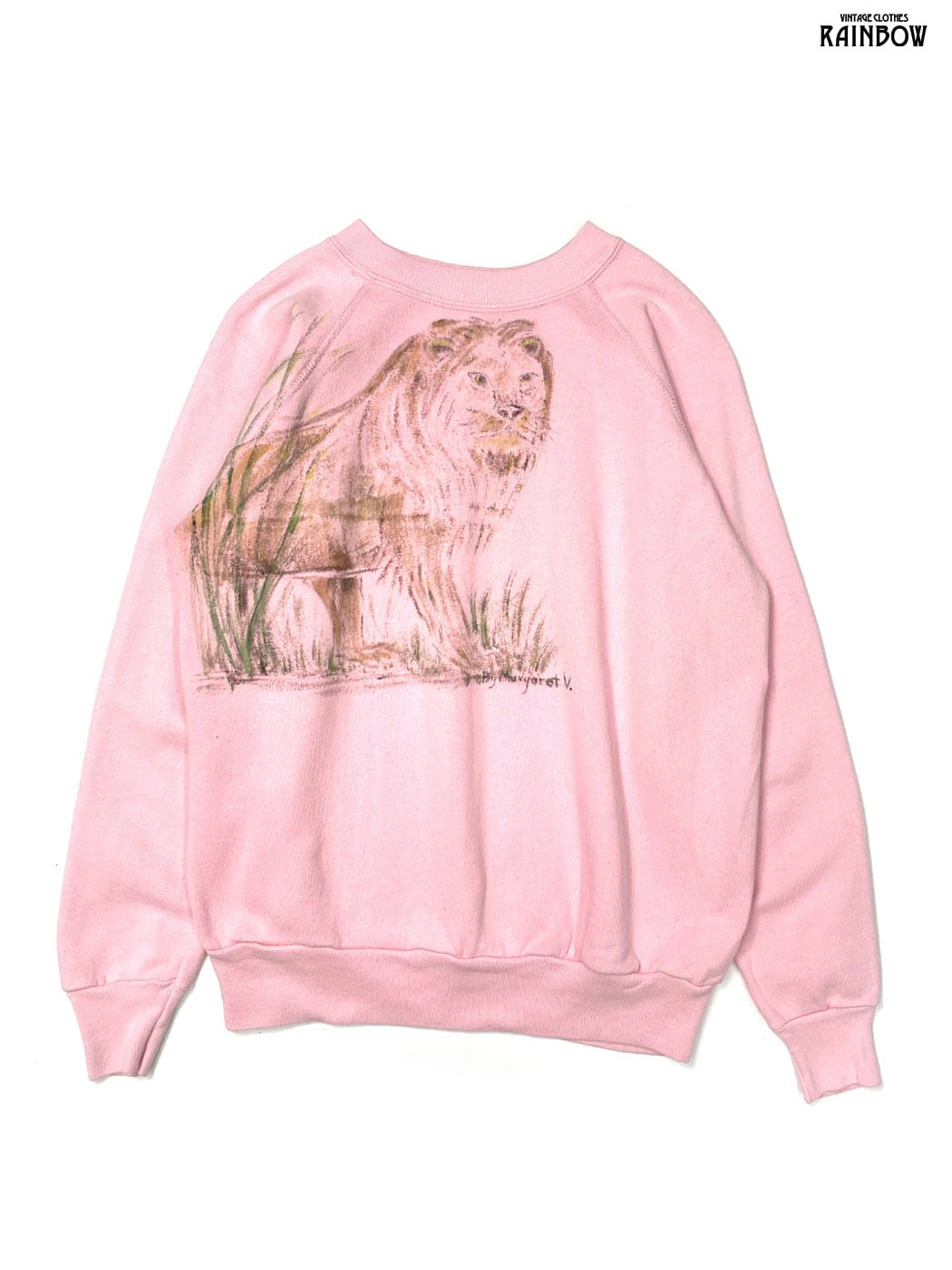 古着 ライオン イラスト アメリカ製 プリント コットン 長袖 スウェット トレーナー ピンク (ttu2601224)