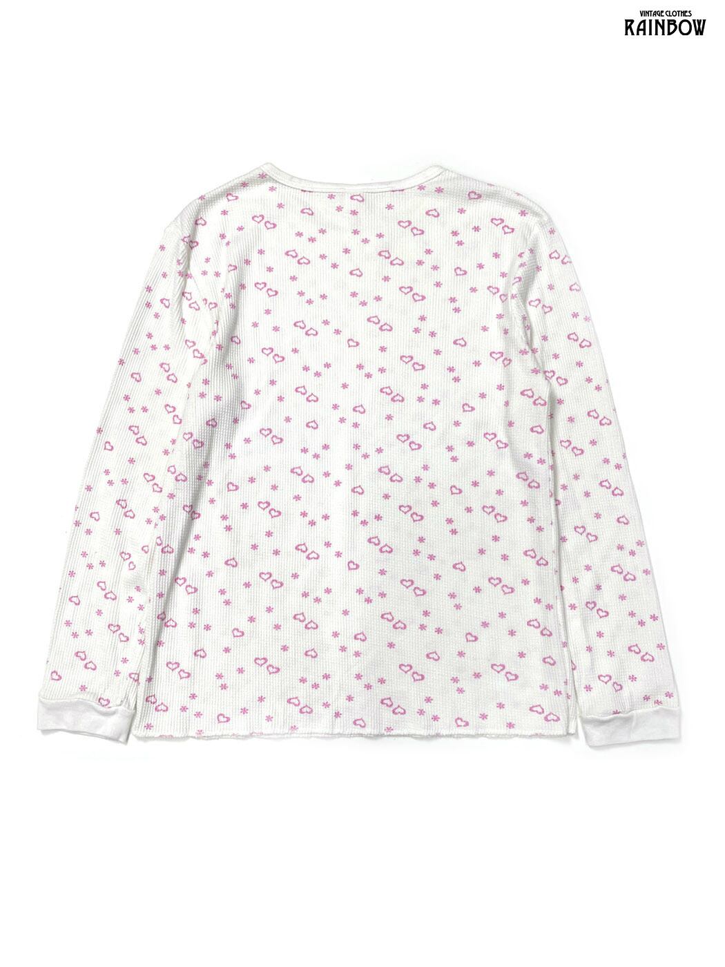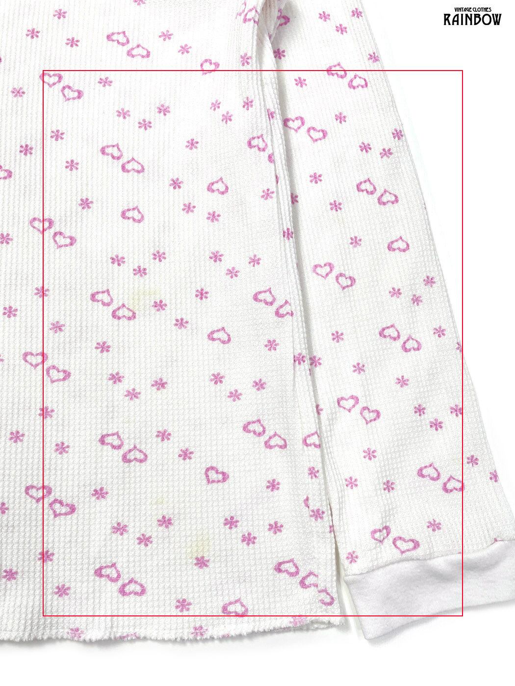 古着 mix&co. ハート 総柄 コットン 長袖 サーマル Tシャツ ピンク (ttu2601226)