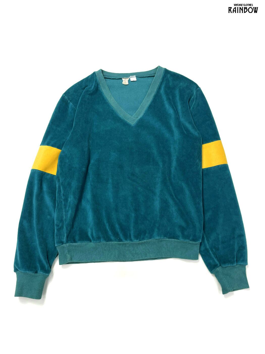 古着 無地 ベロア 長袖 トップス プルオーバー 緑 (ttu2601228)