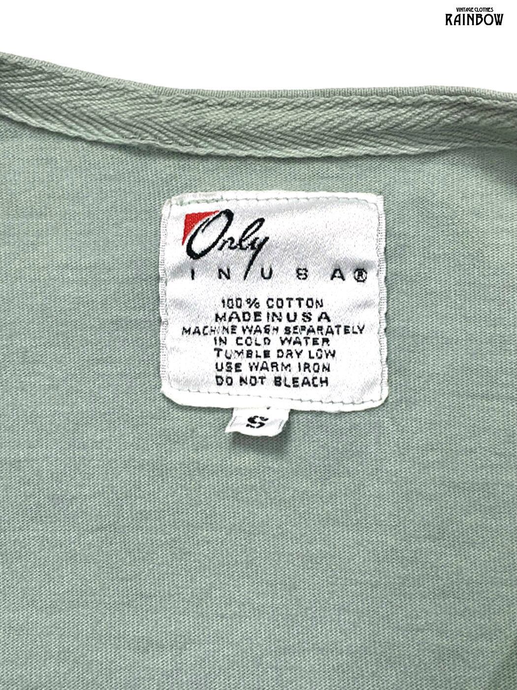 古着 Only IN USA アメリカ製 無地 コットン100% 長袖 アウター 羽織り くすみ 緑 (ttu2601234)