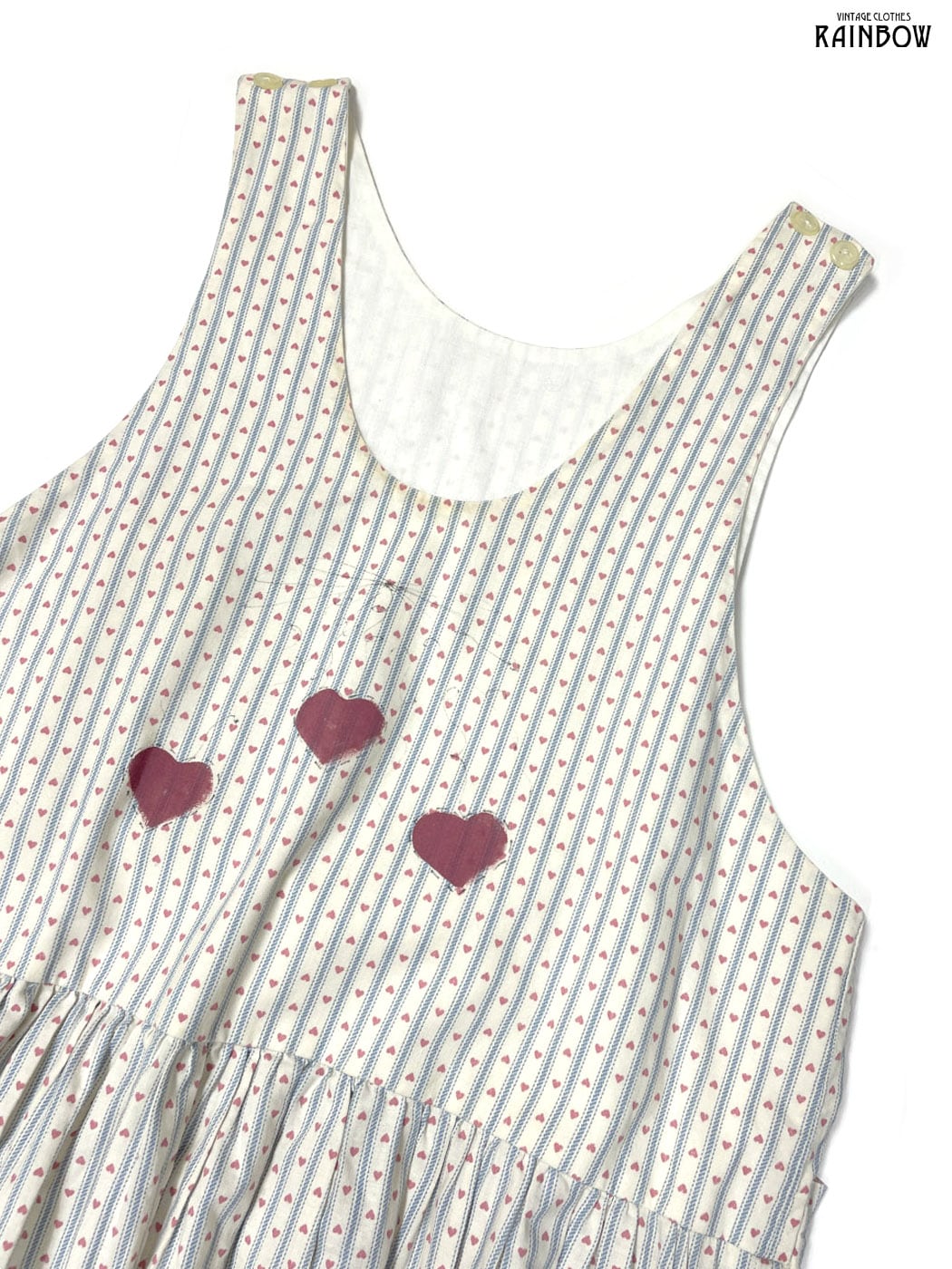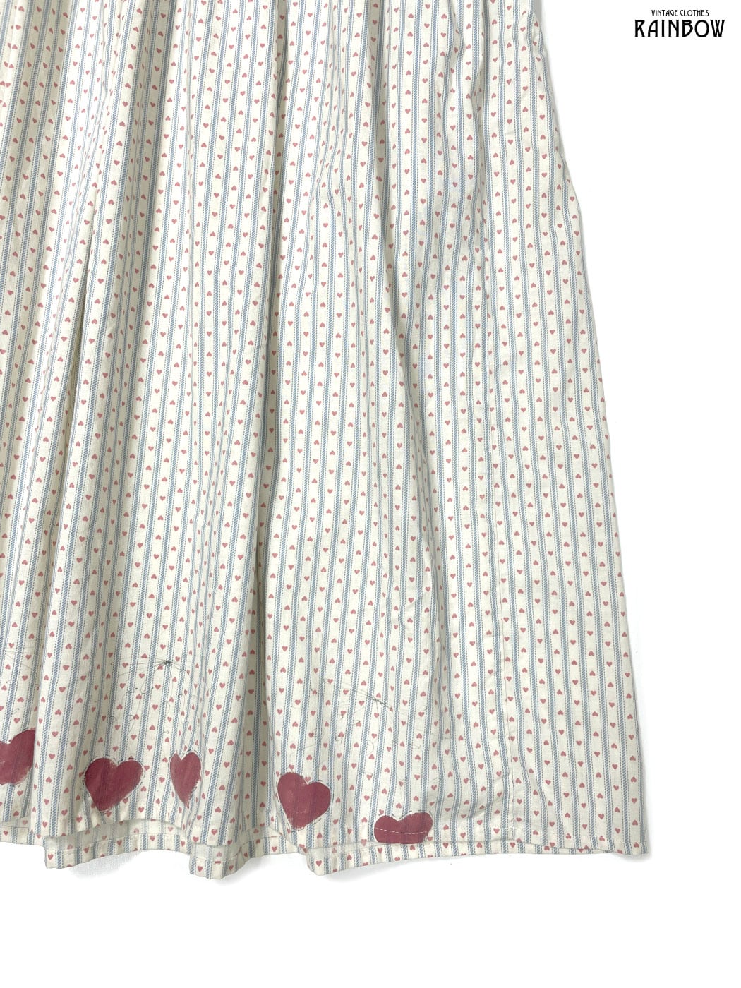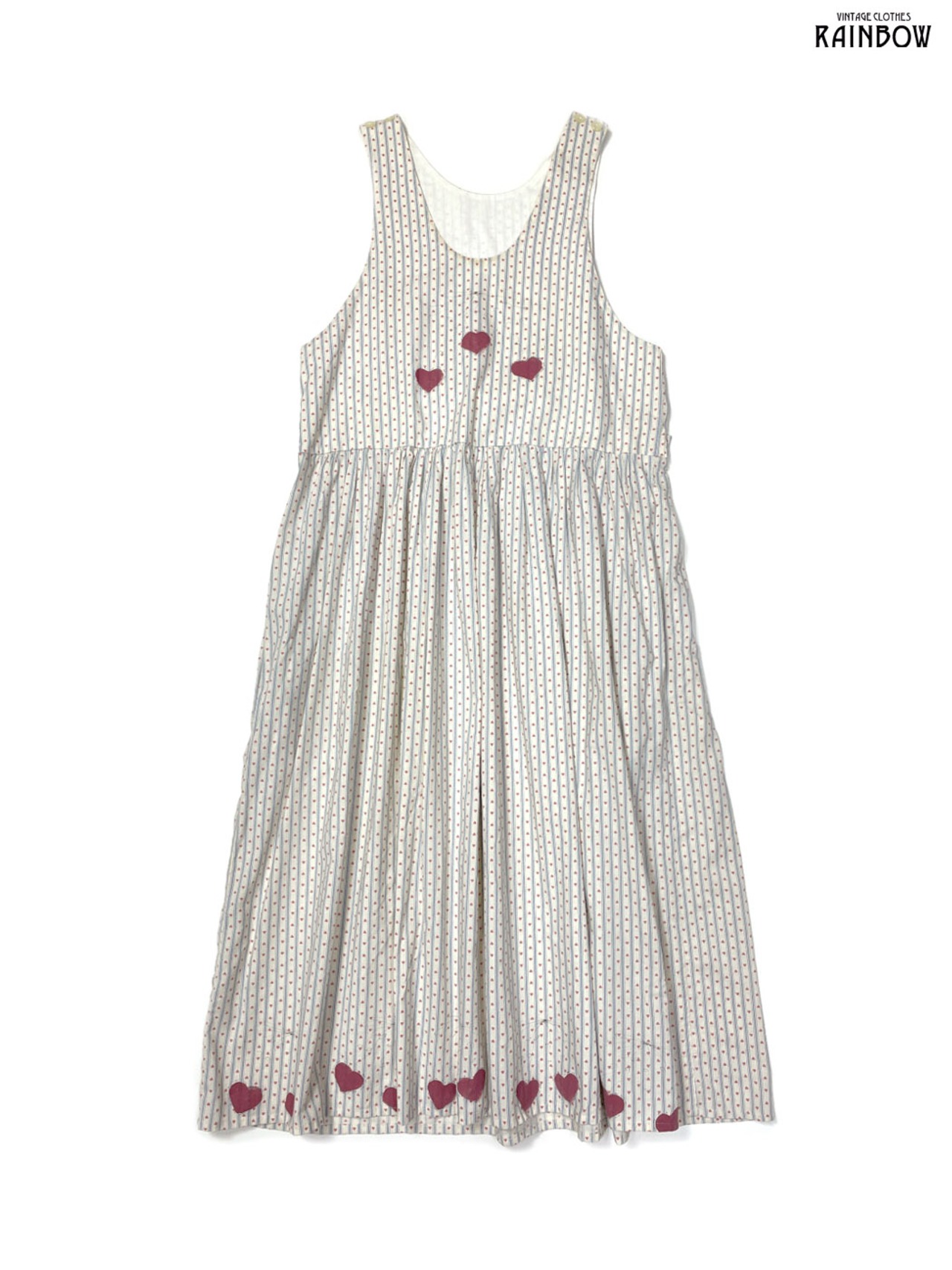 #ワンピース #ノースリーブ #ロング丈 #ウエスト切り替え #ベージュ #ストライプ柄 #総柄 #ハート #リボン #ガーリー #コットン #ノースリーブ総柄ワンピース