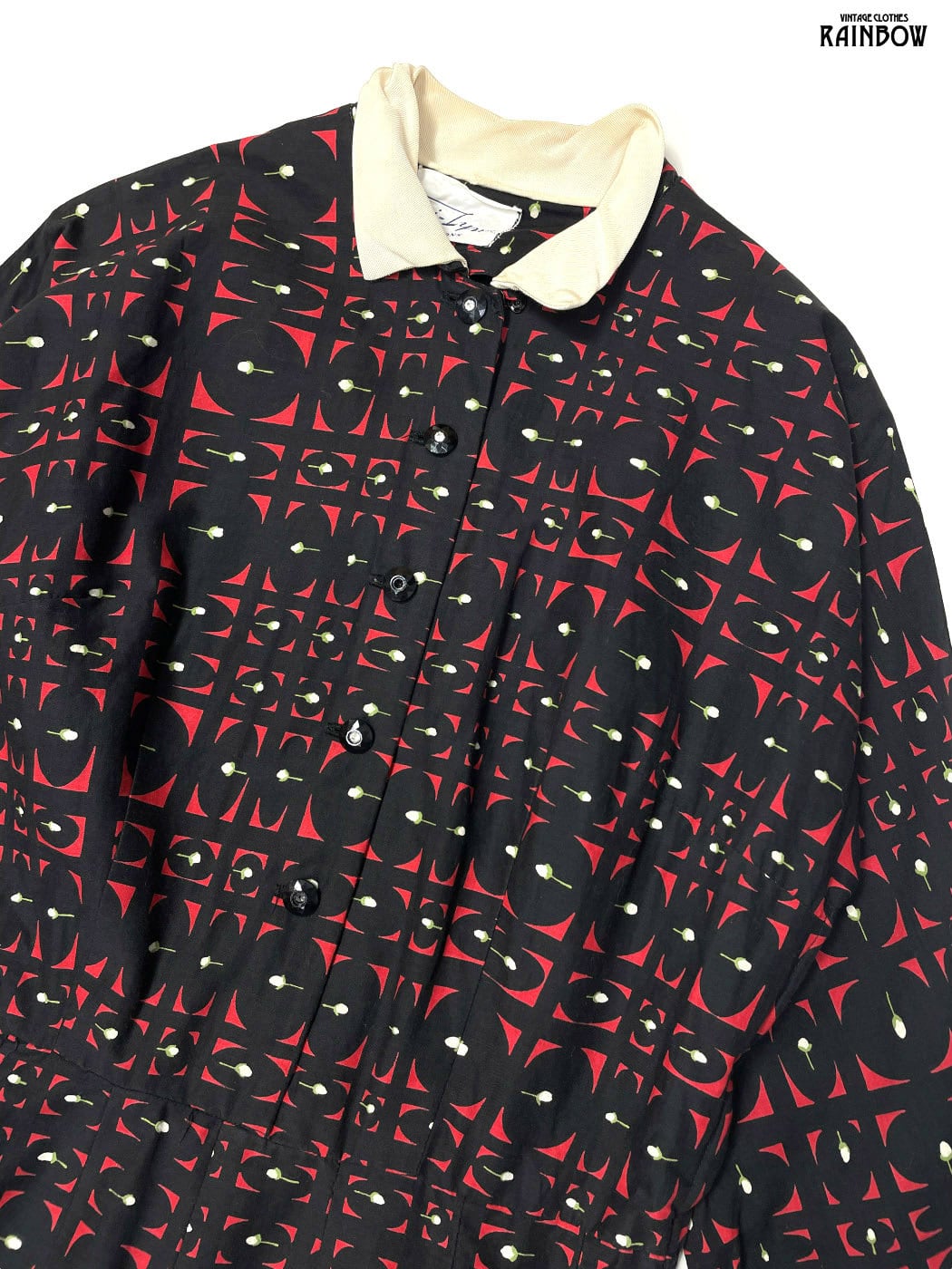 #ワンピース #ロングスリーブ #ロング丈 #黒 #花柄 #総柄 #クラシック #コットン #長袖花柄ワンピース
