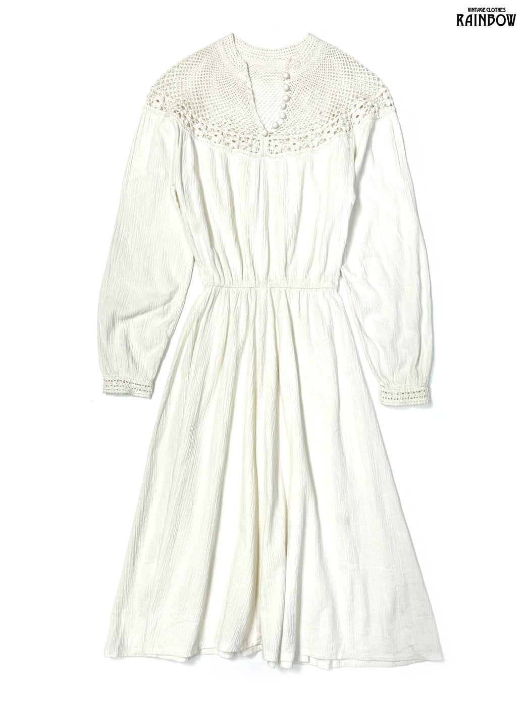 #ワンピース #ロングスリーブ #ロング丈 #ゴムウエスト #白 #生成り #無地 #レース #ナチュラル #コットン #長袖無地ワンピース