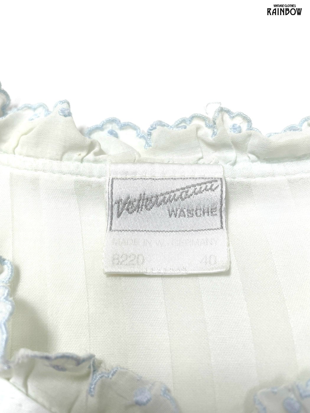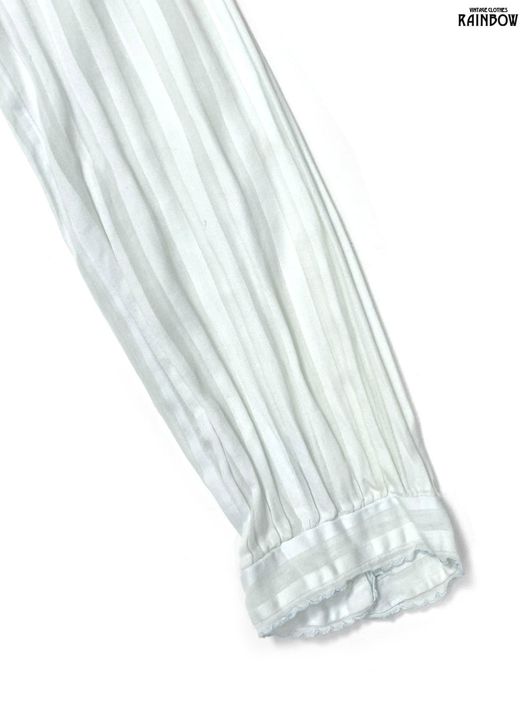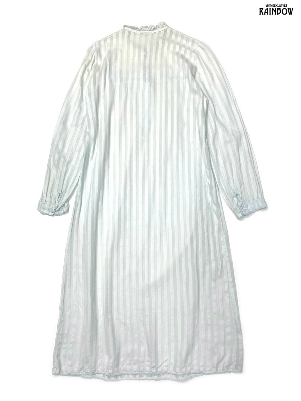#ワンピース #ロングスリーブ #水色 #ストライプ柄 #ドイツ製 #刺繍 #レース #ガーリー #コットン #長袖ストライプ柄ワンピース