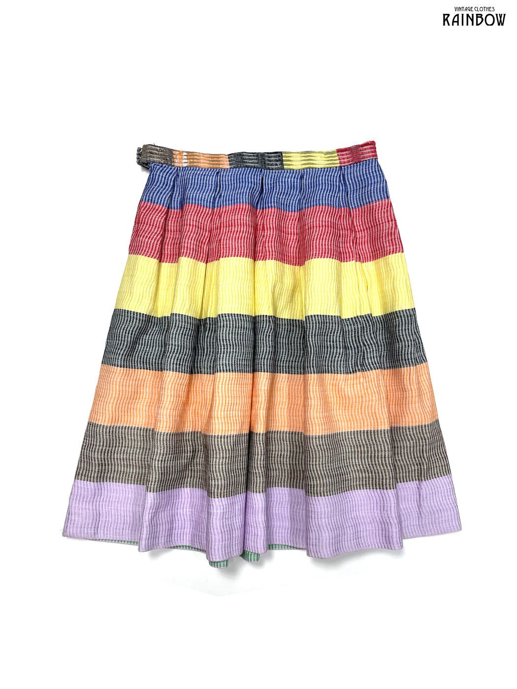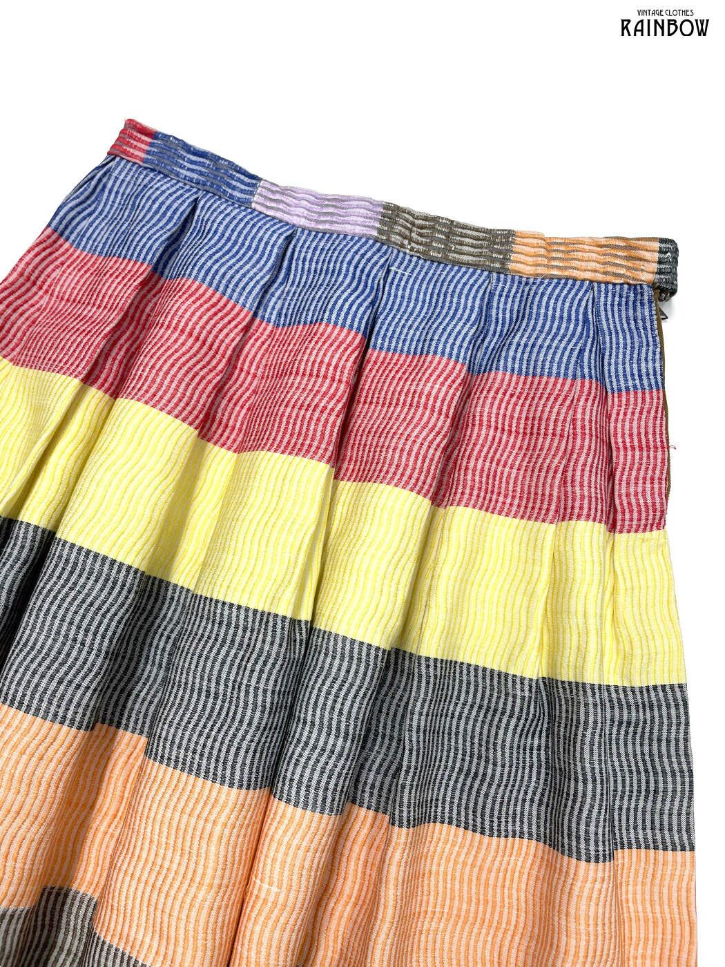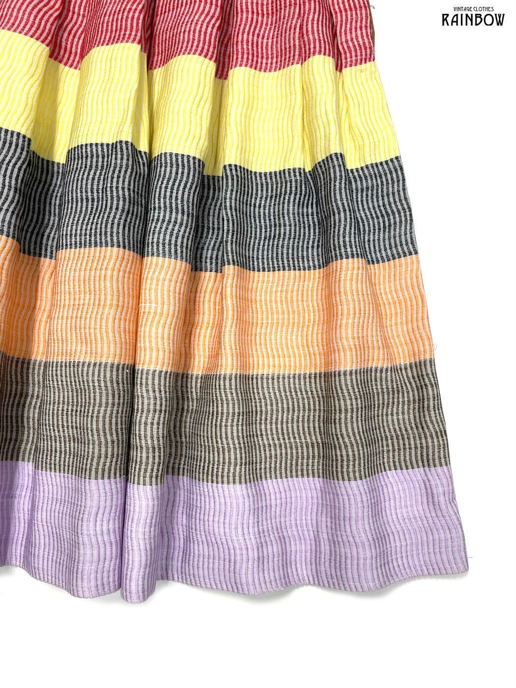 古着 ボーダー柄 コットン 膝丈 スカート オレンジ カラフル (btu2601117)