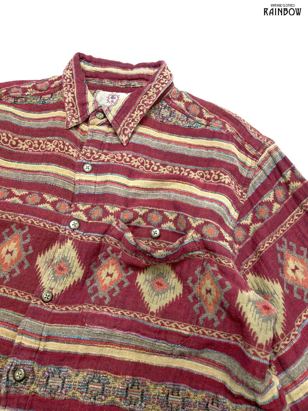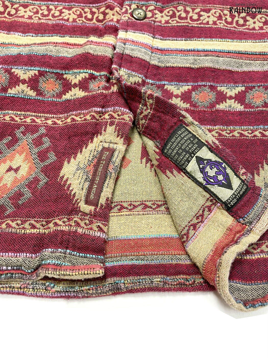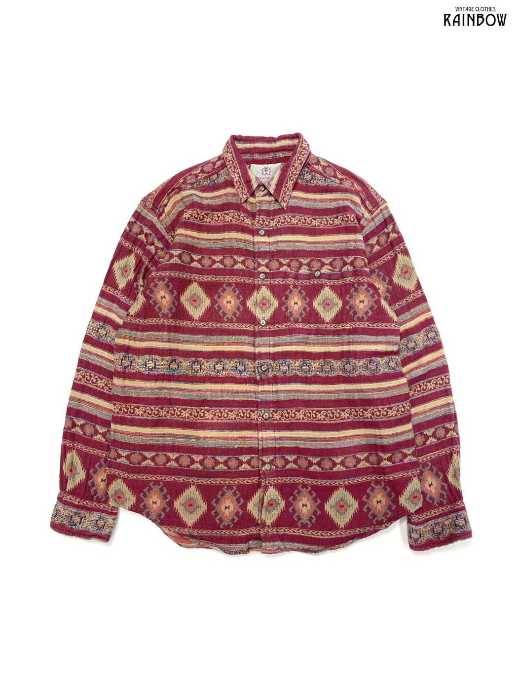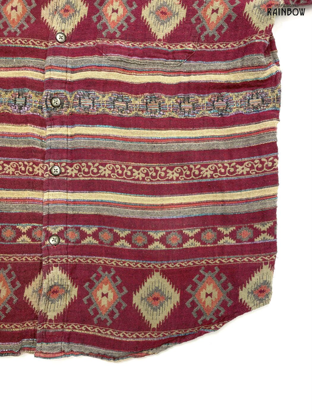 #ブラウス #シャツ #ロングスリーブ #赤 #ボルドー #ボーダー柄 #総柄 #エスニック柄 #エスニック #コットン #エスニックシャツ