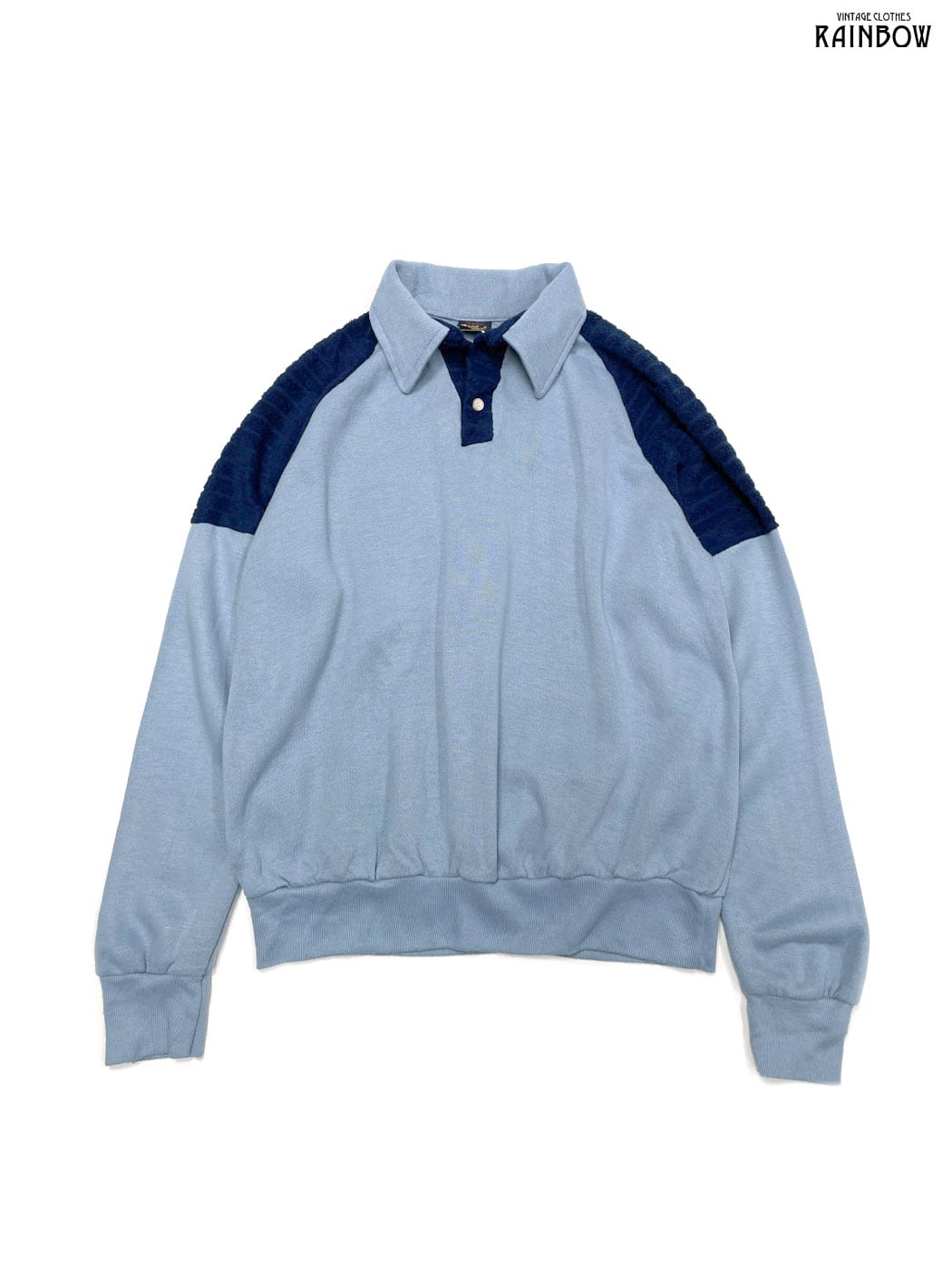 #トップス #プルオーバー #ロングスリーブ #紺 #水色 #無地 #アメリカ製 #パイル地 #ヴィンテージ #長袖無地プルオーバー