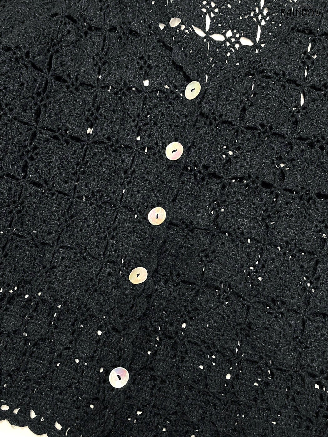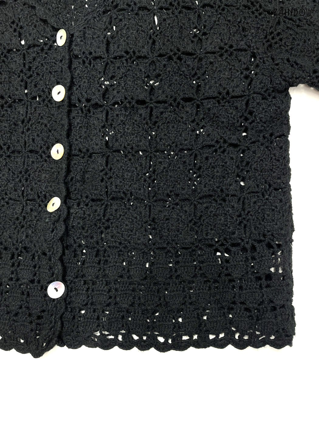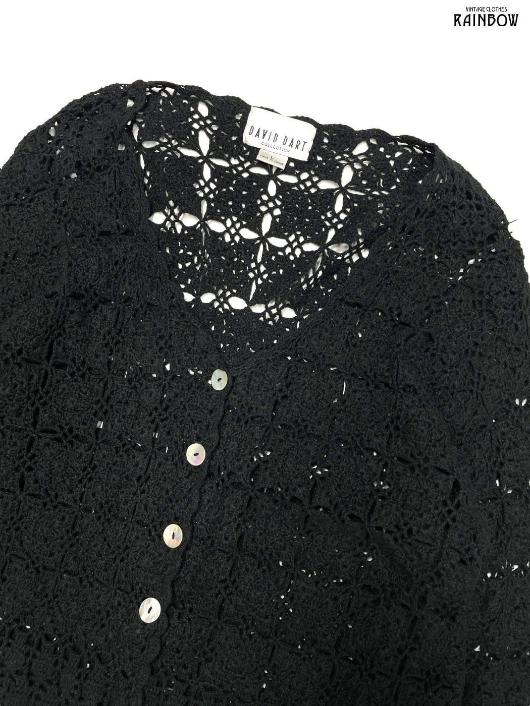 #ニット #カーディガン #ロングスリーブ #黒 #無地 #かぎ編み #シェルボタン #シック #ヴィンテージ #ニット地 #無地カーディガン