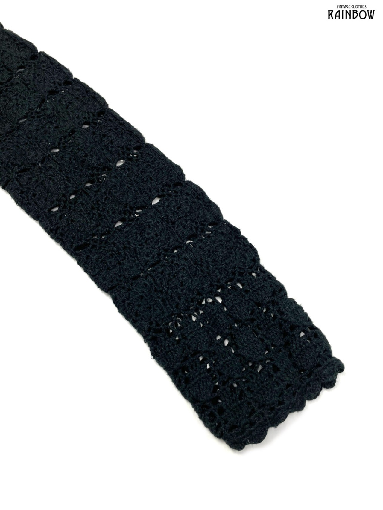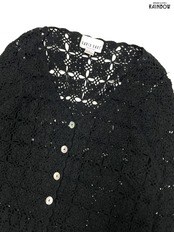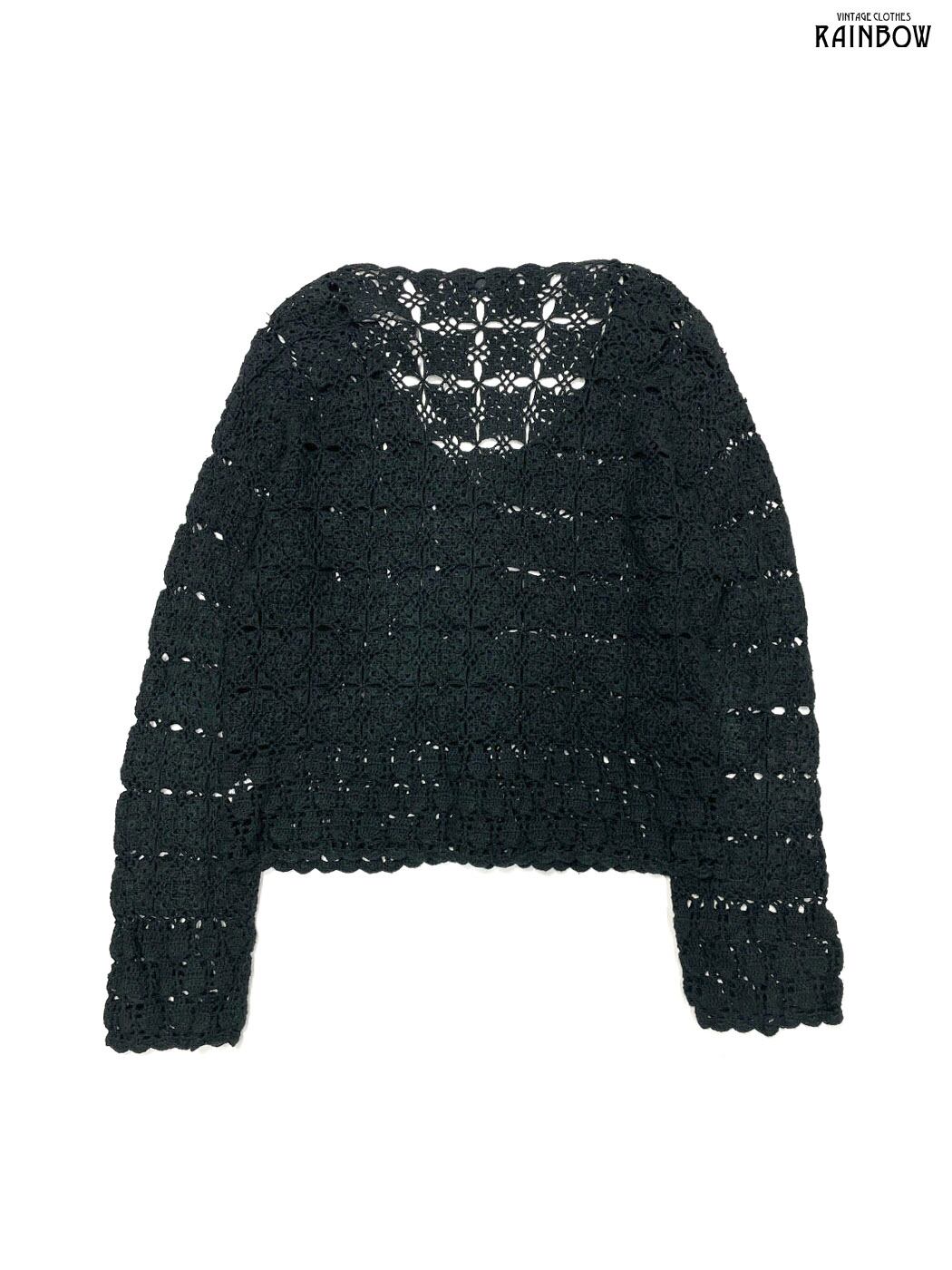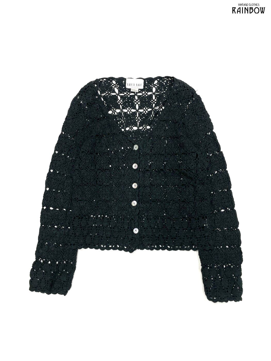 #ニット #カーディガン #ロングスリーブ #黒 #無地 #かぎ編み #シェルボタン #シック #ヴィンテージ #ニット地 #無地カーディガン