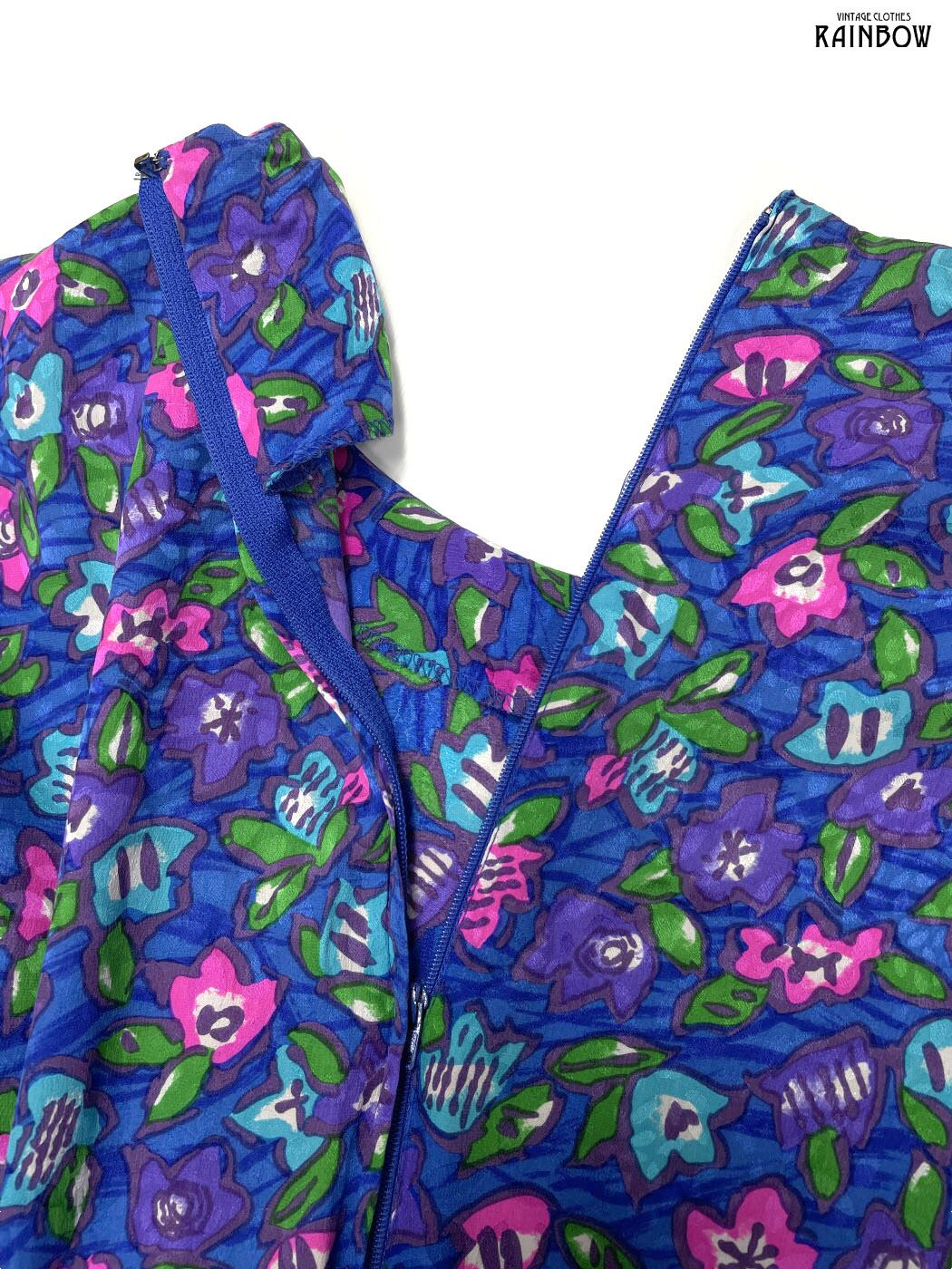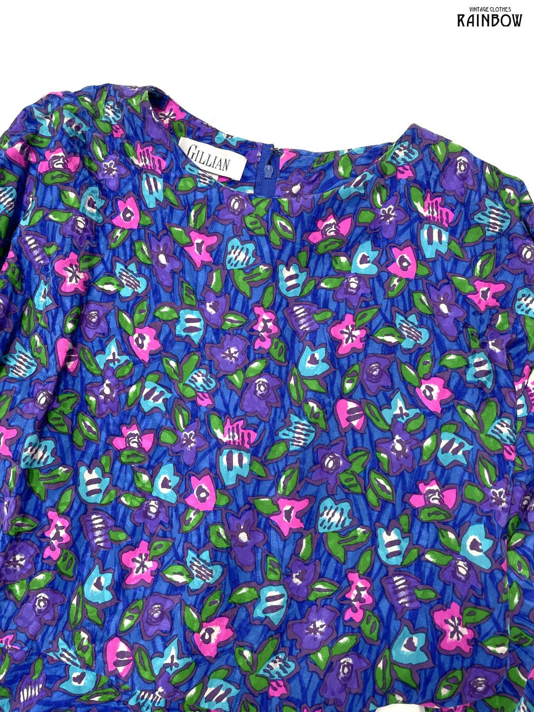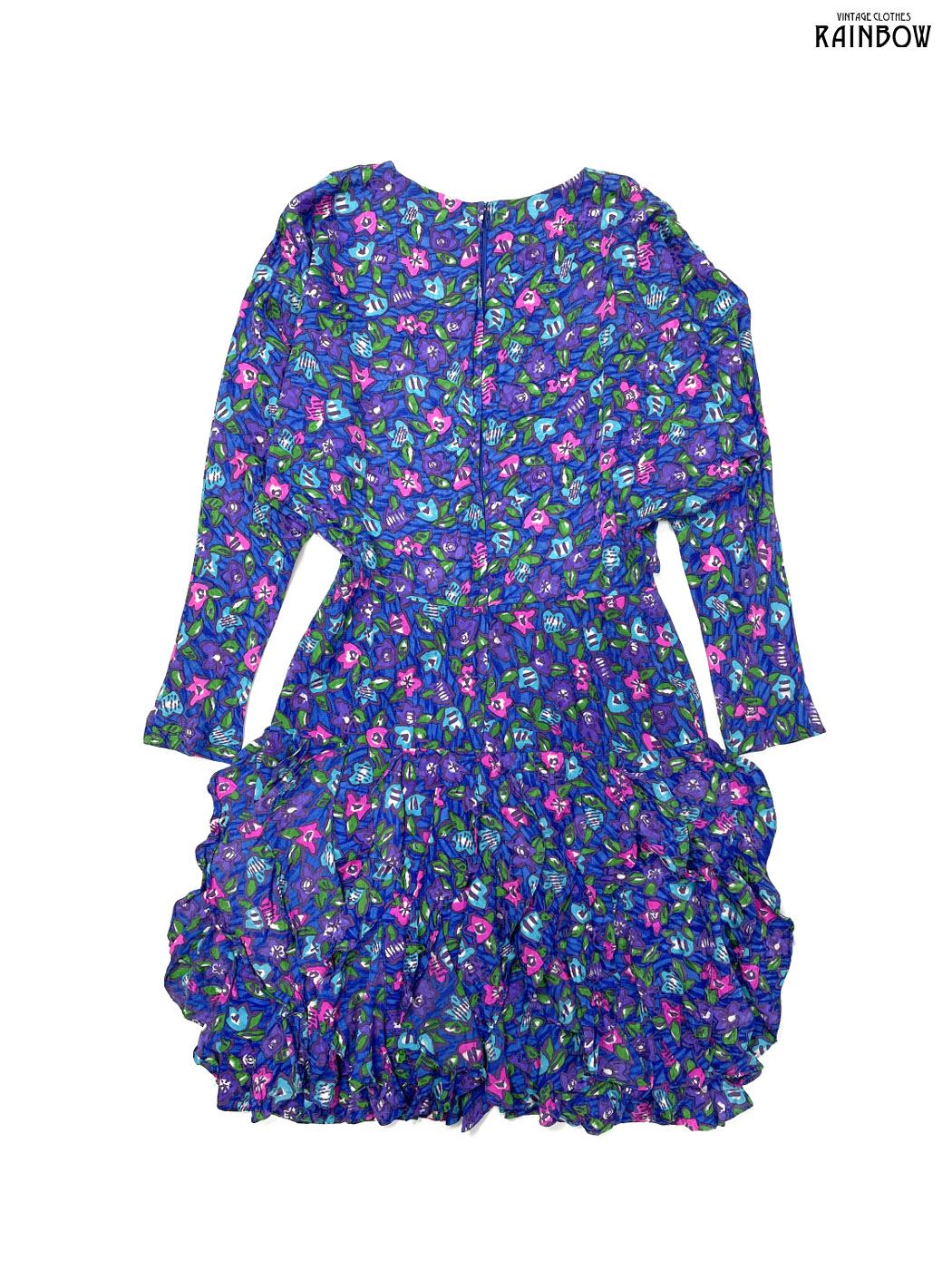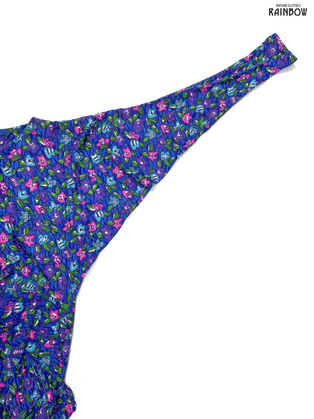 #ワンピース #ロングスリーブ #ロング丈 #フレア #青 #ピンク #紫 #花柄 #フリル #ガーリー #シルク #シルクワンピース