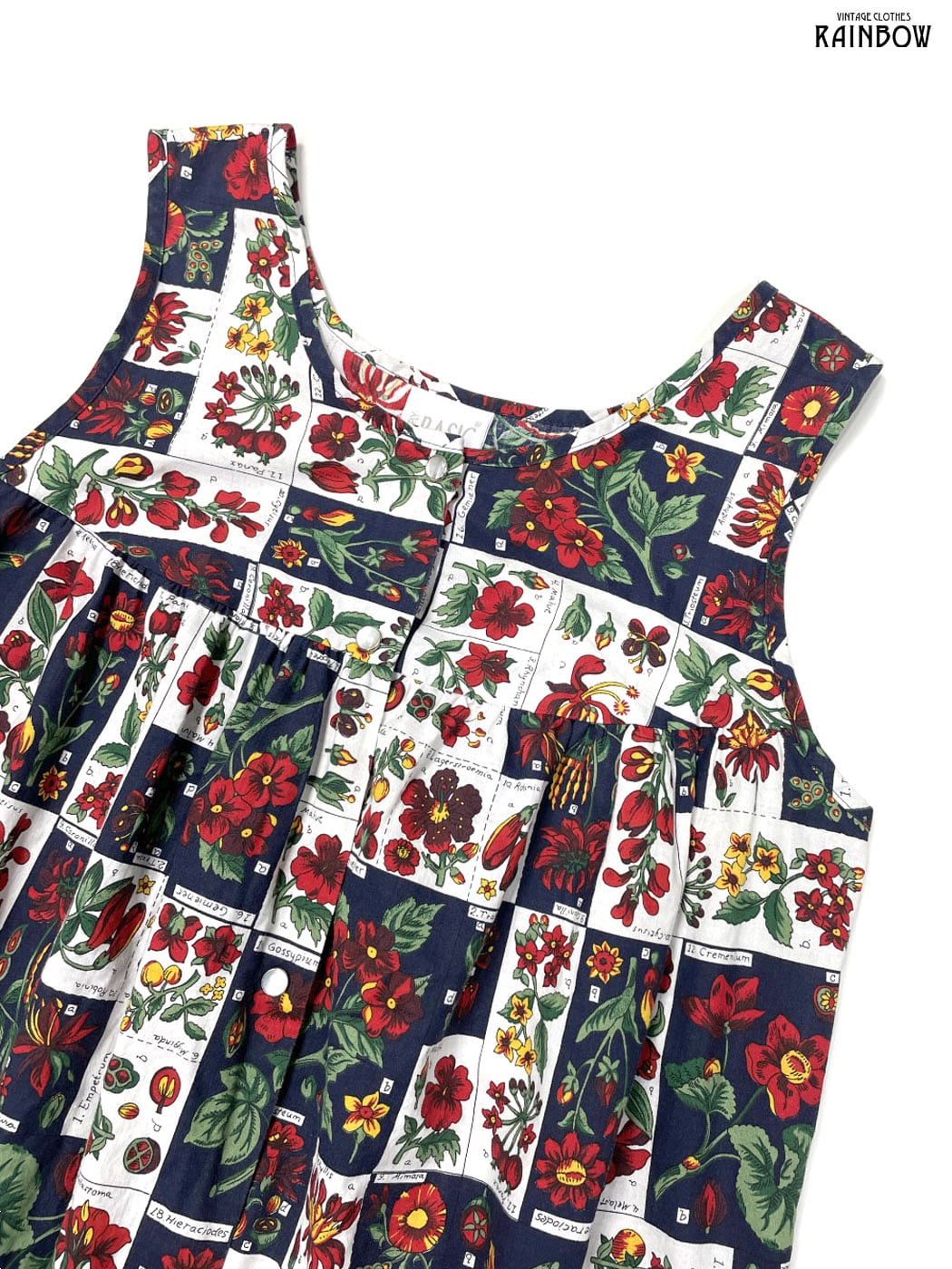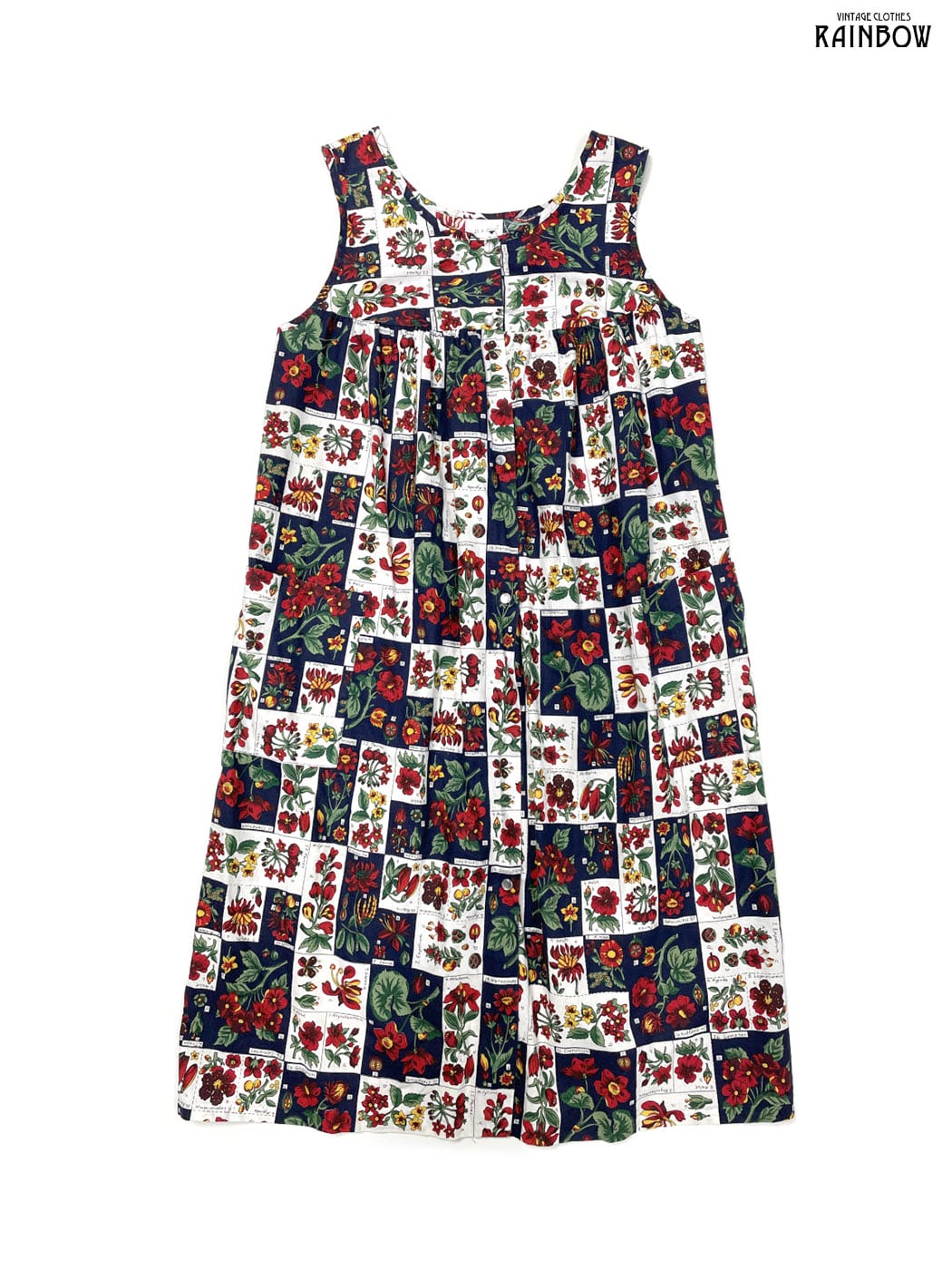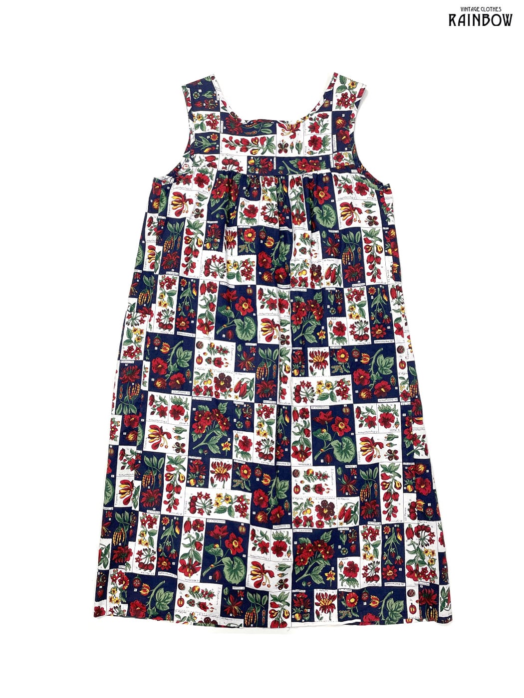 #ワンピース #ノースリーブ #ロング丈 #ストレート #バスト切り替え #白 #赤 #紺 #花柄 #アメリカ製 #クラシック #コットン #ノースリーブ花柄ワンピース