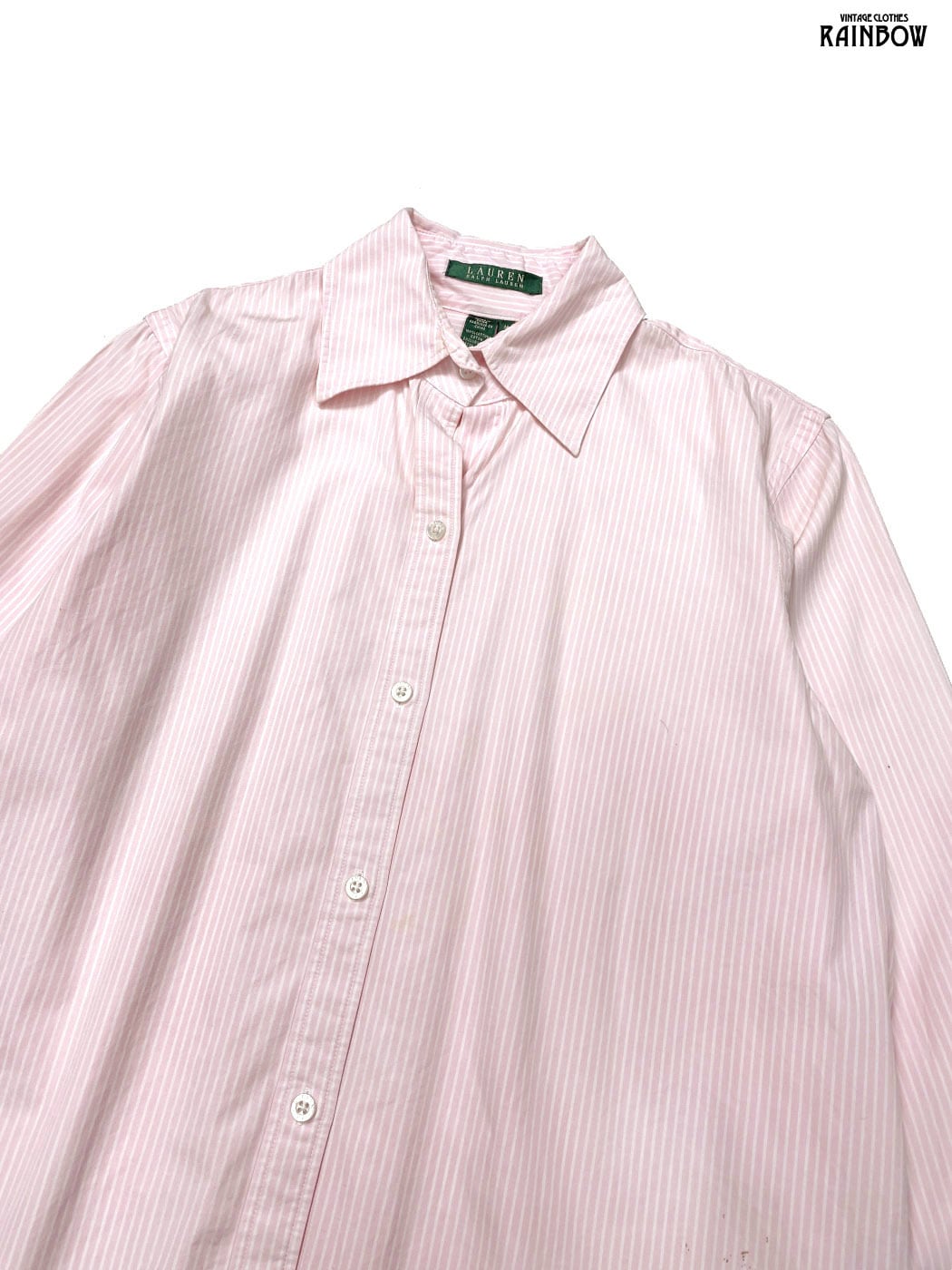古着 LAUREN RALPH LAUREN ラルフローレン 袖ロゴ刺繍 ストライプ柄 コットン100% 長袖 シャツ ピンク (ttu2602004)