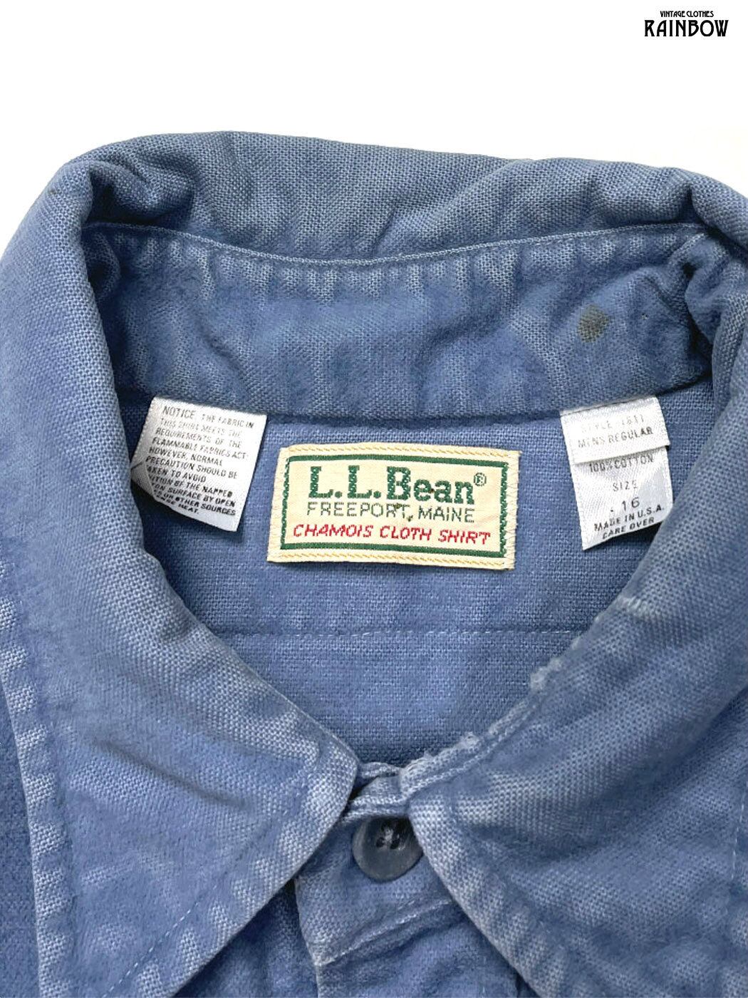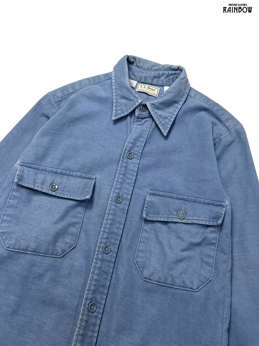 古着 L.L.Bean エルエルビーン アメリカ製 無地 コットン100% 長袖 シャツ 青 (ttu2602006)