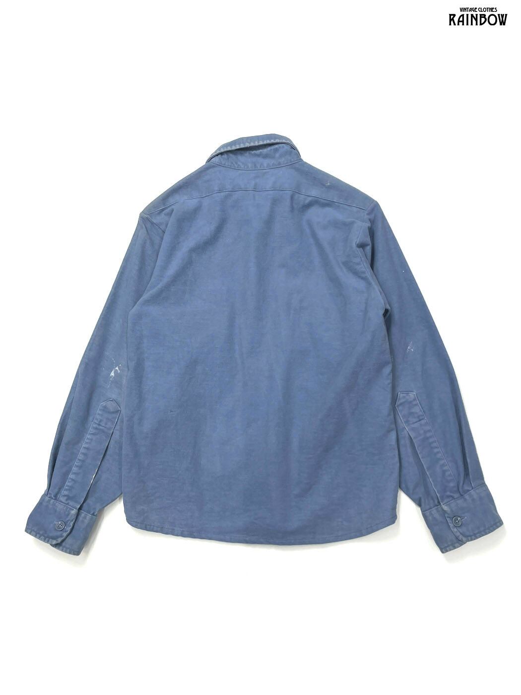 #ブラウス #シャツ #ロングスリーブ #青 #無地 #アメリカ製 #シンプル #コットン #カジュアルシャツ