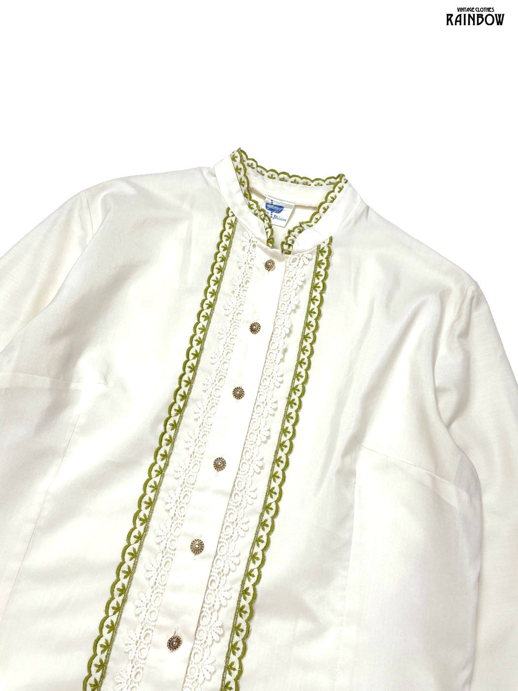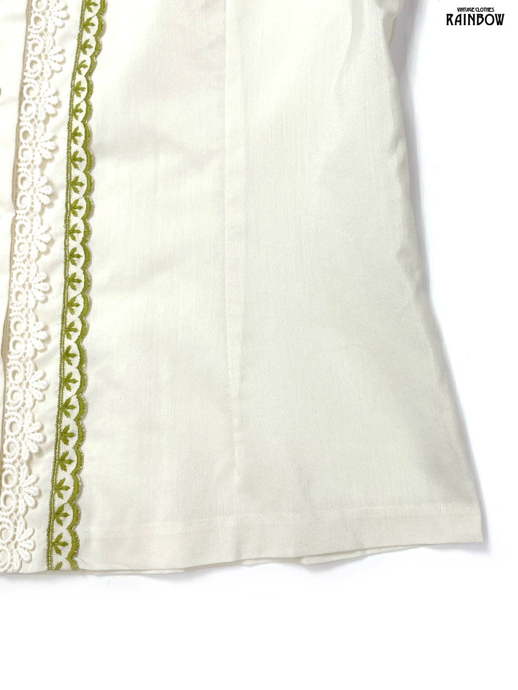 古着 刺繍 レース 無地 コットン 長袖 ブラウス ベージュ 生成り (ttu2602013)