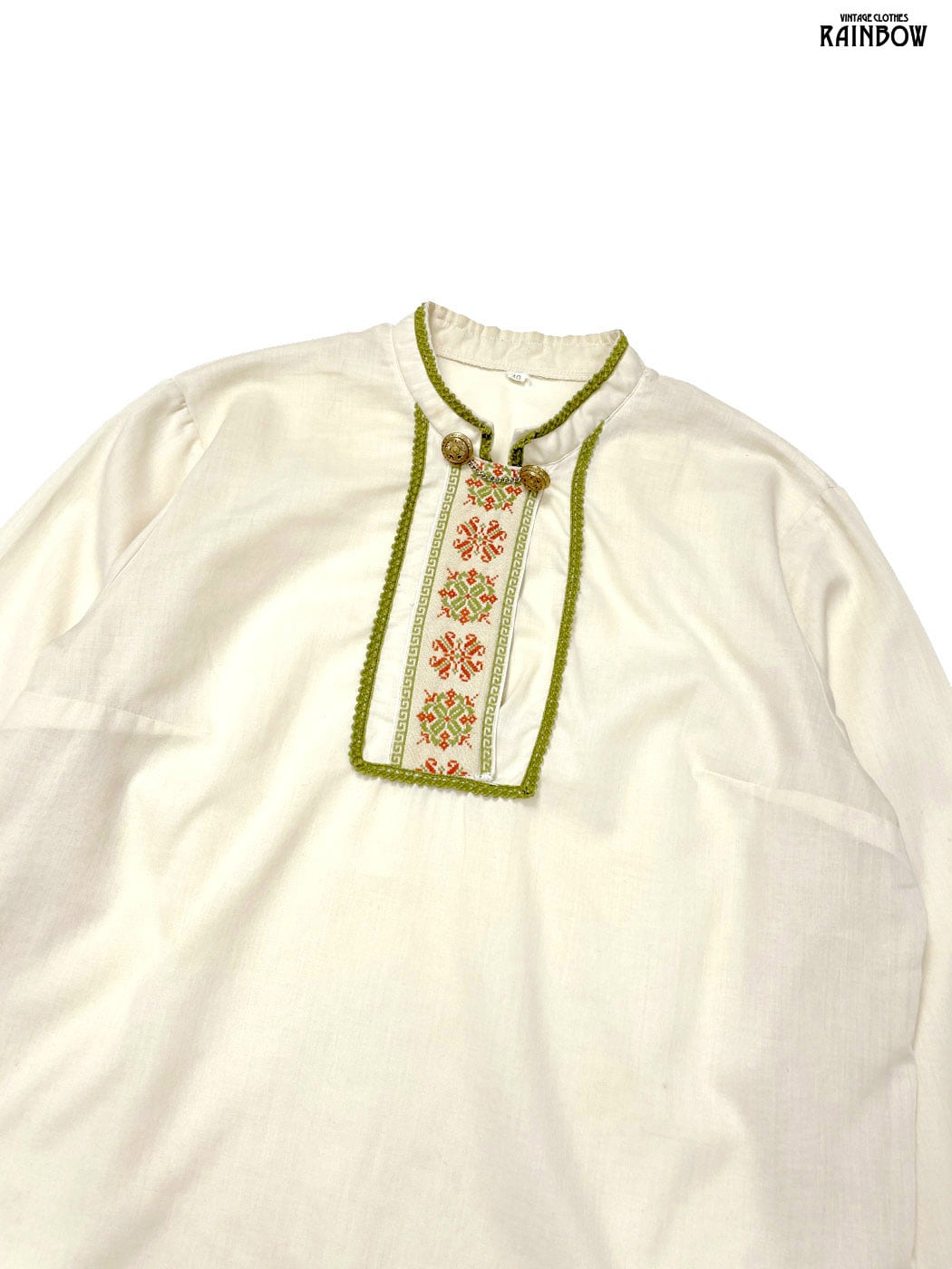 古着 刺繍 レース 無地 コットン 長袖 ブラウス ベージュ 生成り (ttu2602014)