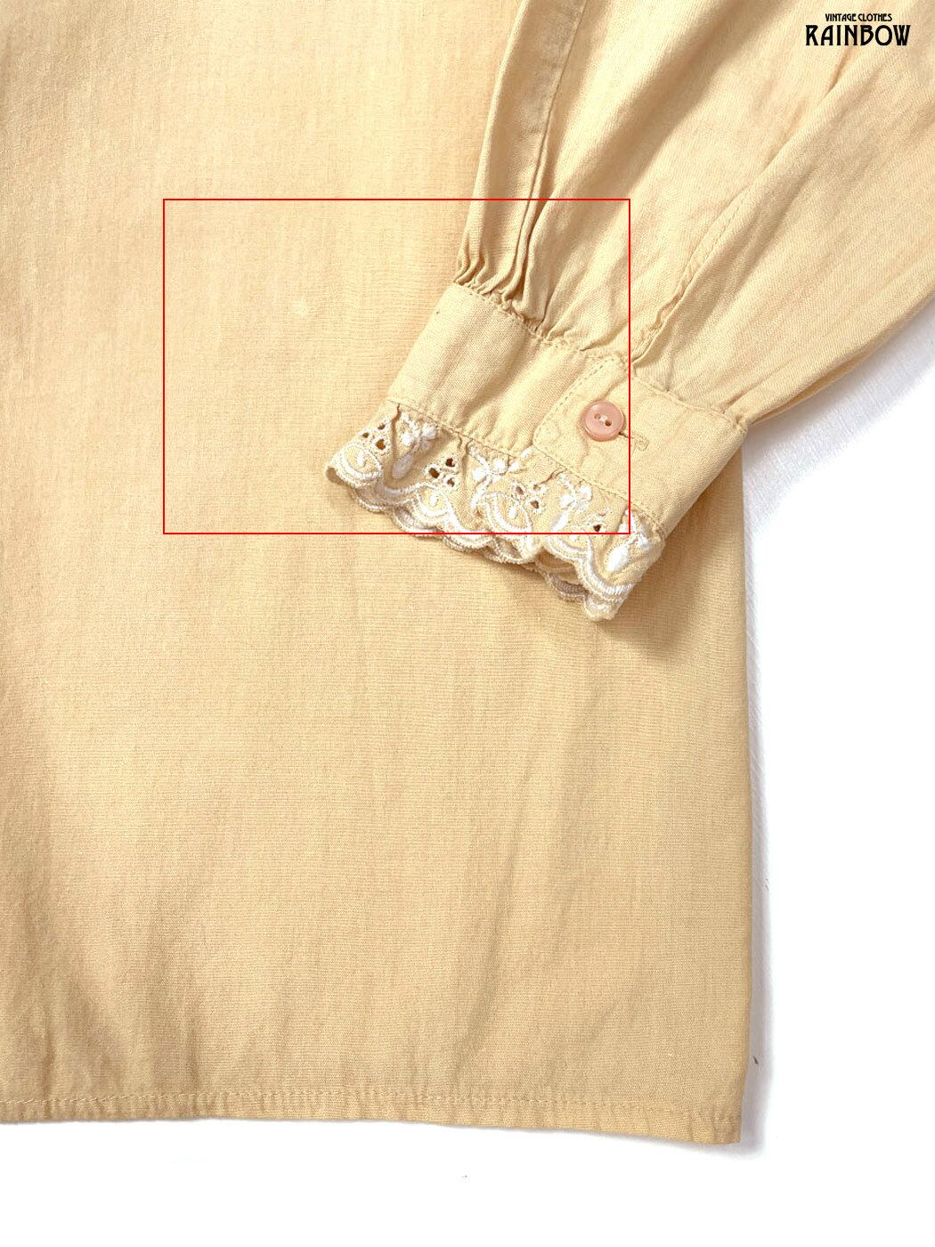 古着 フリル 刺繍 無地 コットン 長袖 ブラウス パステル オレンジ (ttu2602015)