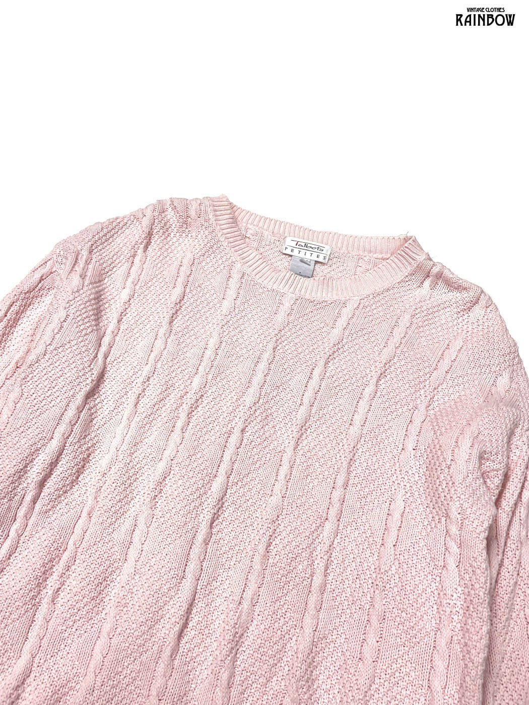 古着 Talbots タルボット ケーブル編み 無地 コットン100% 長袖 ニット セーター ピンク (ttu2602018)
