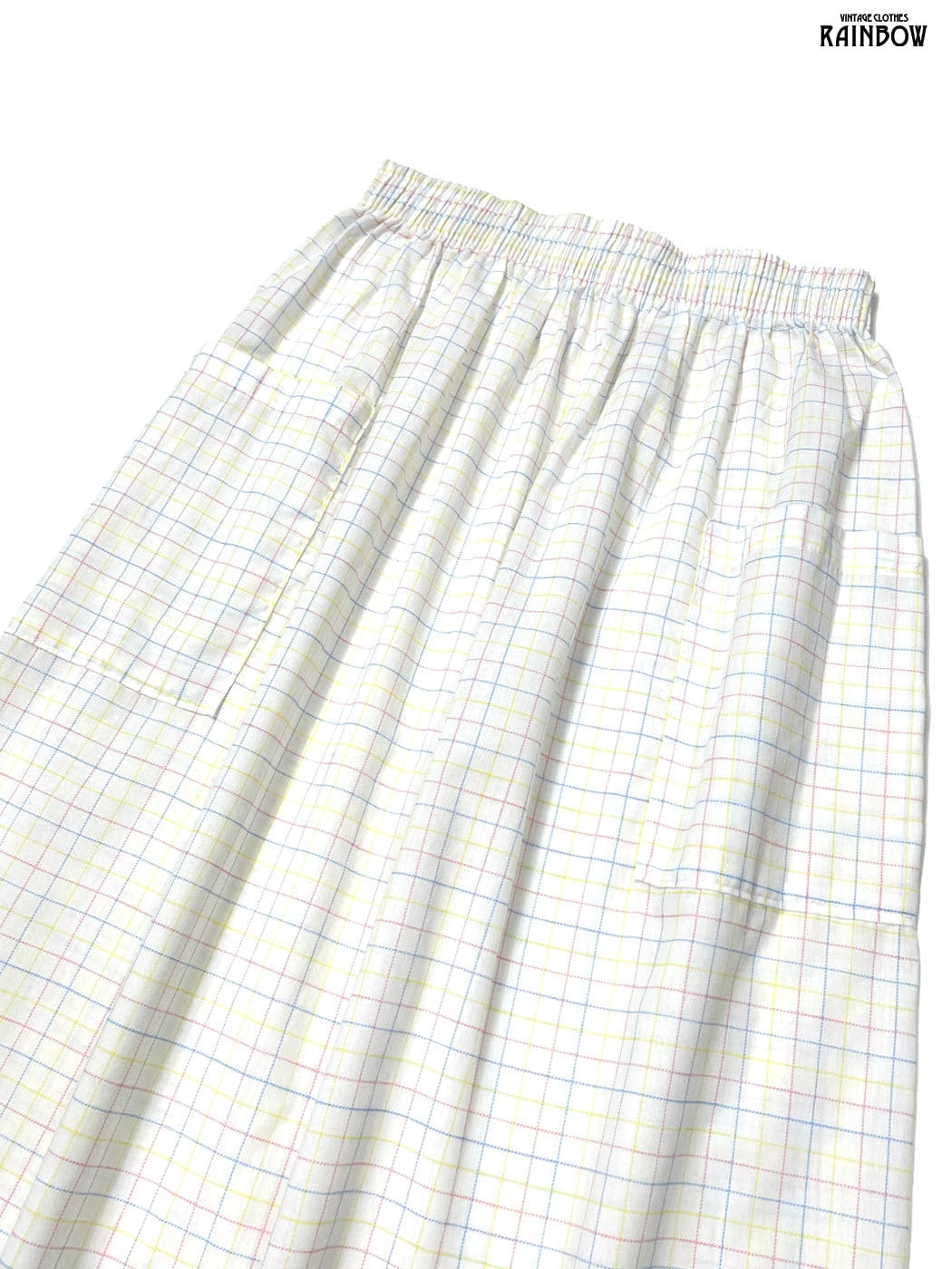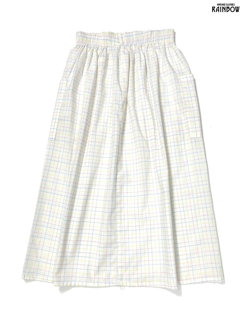 #スカート #膝丈 #白 #カラフル #チェック柄 #イングランド製 #ガーリー #コットン #柄ライトスカート