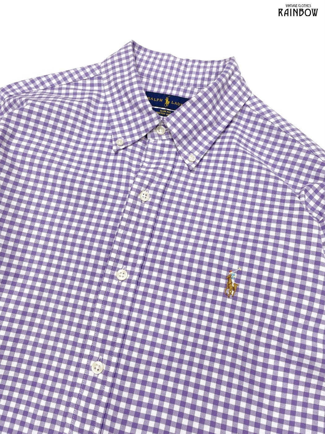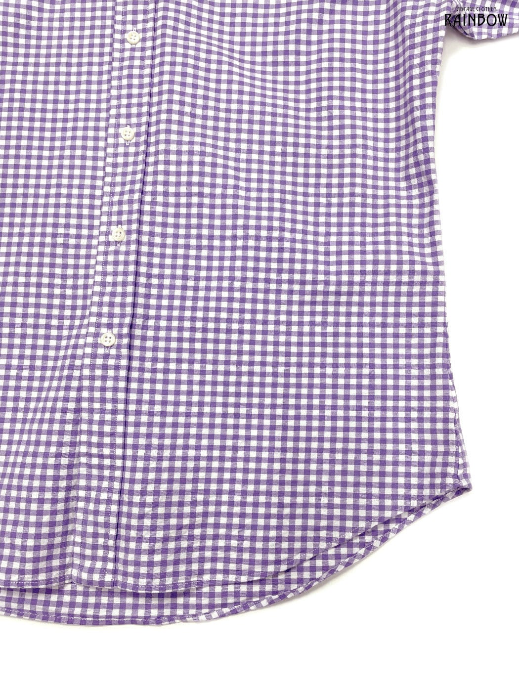 古着 RALPH LAUREN ラルフローレン 刺繍 ギンガムチェック柄 ワンポイント ブランドロゴ コットン 長袖 シャツ ラベンダー 紫 (ttu2602026)