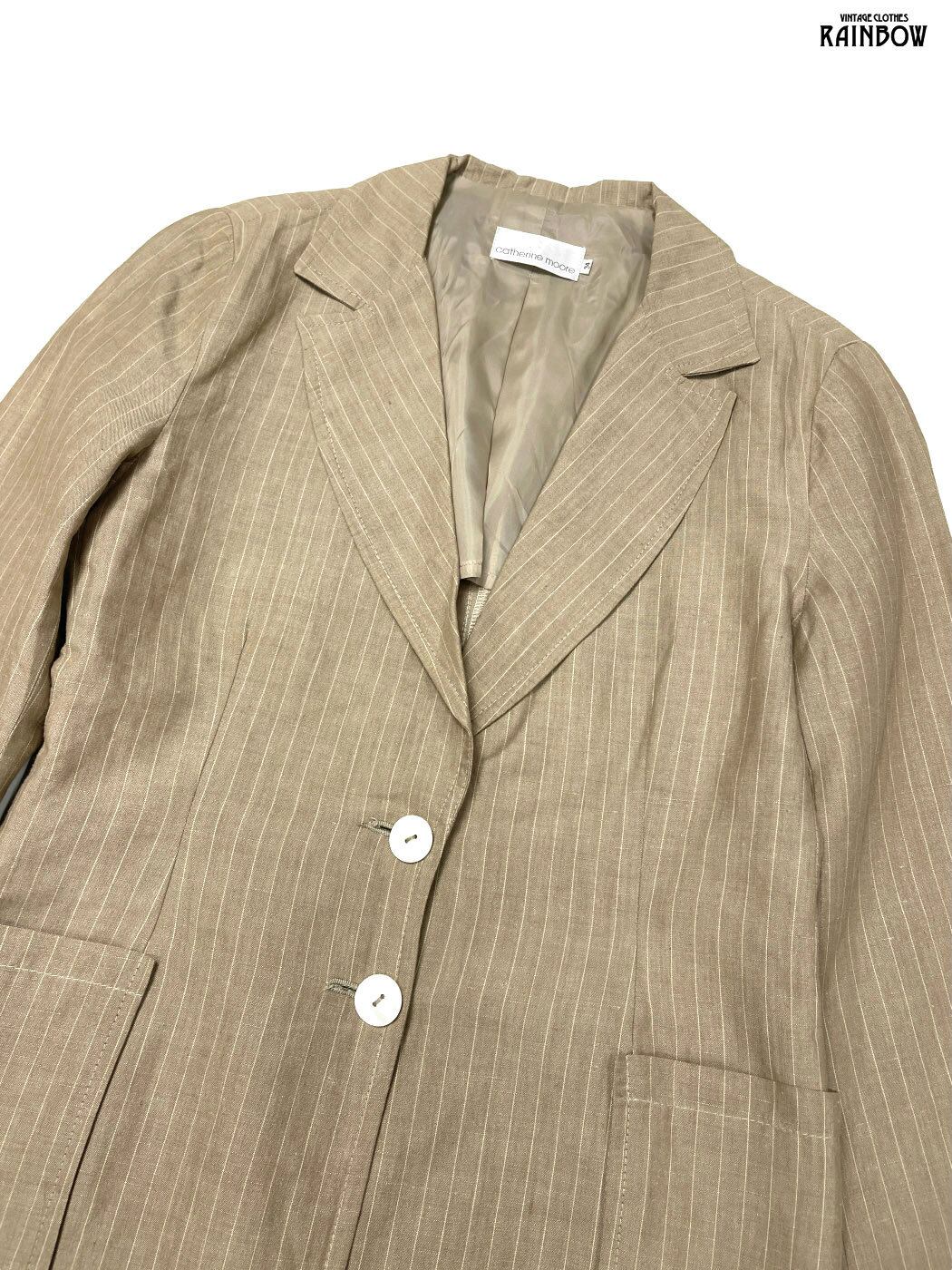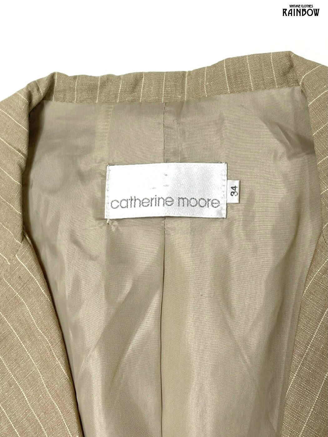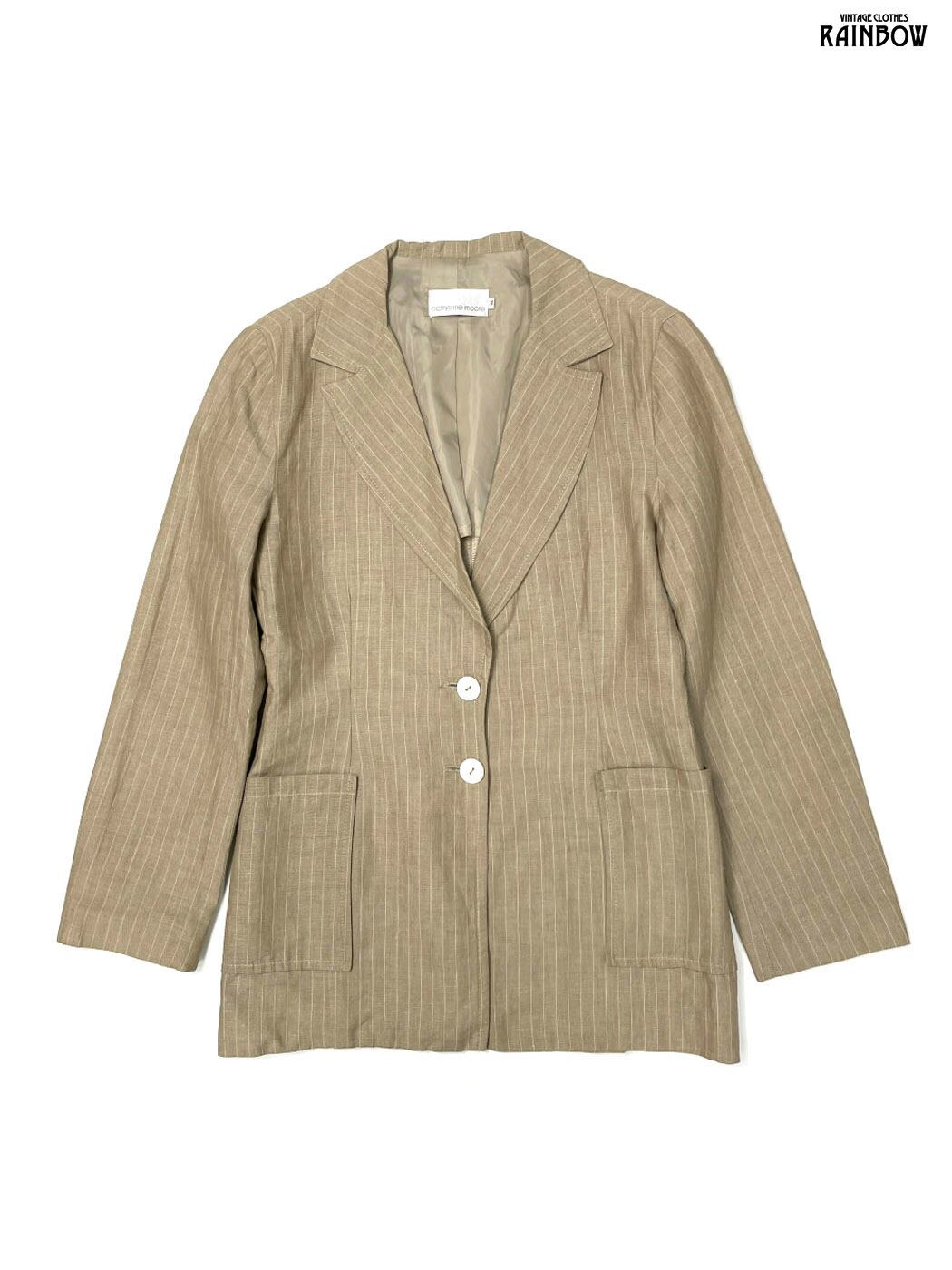古着 Catherine Moore キャサリンムーア ストライプ柄 コットン 長袖 アウター テーラード ライトジャケット 茶 ベージュ (ttu2603001)