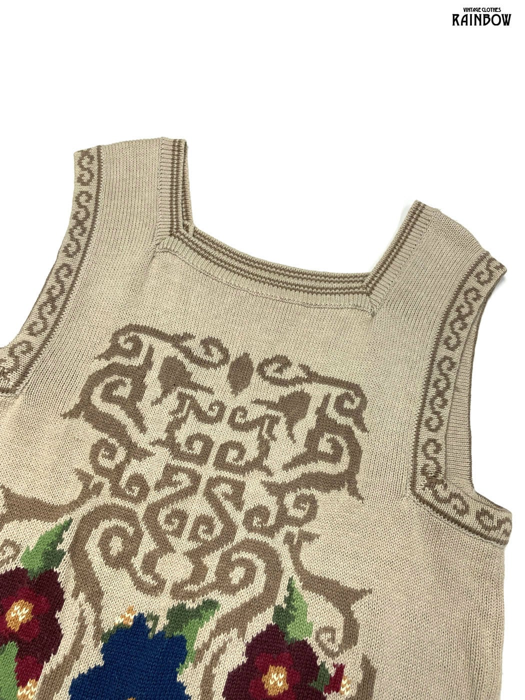 #トップス #ベスト #ノースリーブ #茶 #ベージュ #花柄 #総柄 #ニット地 #ベスト