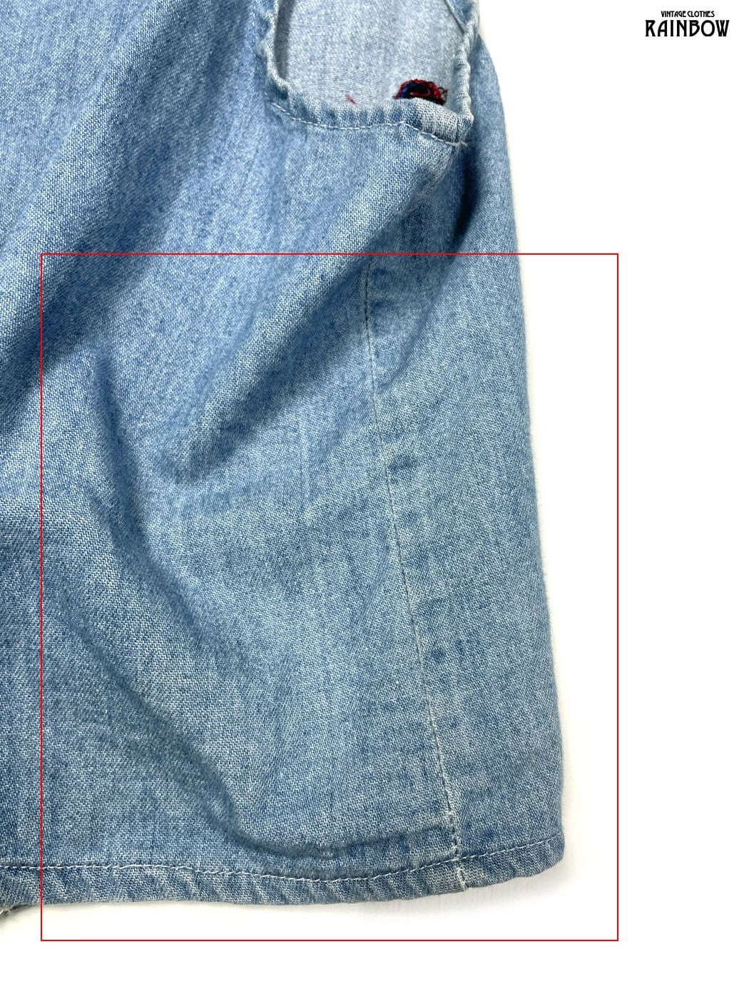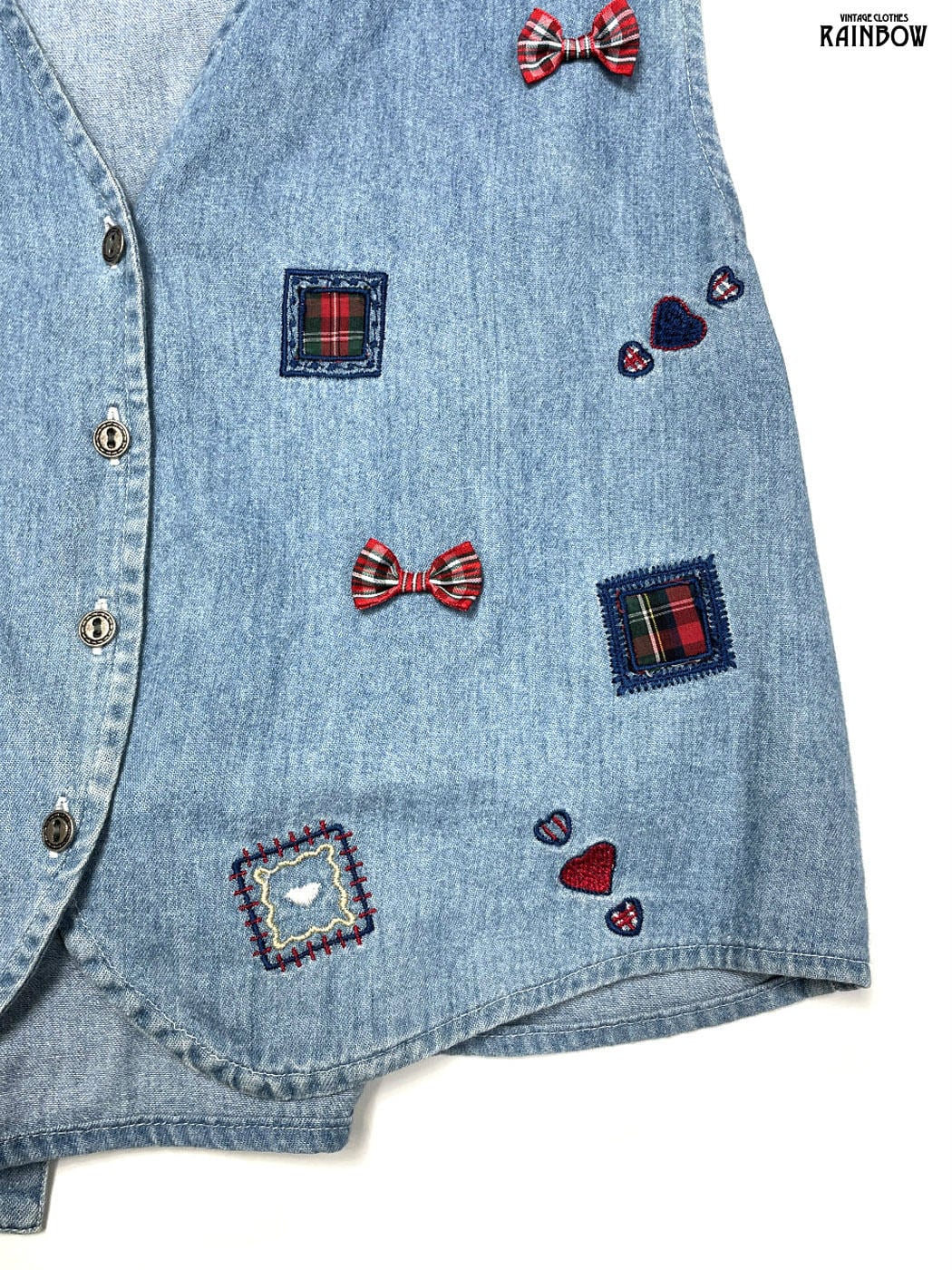 古着 Capacity 刺繍 リボン 総柄 デニム ノースリーブ ベスト 青 (ttu2603016)