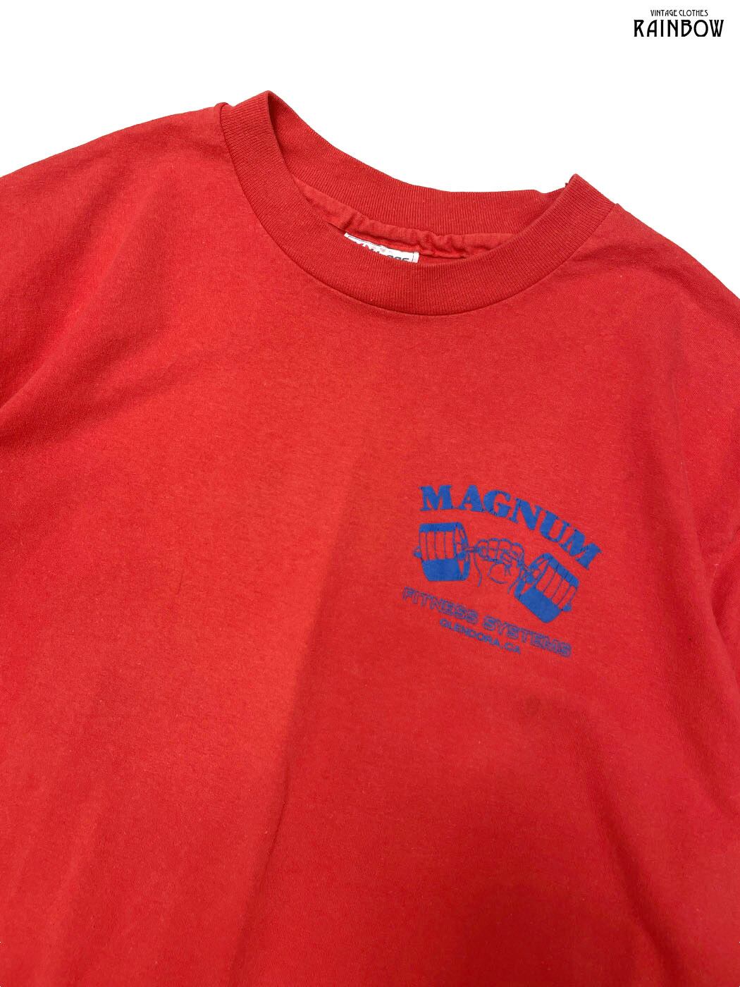 古着 Hanes ヘインズ Magnum Fitness Systems ロゴ コットン 半袖 Tシャツ 赤 (ttu2604061)
